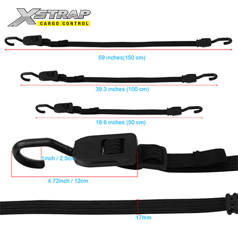 O comprimento da corda elástica ou de amarração é tão importante quanto a capacidade de peso. Você precisará escolher um comprimento que possa alcançar confortavelmente os pontos de ancoragem e fornecer folga ou alongamento suficiente para prender a carga adequadamente.