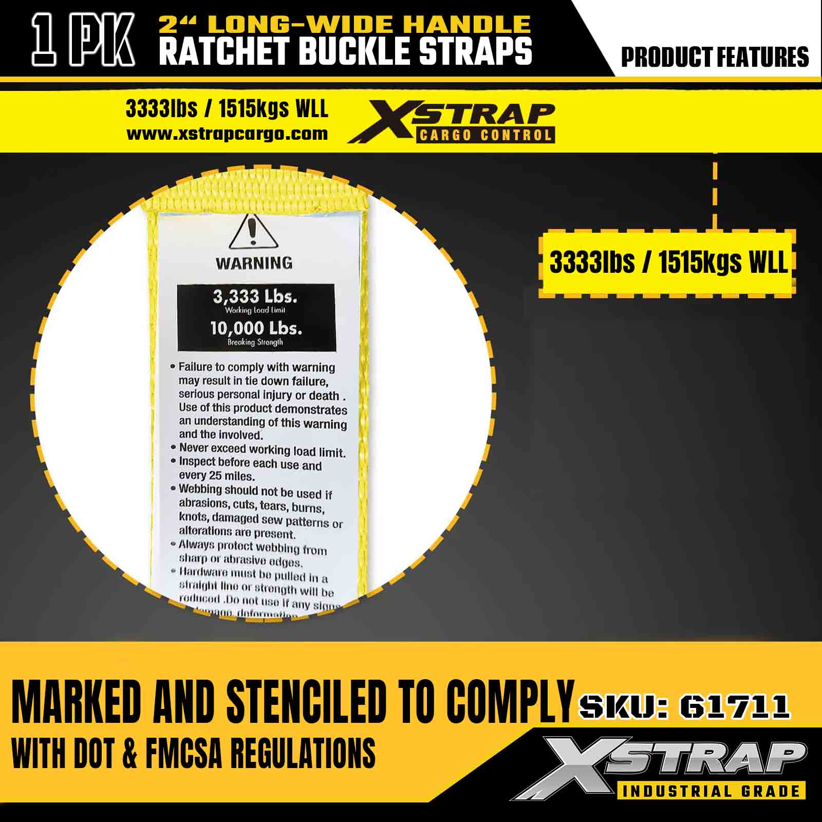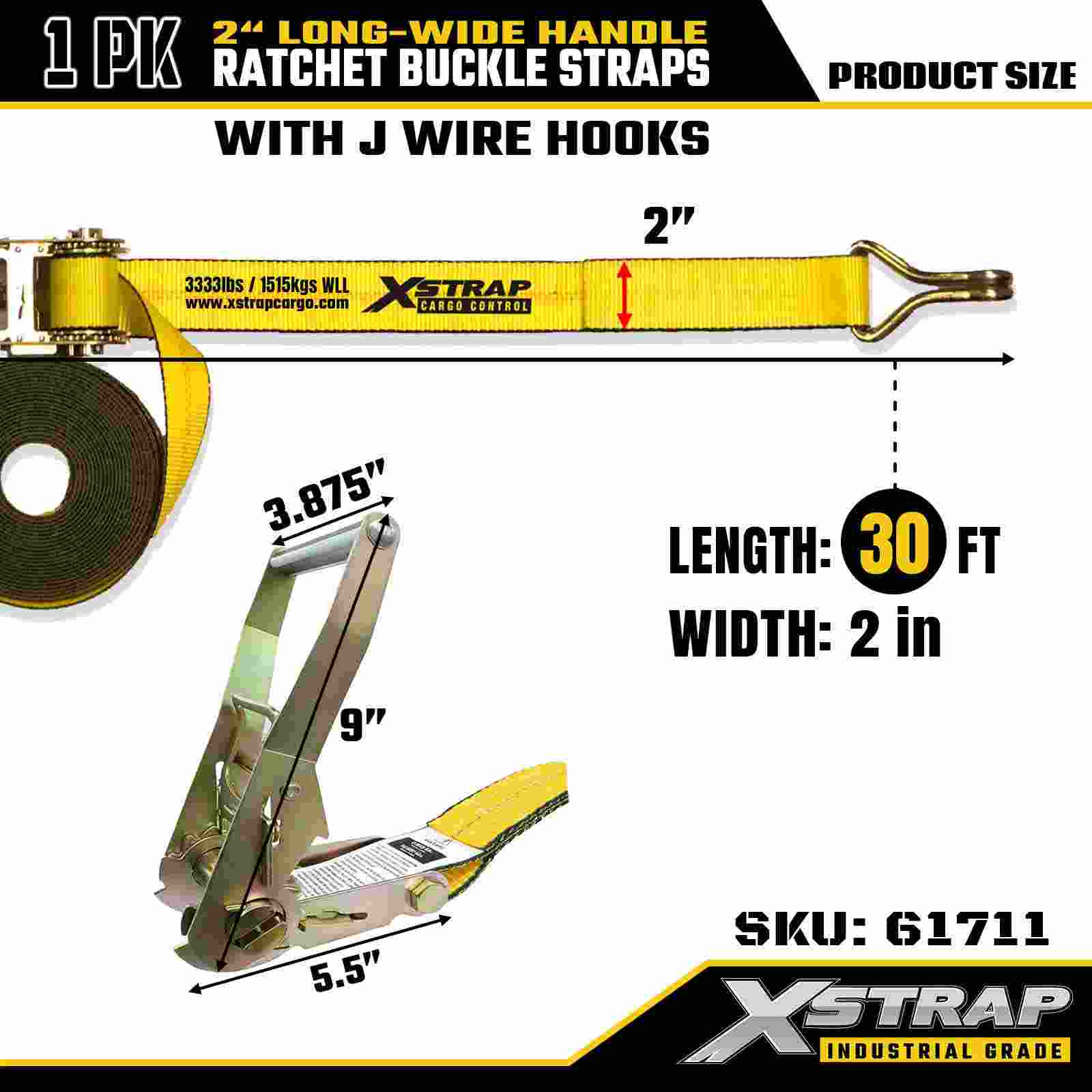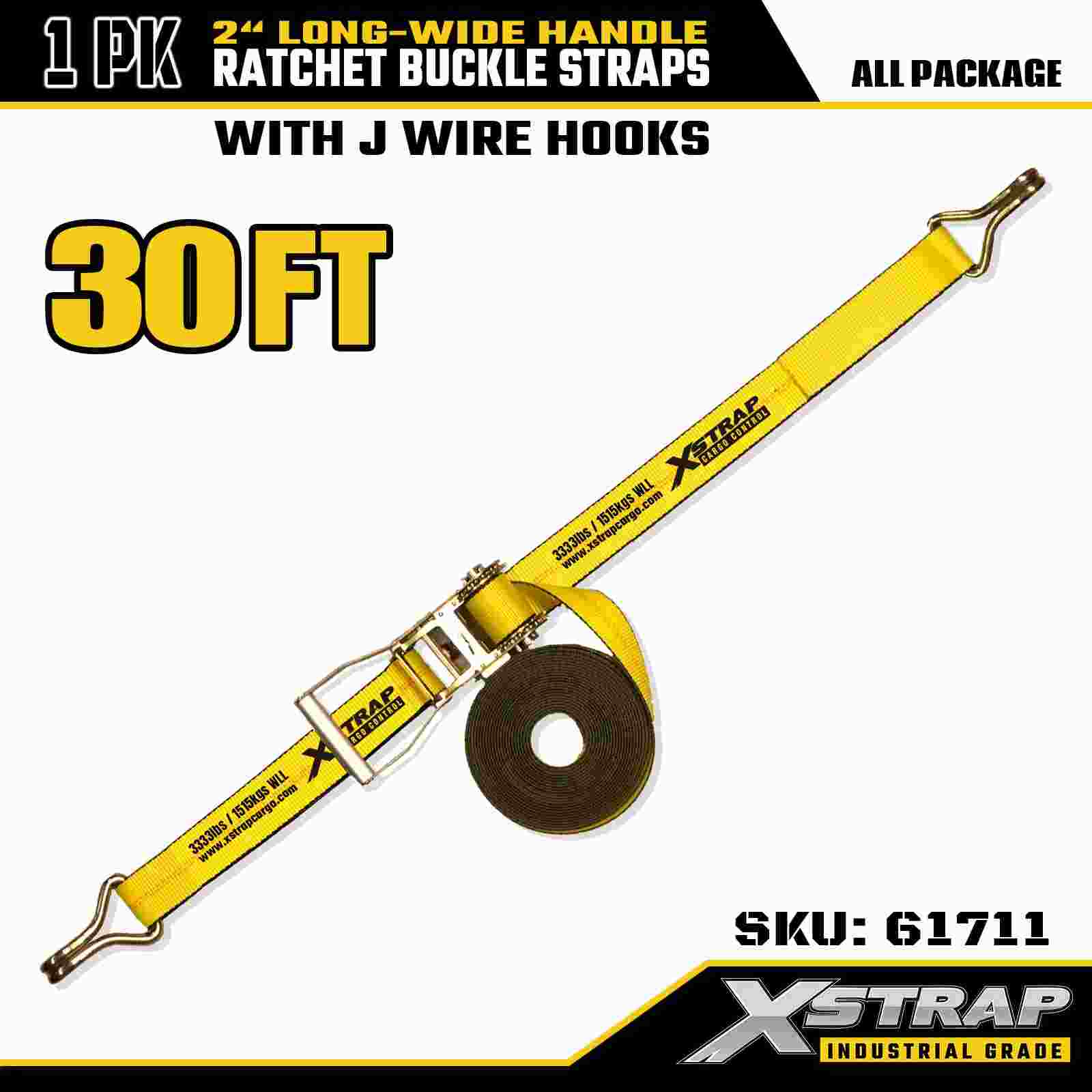 Xstrap 61711Premium Ratchet Tie DownStraps 2" x 30ft (1 pacote) com ganchos de arame, 10.000 lbs de resistência à ruptura, amarração para serviços pesados para transporte exigente