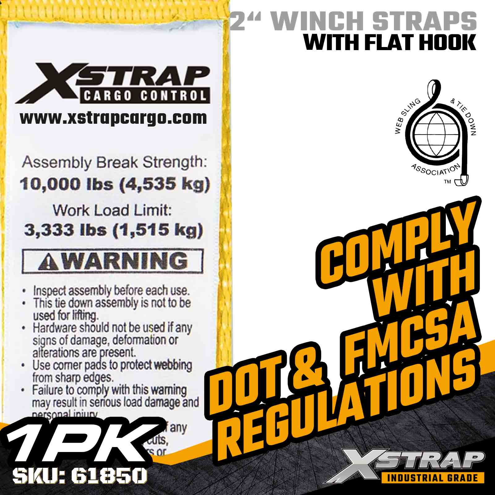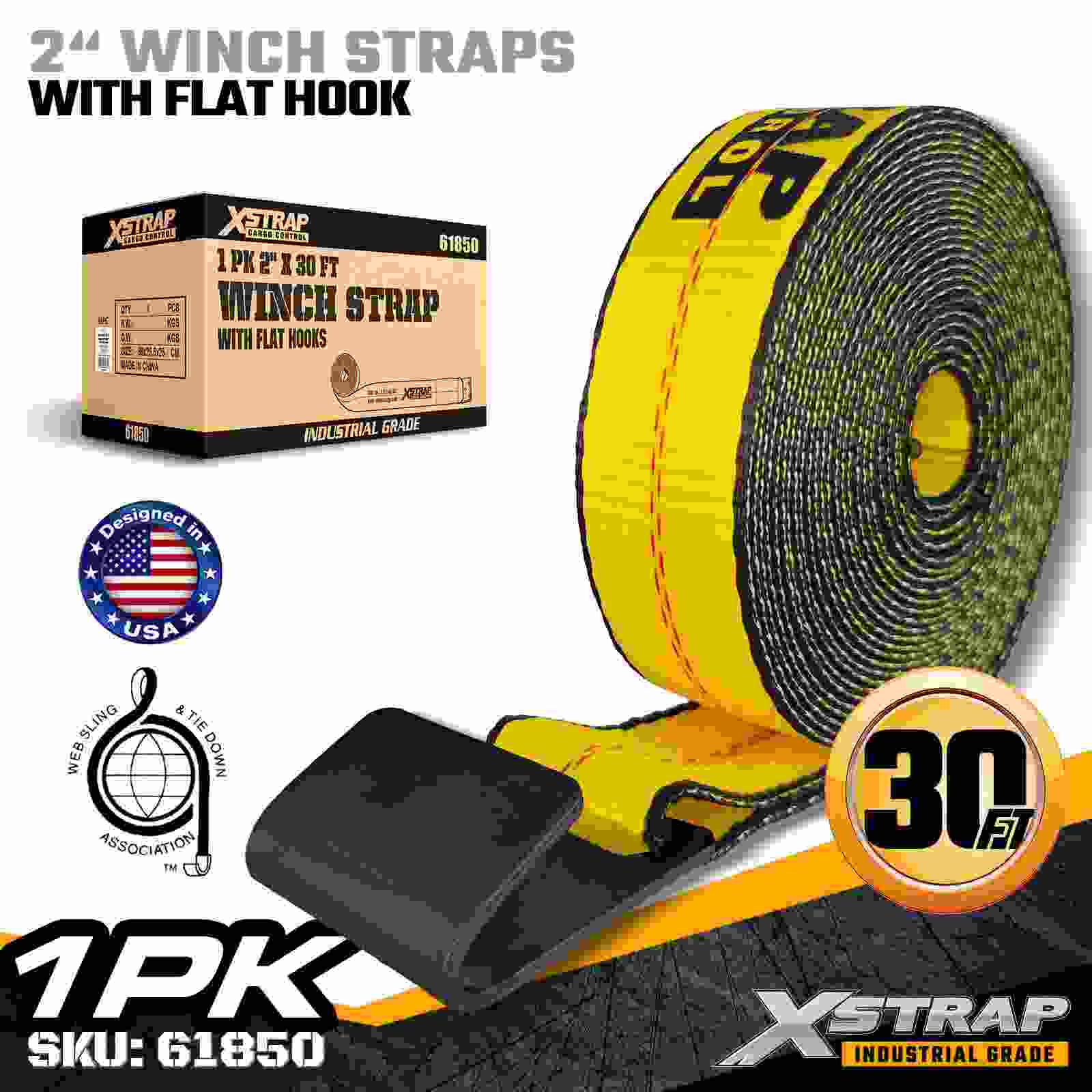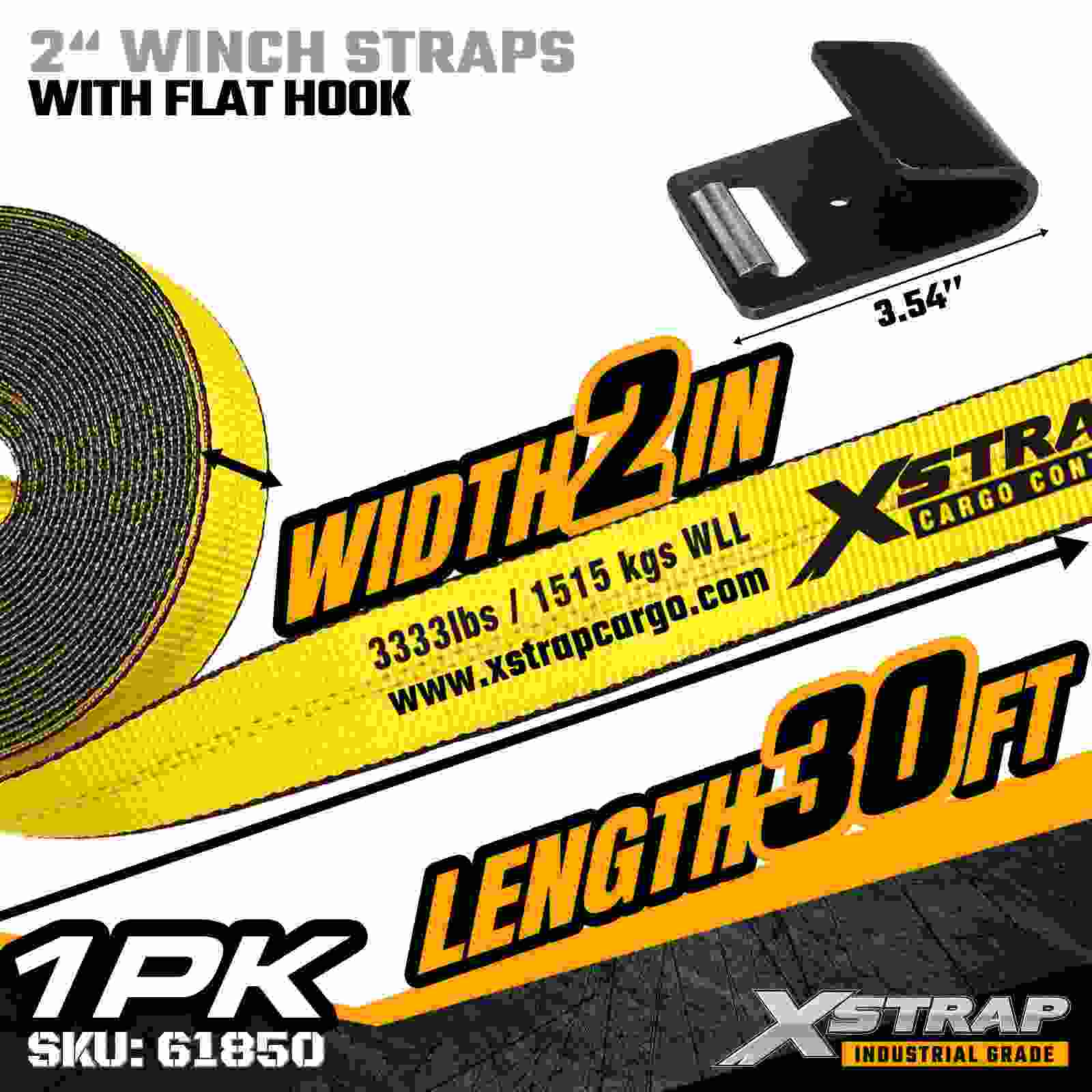 A cinta de guincho padrão Xstrap 61850 de 2" x 30 pés foi construída para fixação confiável de carga plana, apresentando um gancho plano reforçado e cinta de poliéster de alta resistência. Com um limite de carga de trabalho de 3.333 libras e resistência à ruptura de 10.000 libras, ela fornece desempenho confiável para transporte diário de carga, cargas de paletes, madeira serrada, tubos e aplicações de logística geral.