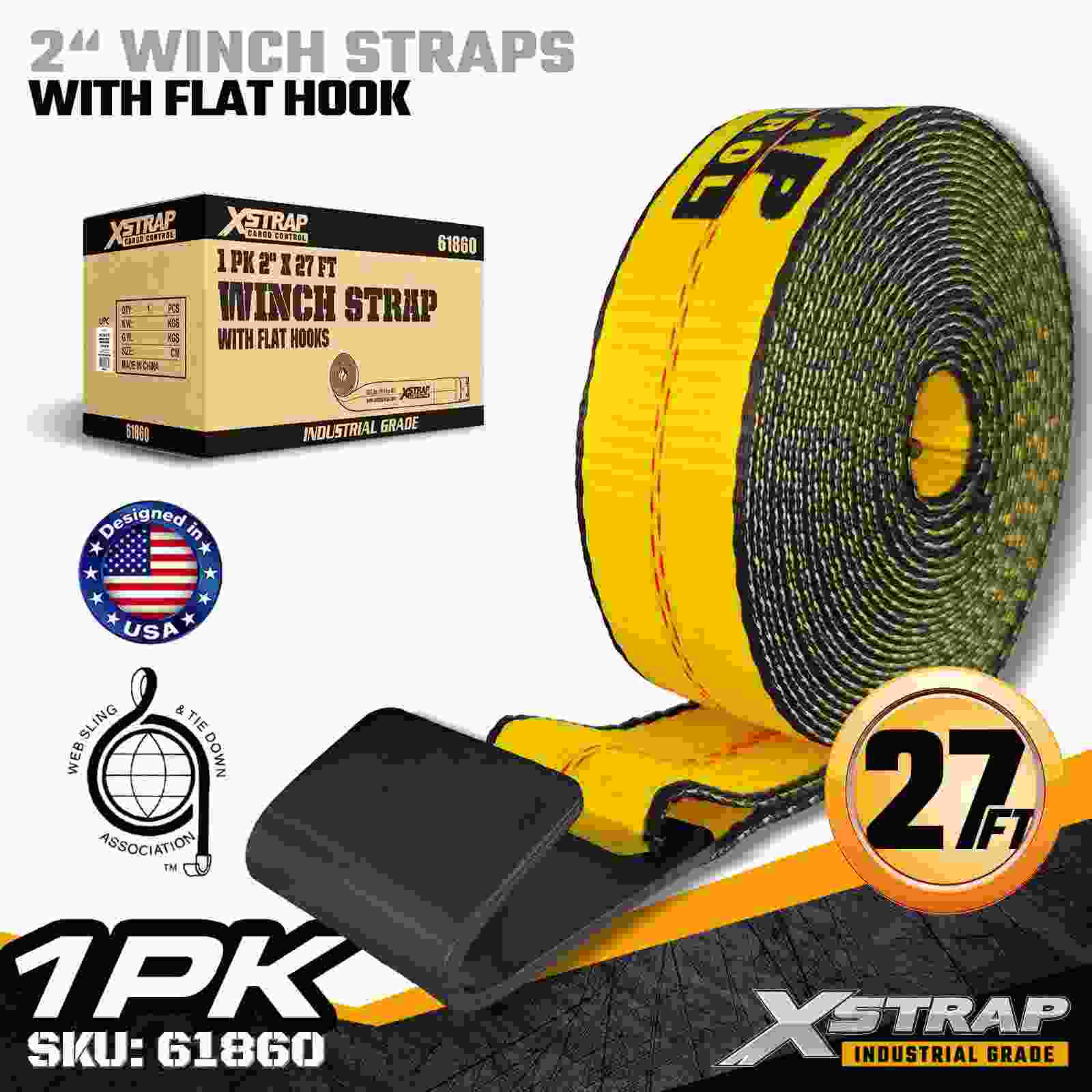 A cinta de guincho padrão Xstrap 61860 de 2" x 27 pés foi construída para fixação confiável de carga plana, apresentando um gancho plano reforçado e cinta de poliéster de alta resistência. Com um limite de carga de trabalho de 3.333 libras e resistência à ruptura de 10.000 libras, ela oferece desempenho confiável para transporte diário de carga, cargas de paletes, madeira serrada e aplicações de logística geral