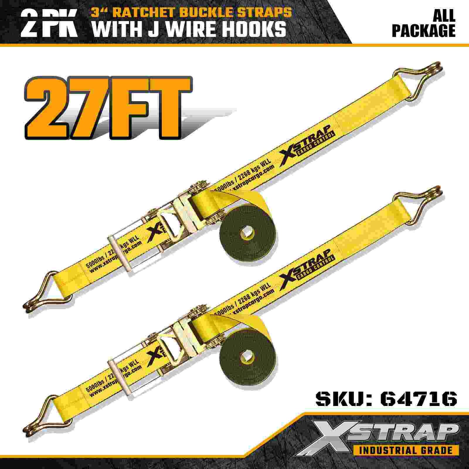 As tiras de fivela de catraca Xstrap 64716 de 3" × 27 pés (pacote com 2) são projetadas para fixação de carga profissional, com ganchos de arame de alta resistência e um mecanismo de catraca durável. Com um limite de carga de trabalho de 5.000 libras e resistência à ruptura de 15.000 libras, essas tiras oferecem desempenho confiável para mesas planas, transporte de equipamentos e tarefas de transporte industrial.