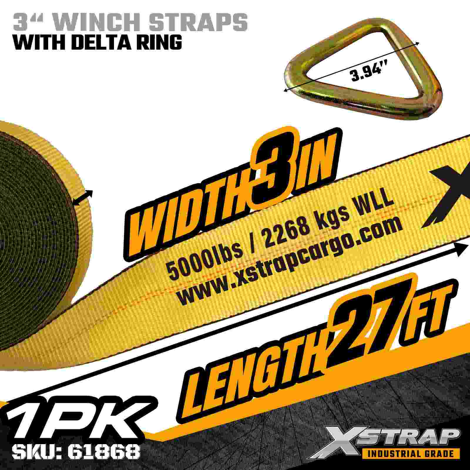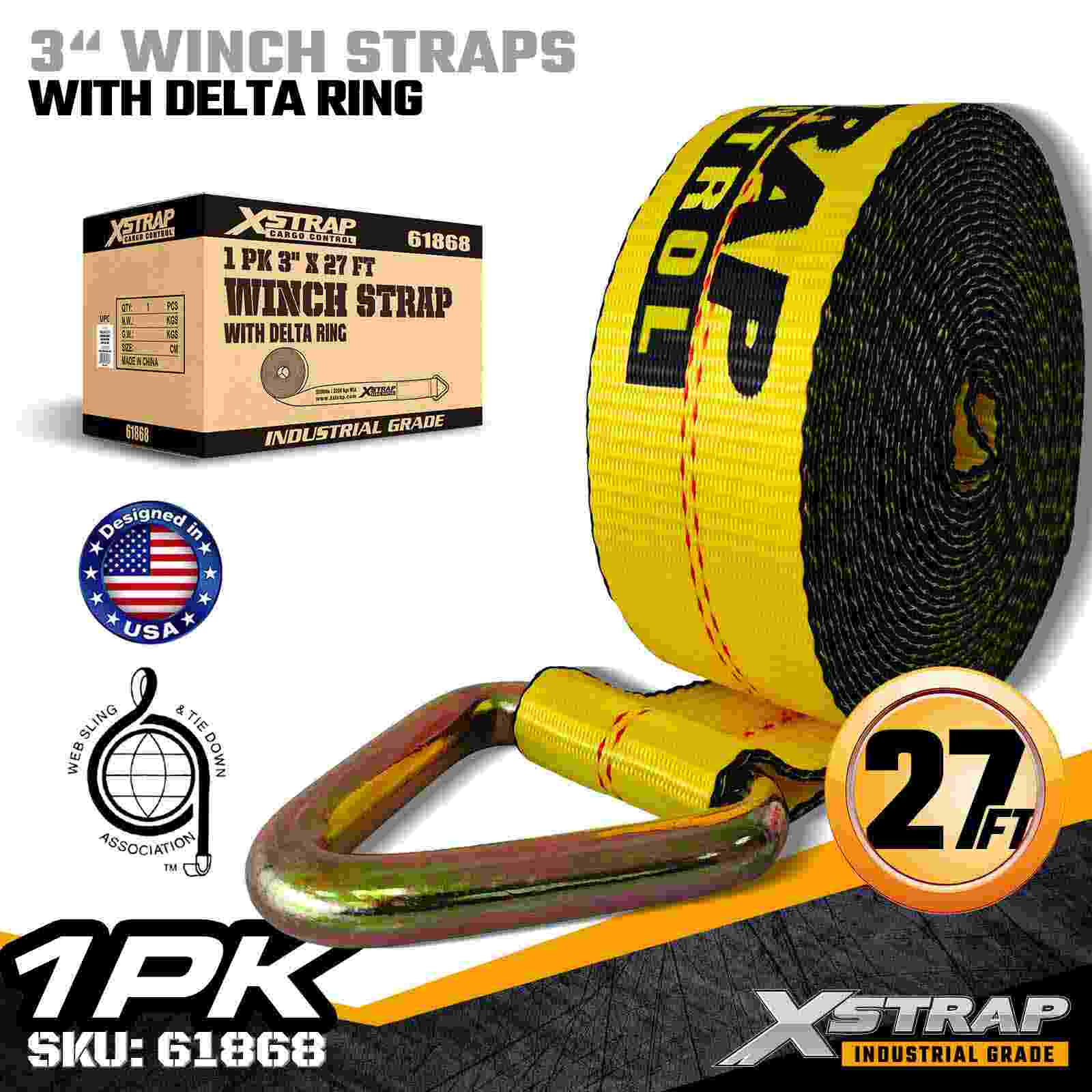 A cinta de guincho padrão Xstrap 61868 de 3" x 27 pés é uma solução de fixação de carga pesada projetada para reboques planos e transporte de alta capacidade. Apresentando um anel Delta reforçado e uma cinta de poliéster extra larga de 3 polegadas, esta cinta de guincho de 3 polegadas oferece um limite de carga de trabalho de 5.000 libras e resistência à ruptura de 15.000 libras. É ideal para proteger cargas de grandes dimensões, como madeira serrada, aço, máquinas e frete industrial durante exigindo operações de transporte.