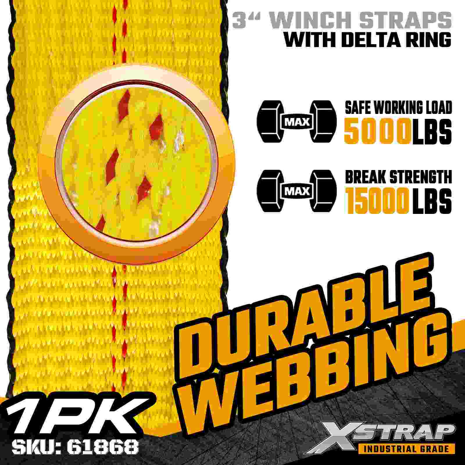 - Correia extra larga de 3" para estabilidade de carga superior: A cinta do guincho de 3 polegadas oferece maior contato com a superfície, reduzindo os pontos de pressão e melhorando a estabilidade ao proteger cargas pesadas ou delicadas.