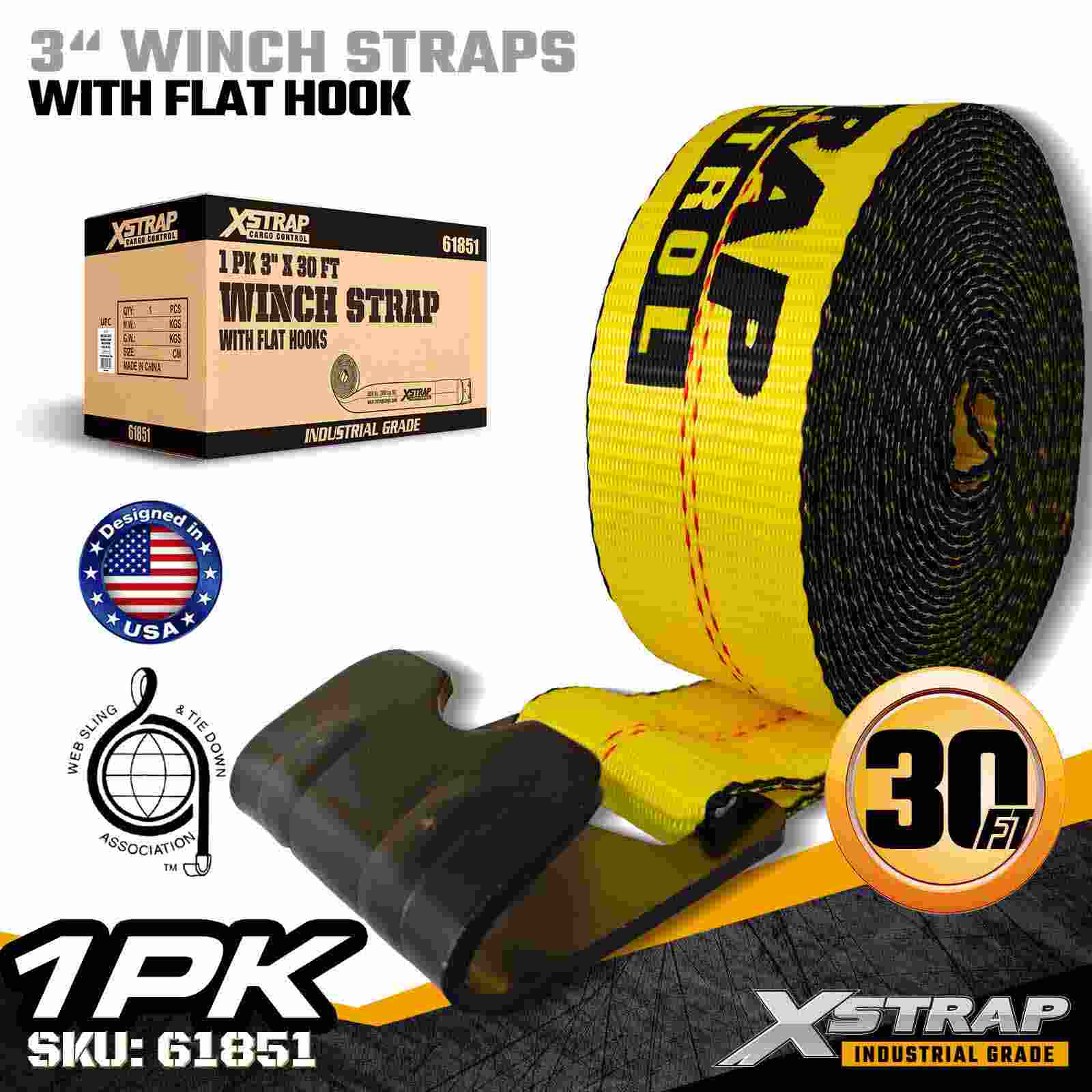 - Comprimento estendido de 30 pés para cobertura de carga superdimensionada: Esta cinta de guincho de 30 pés oferece alcance máximo para proteger cargas largas, altas ou de formato irregular, reduzindo a necessidade de cintas de extensão adicionais.