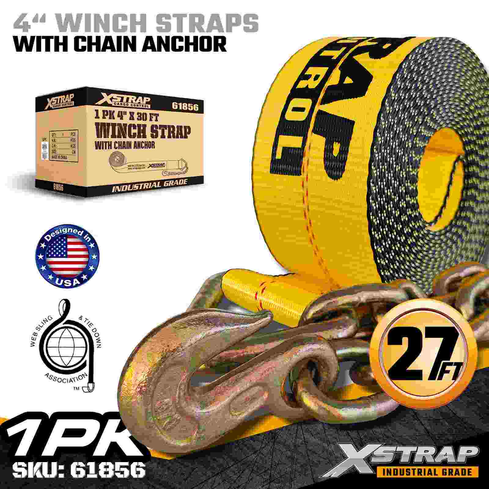 Correia de guincho padrão de 4" × 30 pés com âncora de corrente