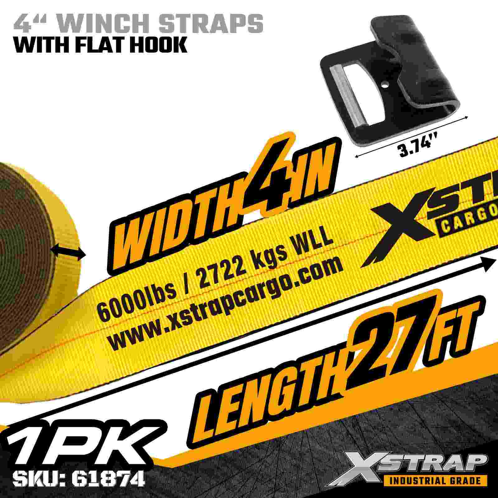 A cinta de guincho padrão Xstrap 61874 de 4" × 27 pés é uma cinta de fixação de carga resistente e de alta capacidade projetada para reboques planos e transporte industrial. Apresentando um gancho plano reforçado e uma cinta de poliéster extra larga de 4 polegadas, esta cinta de guincho de 4 polegadas oferece um limite de carga de trabalho de 6.000 libras e resistência à ruptura de 18.000 libras. A cinta mais larga fornece distribuição de carga superior, tornando-a ideal para proteger cargas pesadas, carga volumosa ou delicada que requer estabilidade máxima.