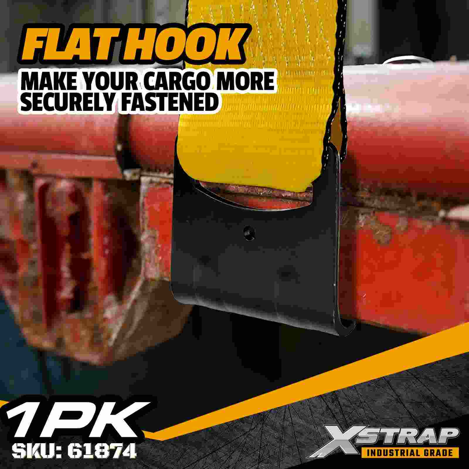 - Gancho plano reforçado para conexão segura do reboque: O gancho plano para serviço pesado fornece um ponto de ancoragem amplo e estável em trilhos de atrito e trilhos de guincho, garantindo engate confiável para cargas industriais pesadas e de alta tensão.