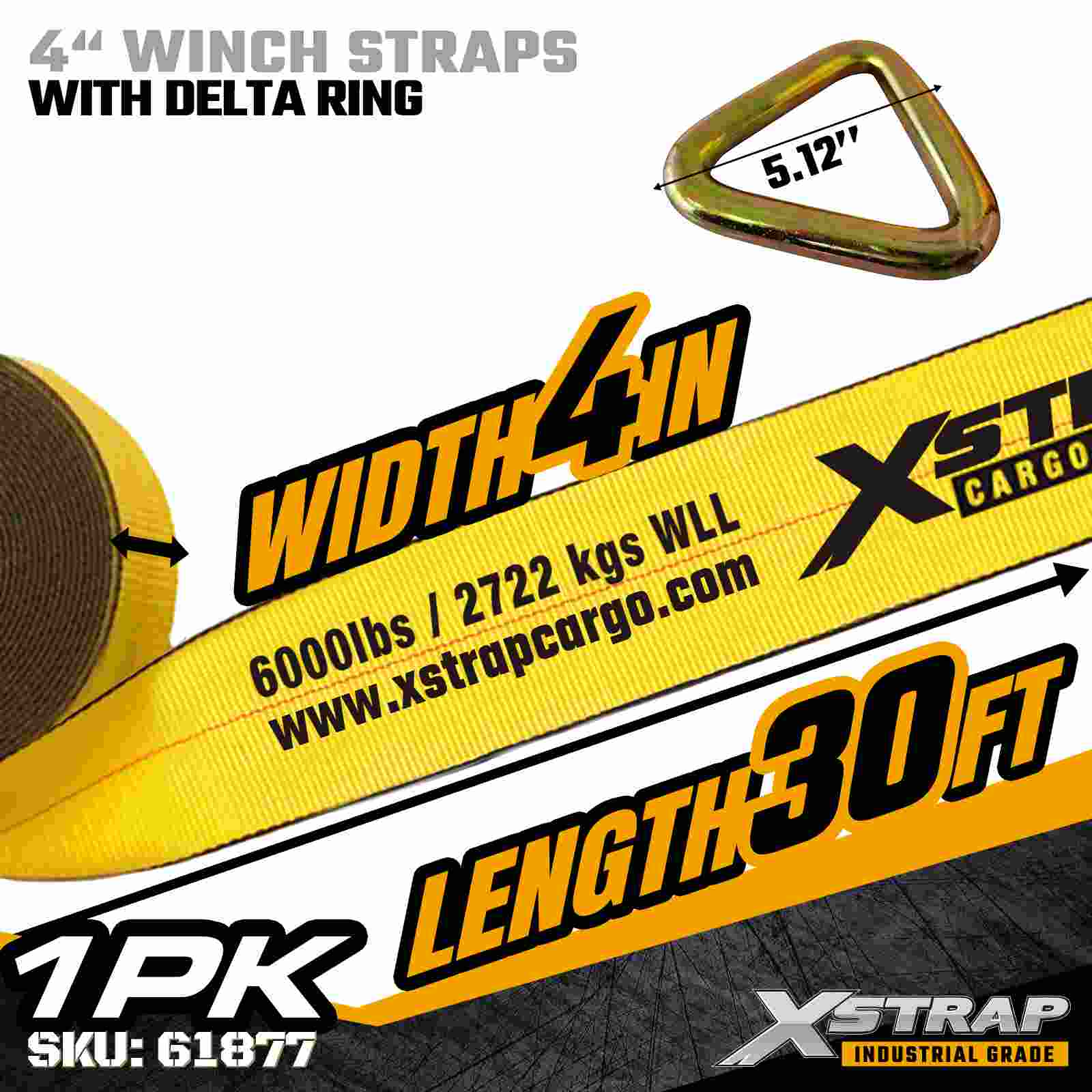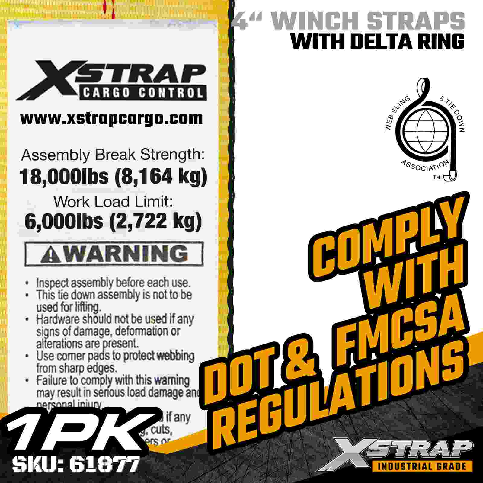 A cinta de guincho padrão Xstrap 61877 de 4" × 30 pés é uma cinta de segurança de carga de alta capacidade e alcance estendido projetada para reboques planos e cargas industriais de grandes dimensões. Apresentando um anel Delta reforçado e uma cinta de poliéster ultralarga de 4 polegadas, esta cinta de guincho de 4 polegadas oferece um limite de carga de trabalho de 6.000 libras e resistência à ruptura de 18.000 libras. O comprimento estendido de 30 pés fornece alcance adicional, tornando-a ideal para fixação cargas largas, altas ou de formato irregular que exigem ancoragem multidirecional e maior estabilidade.