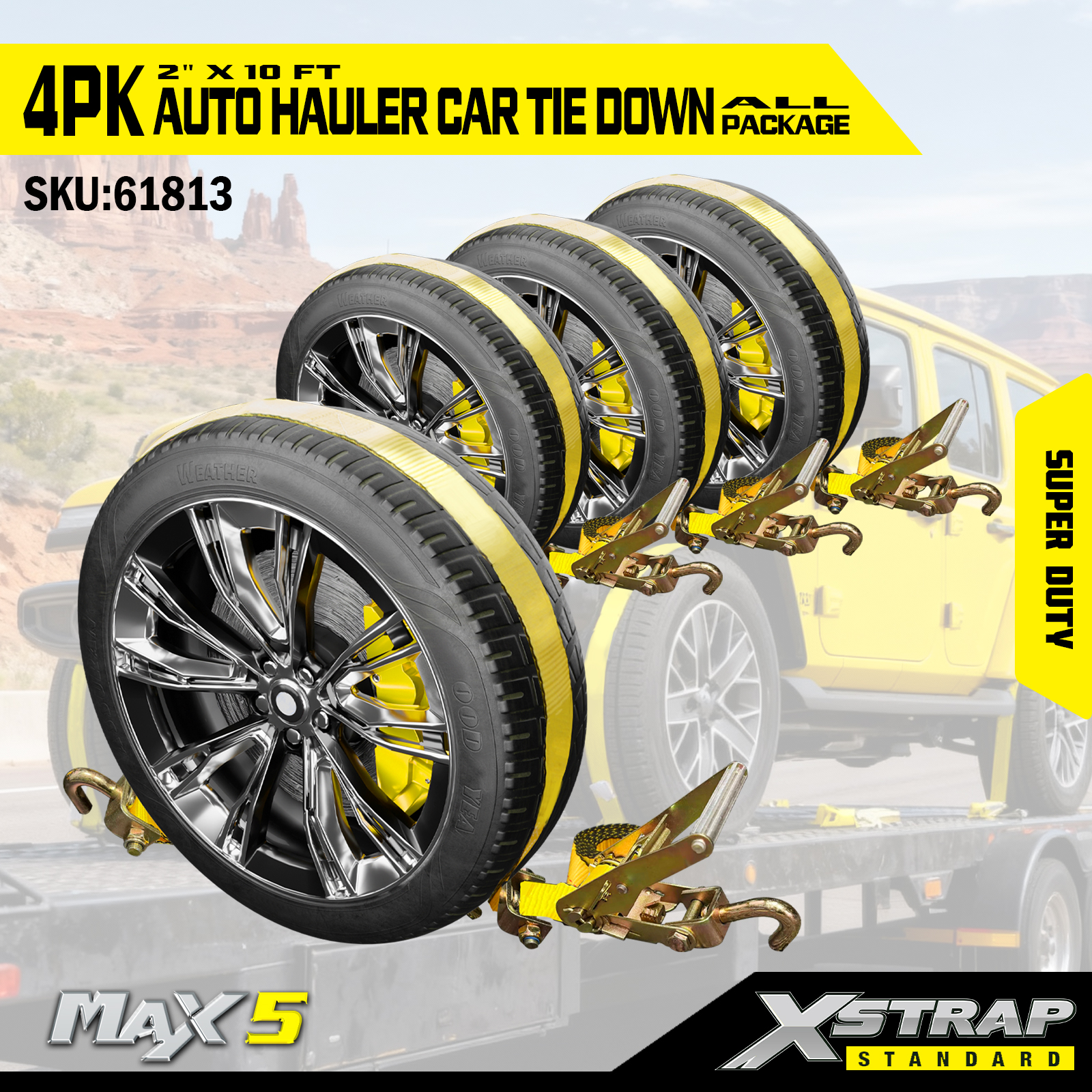 - Cobertura completa de 4 pacotes: O conjunto de 4 peças fornece uma amarração por pneu, proporcionando segurança de carga total para um único veículo durante o transporte.