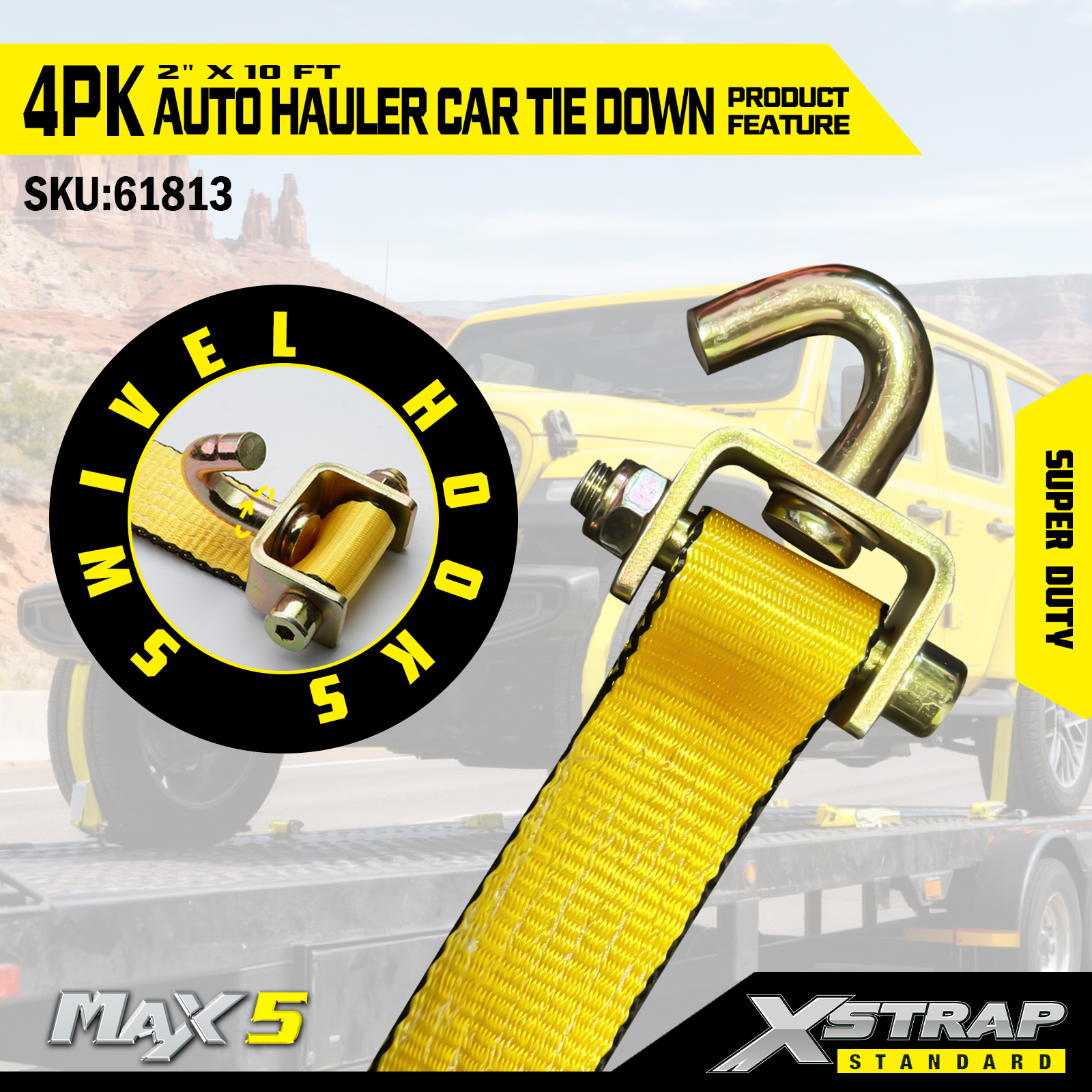 - Capacidade de carga super resistente: avaliado para carga de trabalho segura de 2.200 libras e resistência à ruptura de 6.600 libras, ele suporta veículos pesados e condições de transporte exigentes.