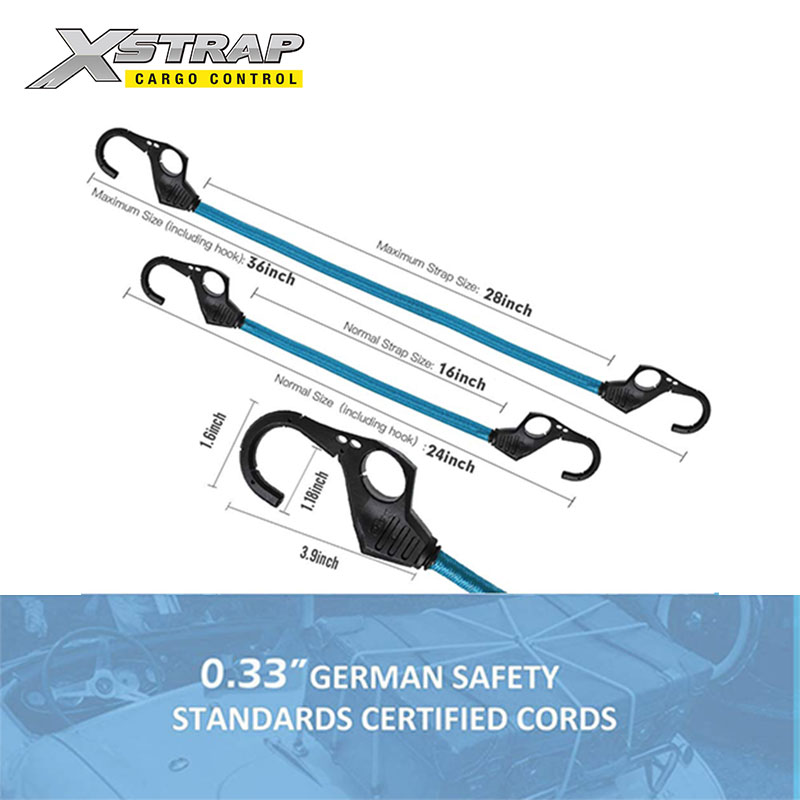 Enquanto isso, os ganchos têm 3 vezes mais resistência do que os ganchos de cordas elásticas comuns. Portanto, não é fácil quebrar. É mais seguro do que outras cordas elásticas.