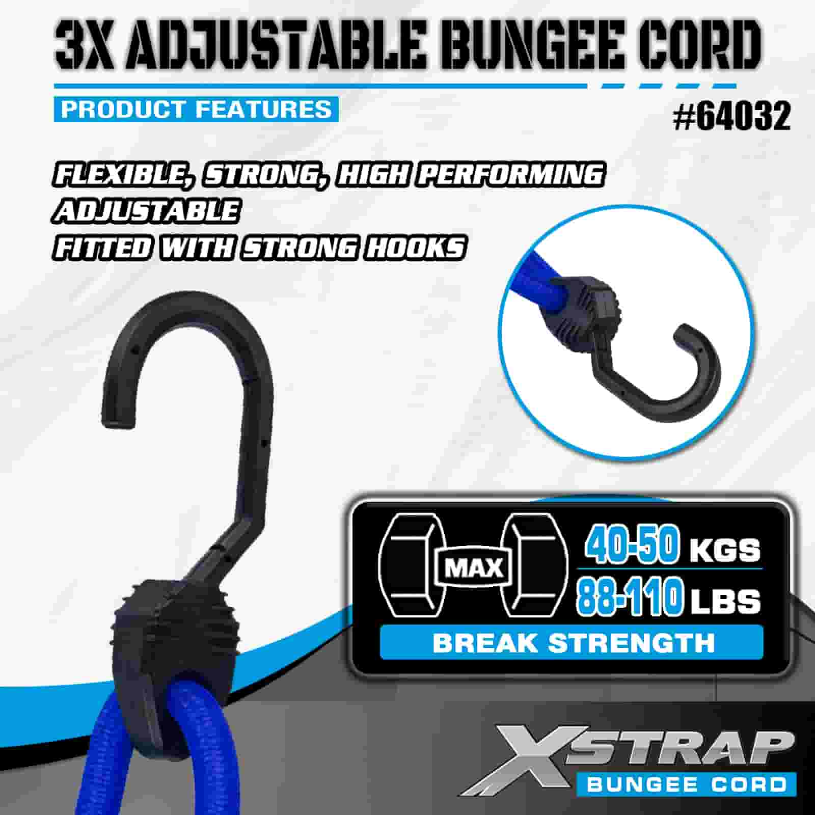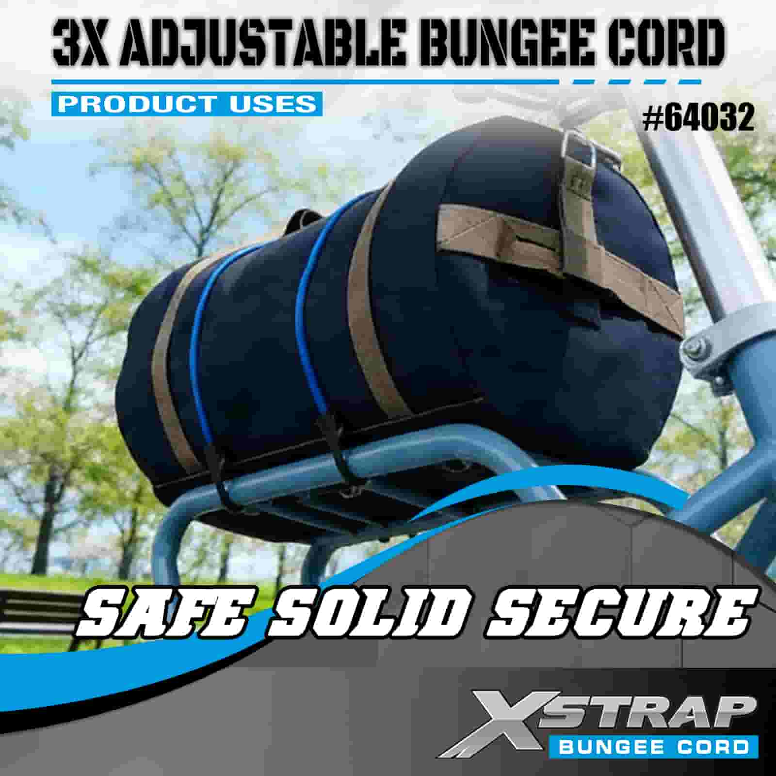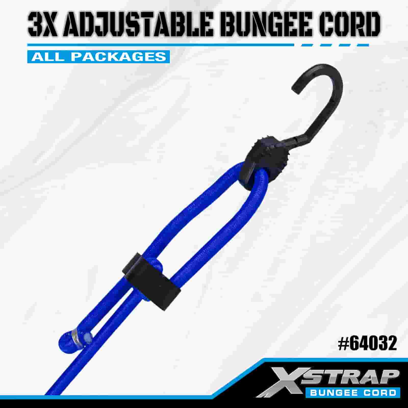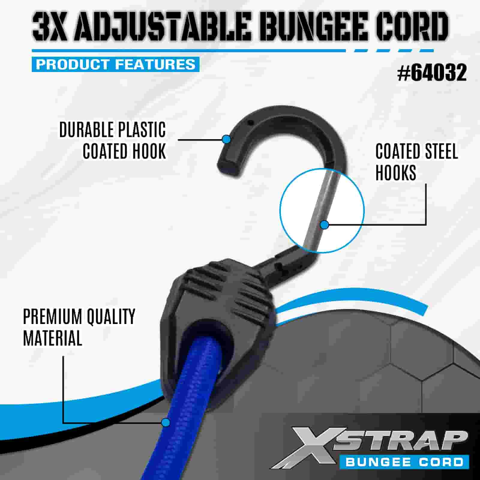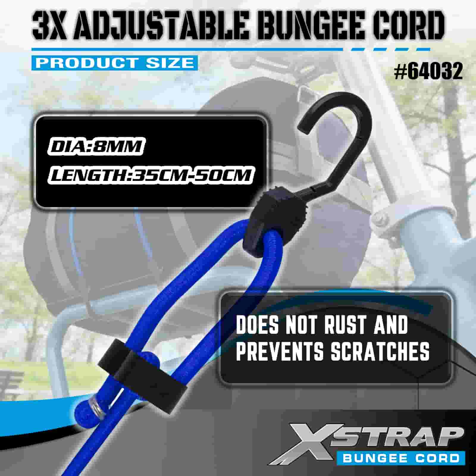 Cordas elásticas ajustáveis Xstrap 3X 8mm x 14”-20”, 132-165 libras resistência à ruptura com ganchos fortes para controle de carga .