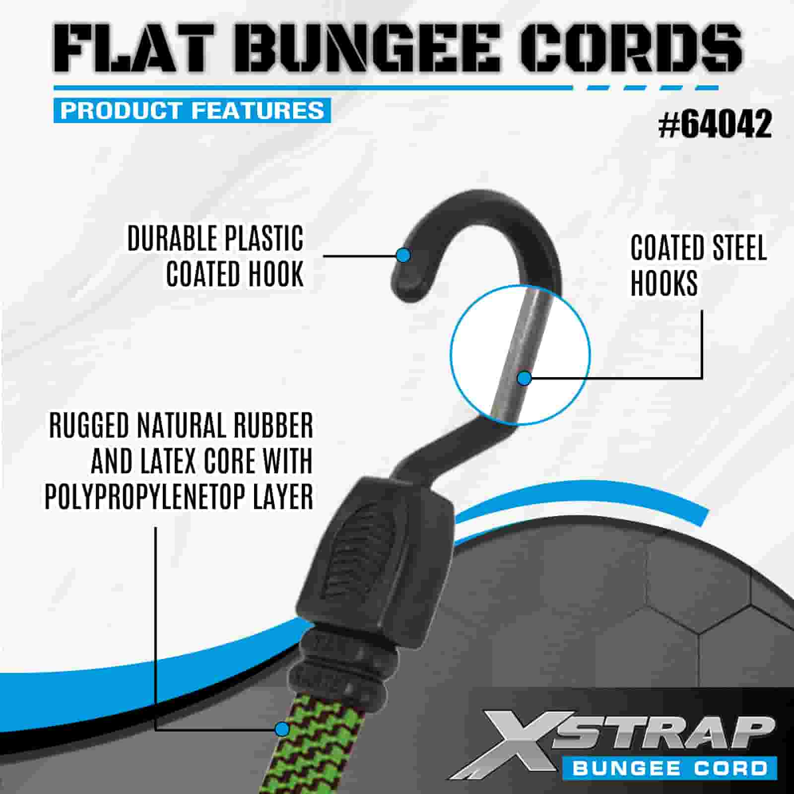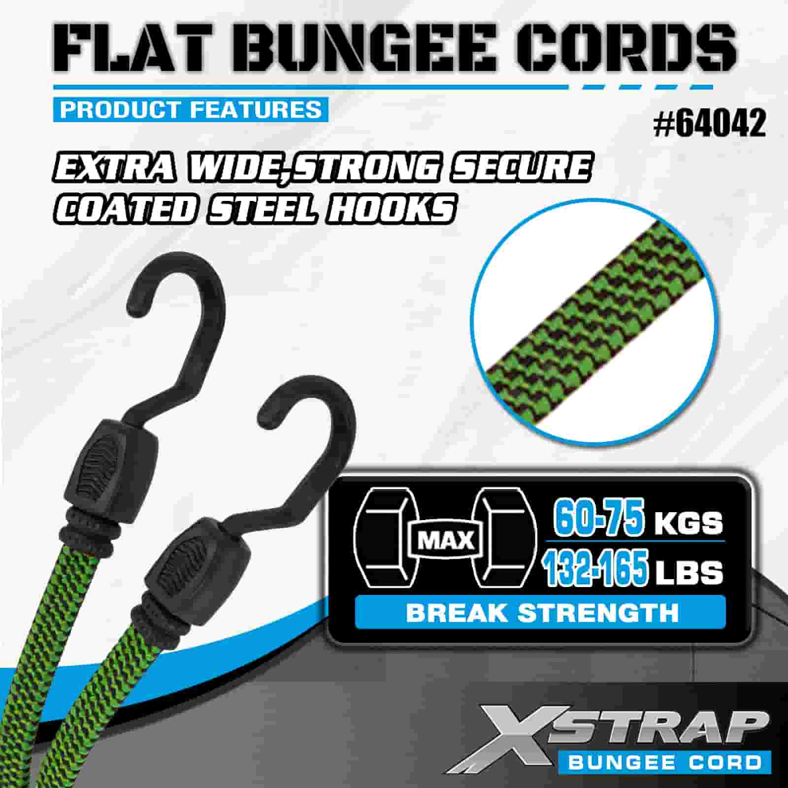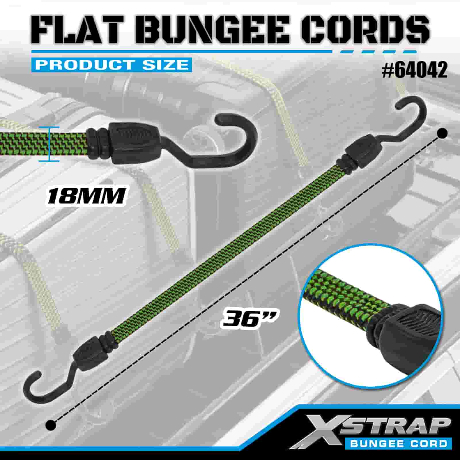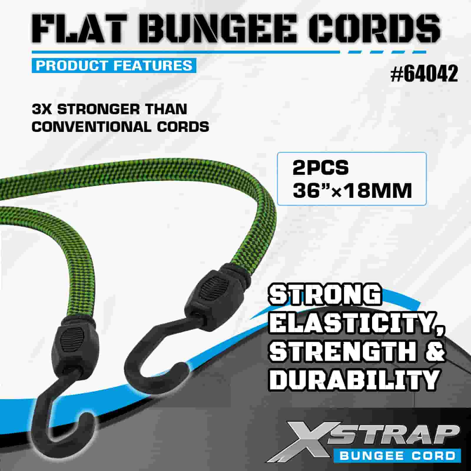 Cordas elásticas planas Xstrap 2PK 18mm x 36”, 132-165 libras resistência à ruptura com ganchos fortes para controle de carga .