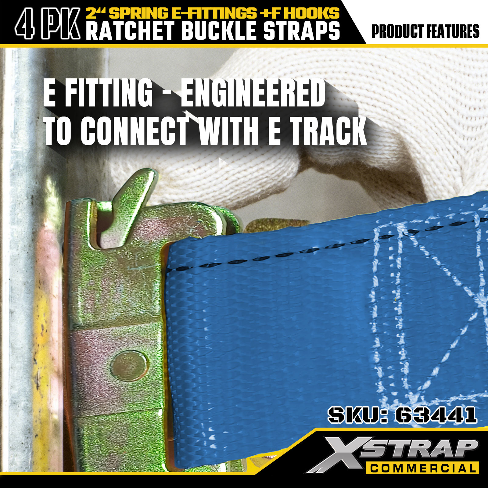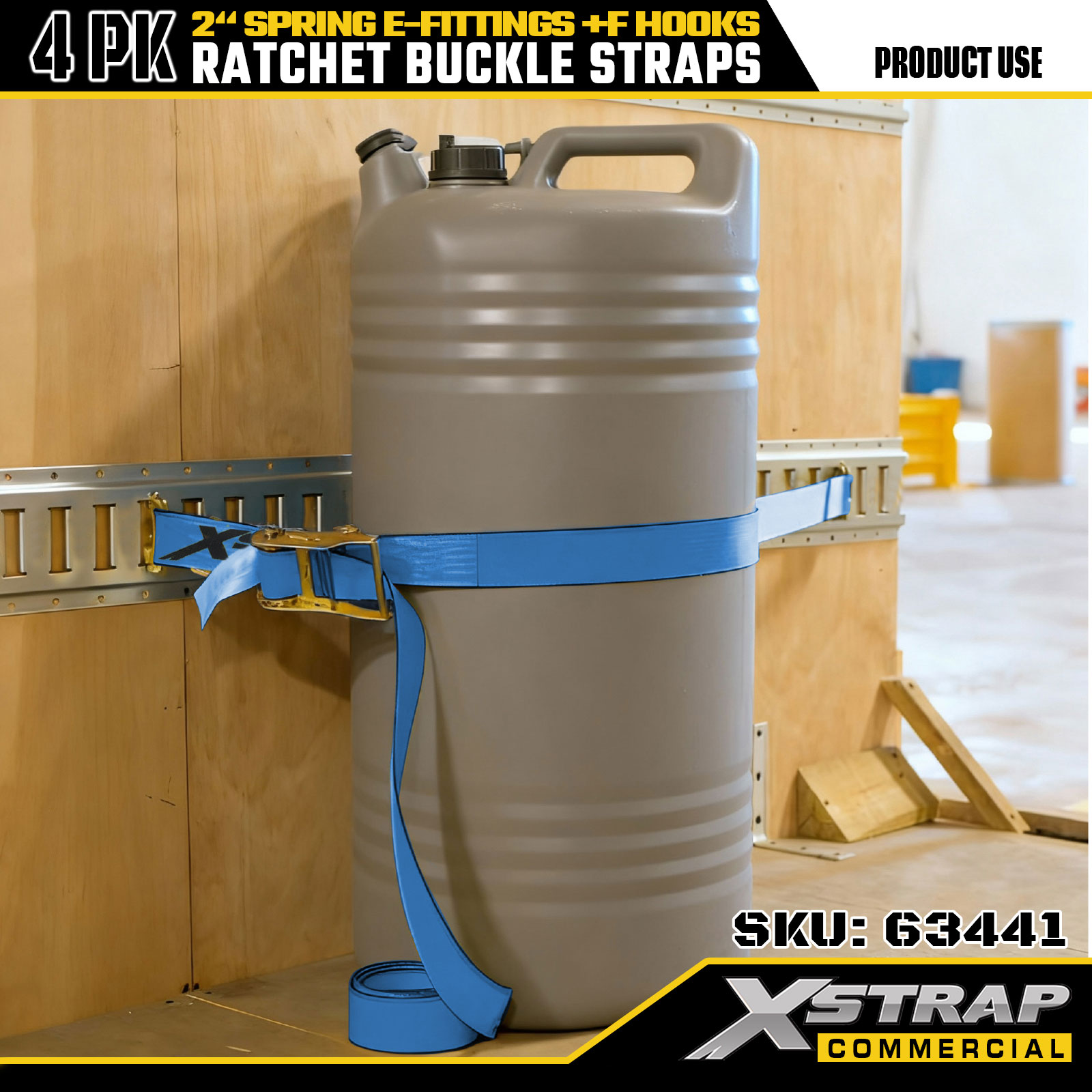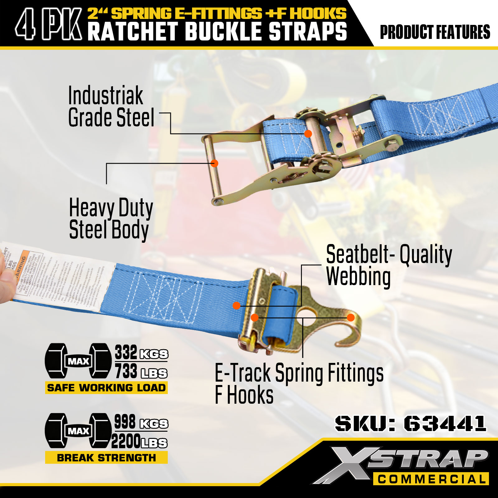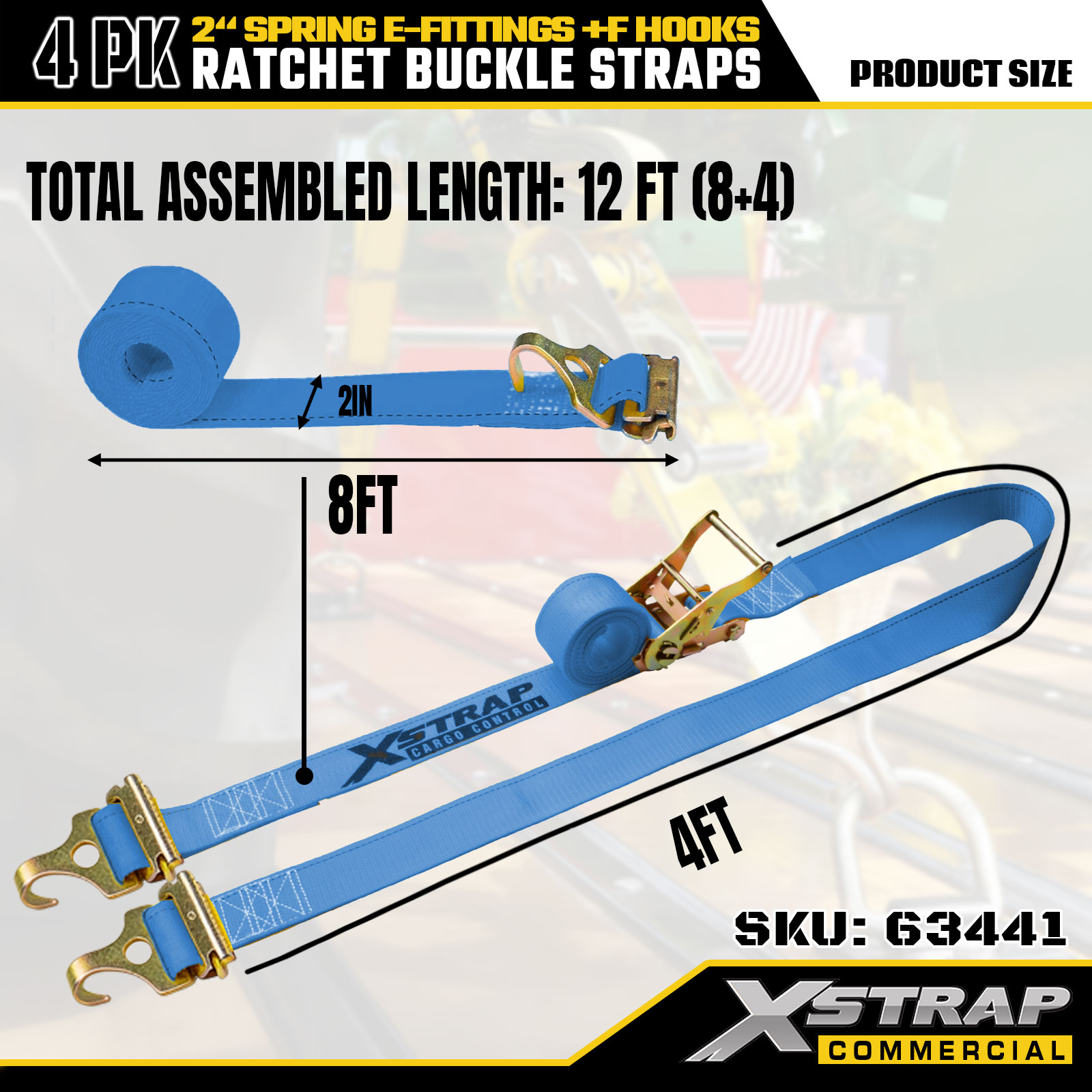 Xstrap 4 Pack Ratchet Tie-Down Straps 2" x 12' Poliéster com acessórios de mola e ganchos F, 733 lbs SWL e 332 lbs de resistência à ruptura para caminhões, movimentação e transporte de carga geral