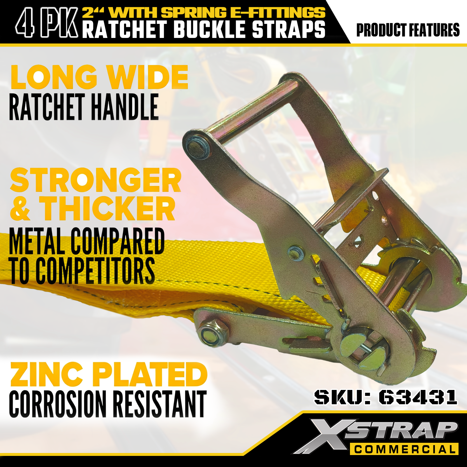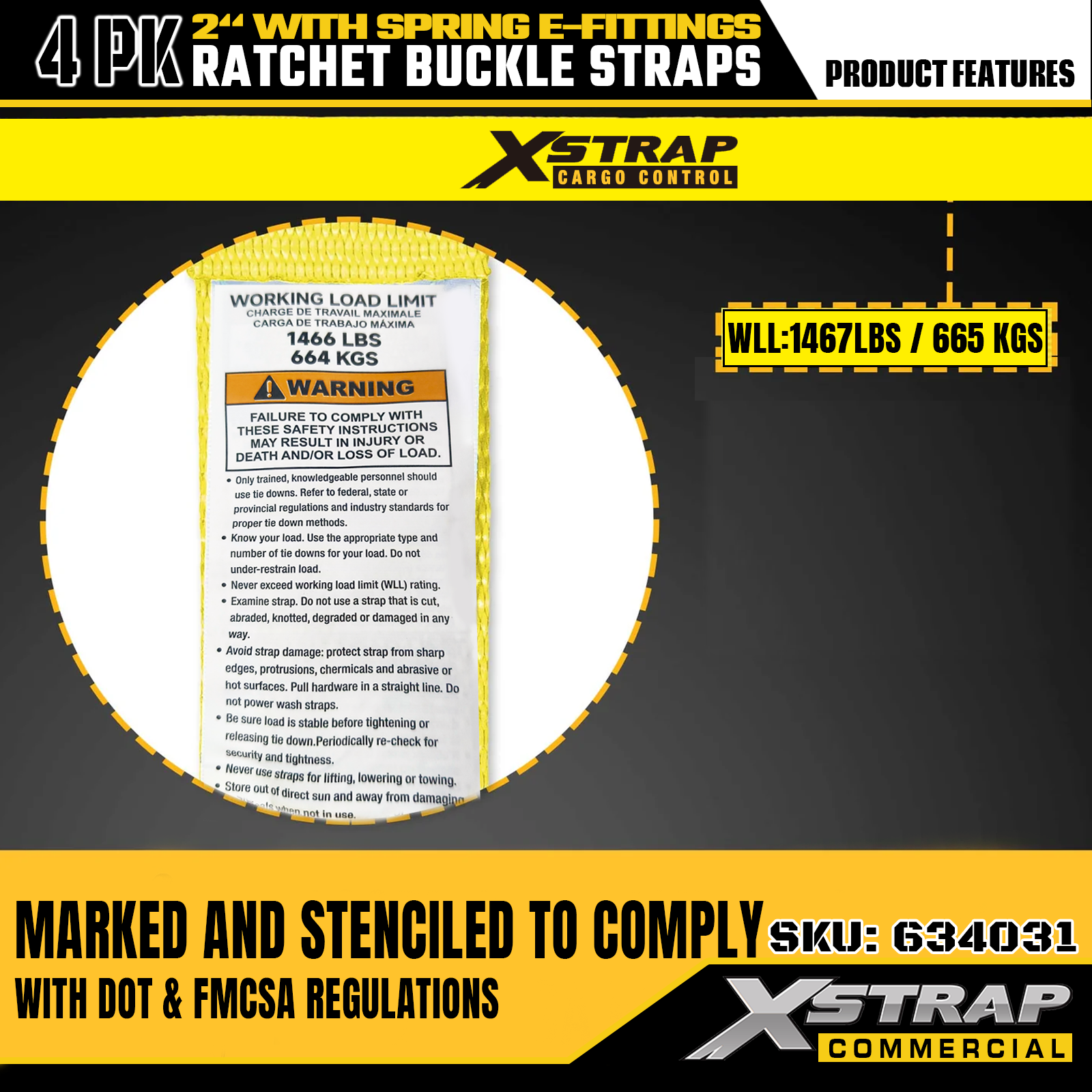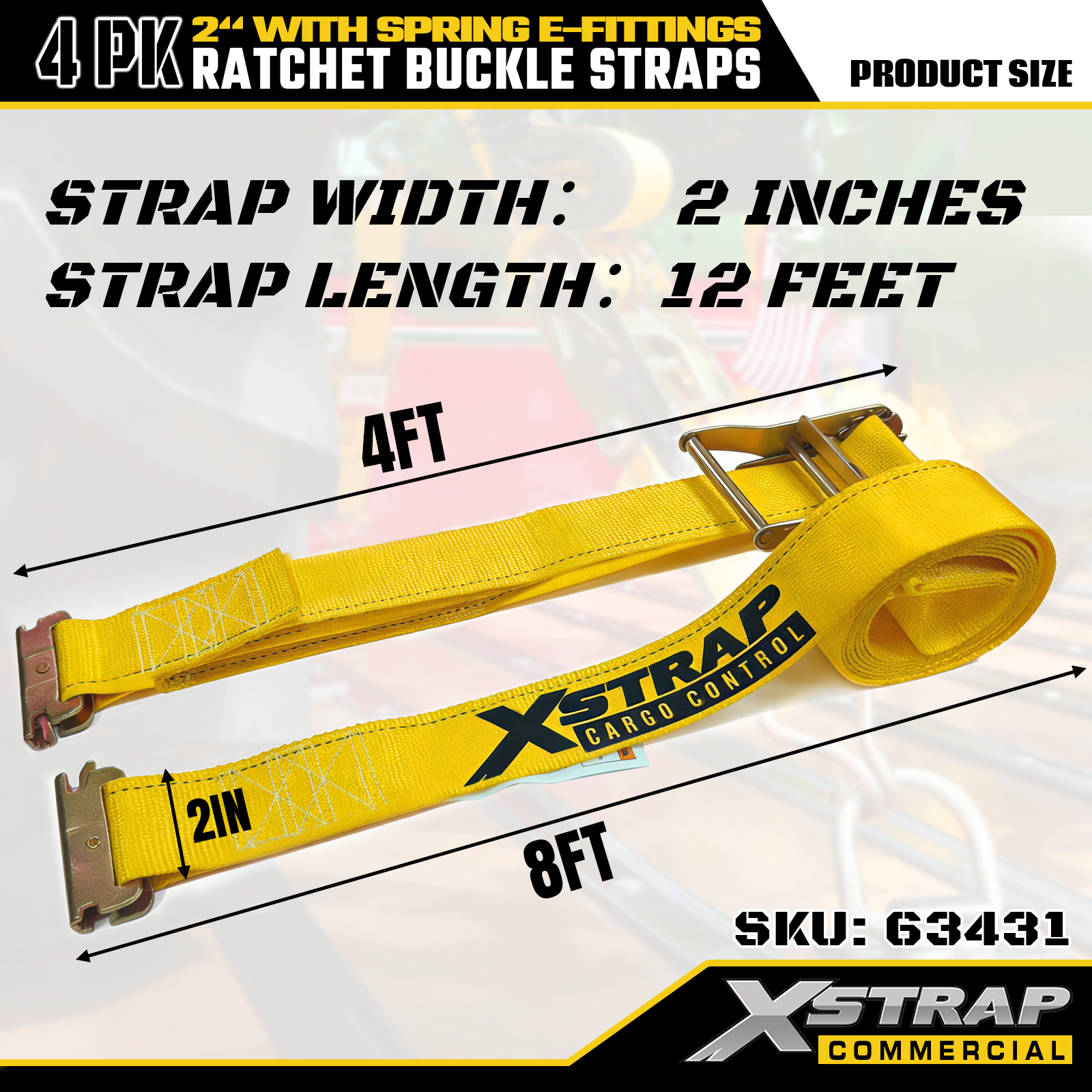 Xstrap 4 Pack de tiras de amarração de catraca, tiras de fixação de carga de poliéster de 2" x 12', carga de trabalho segura de 1.467 libras e resistência à ruptura de 4.401 libras, com ganchos de metal para caminhão, cortador de grama, ATVs