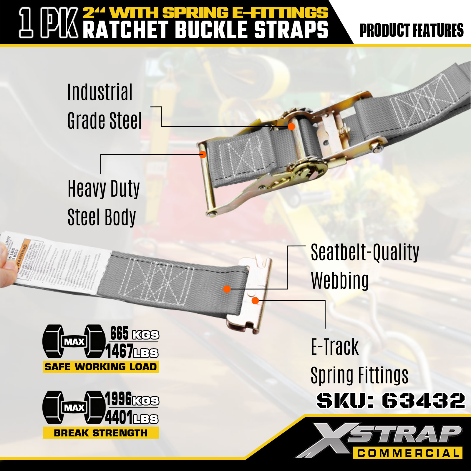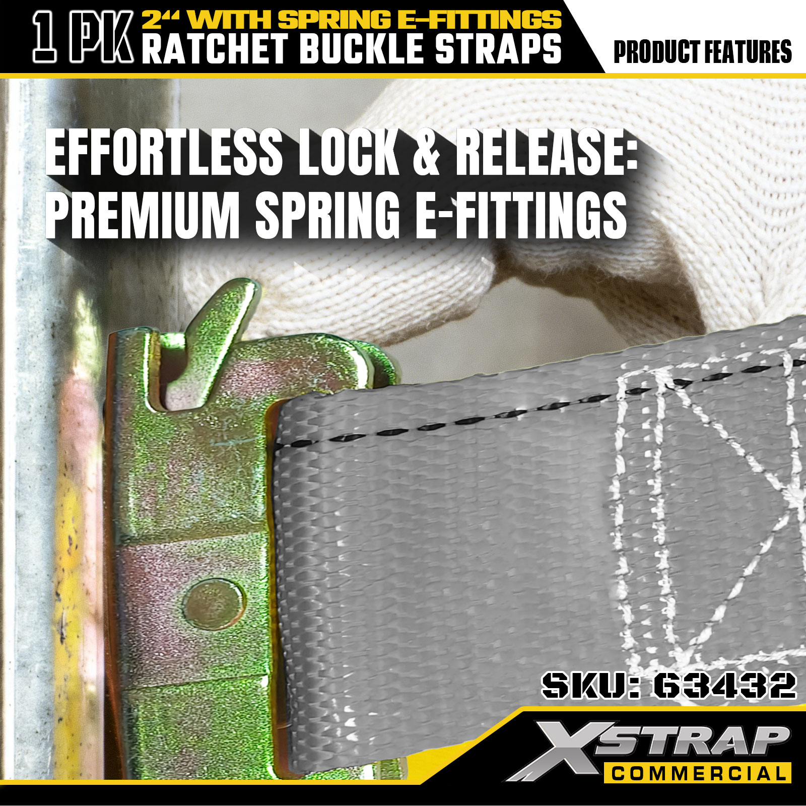 Correias de amarração de catraca de 1 pacote Xstrap, tiras de fixação de carga de poliéster de 2" x 16', carga de trabalho segura de 1.467 libras e resistência à ruptura de 4.401 libras, com acessórios de mola para caminhão, cortador de grama, ATVs
