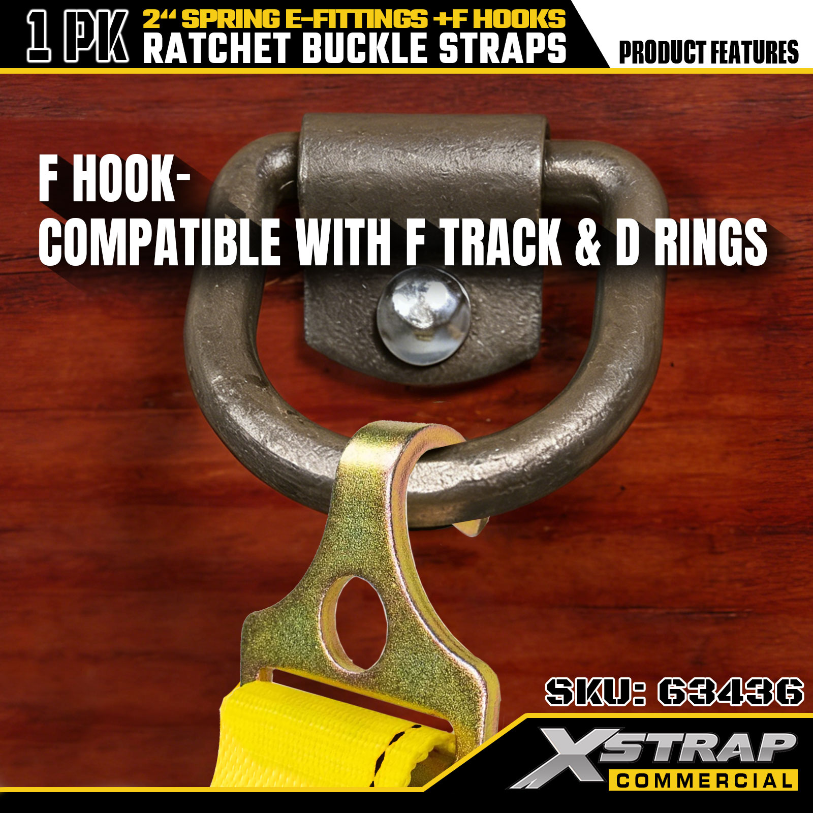 - SEGURO E CONFIÁVEL - Cada alça de catraca de 2" x 12' (1PK) tem um SWL de 733 libras e resistência à ruptura de 332 libras, com acessórios de mola E e ganchos F para travamento firme da carga. Ideal para caixas, eletrodomésticos e materiais de movimentação, compatível com sistemas E-Track em reboques, caminhões e armazéns.