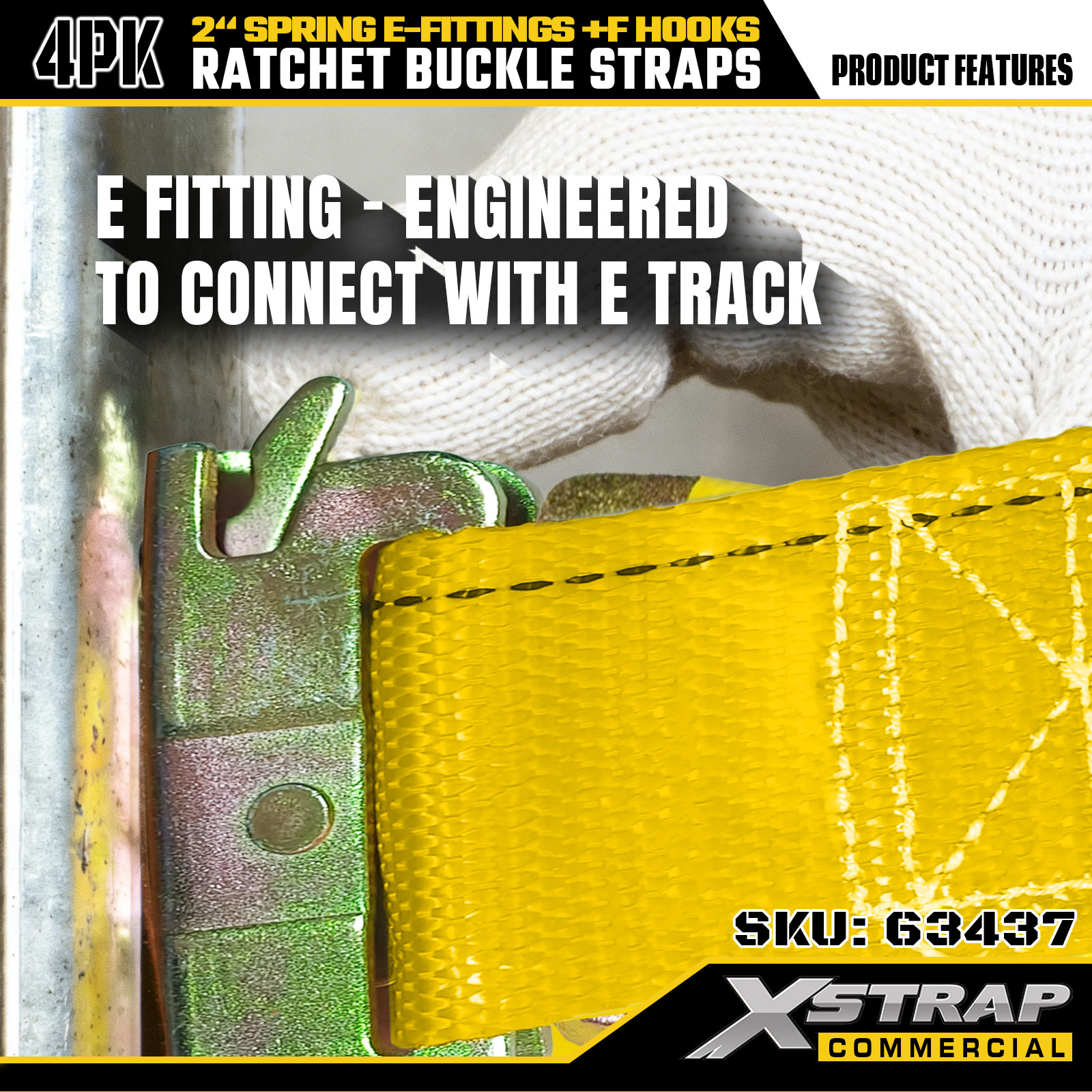 - Marcações claras de capacidade de carga: cada cinta é claramente etiquetada com uma carga de trabalho segura (SWL) de 733 libras e resistência à ruptura de 2.199 libras, fornecendo diretrizes de segurança críticas para garantir o controle adequado e seguro da carga.