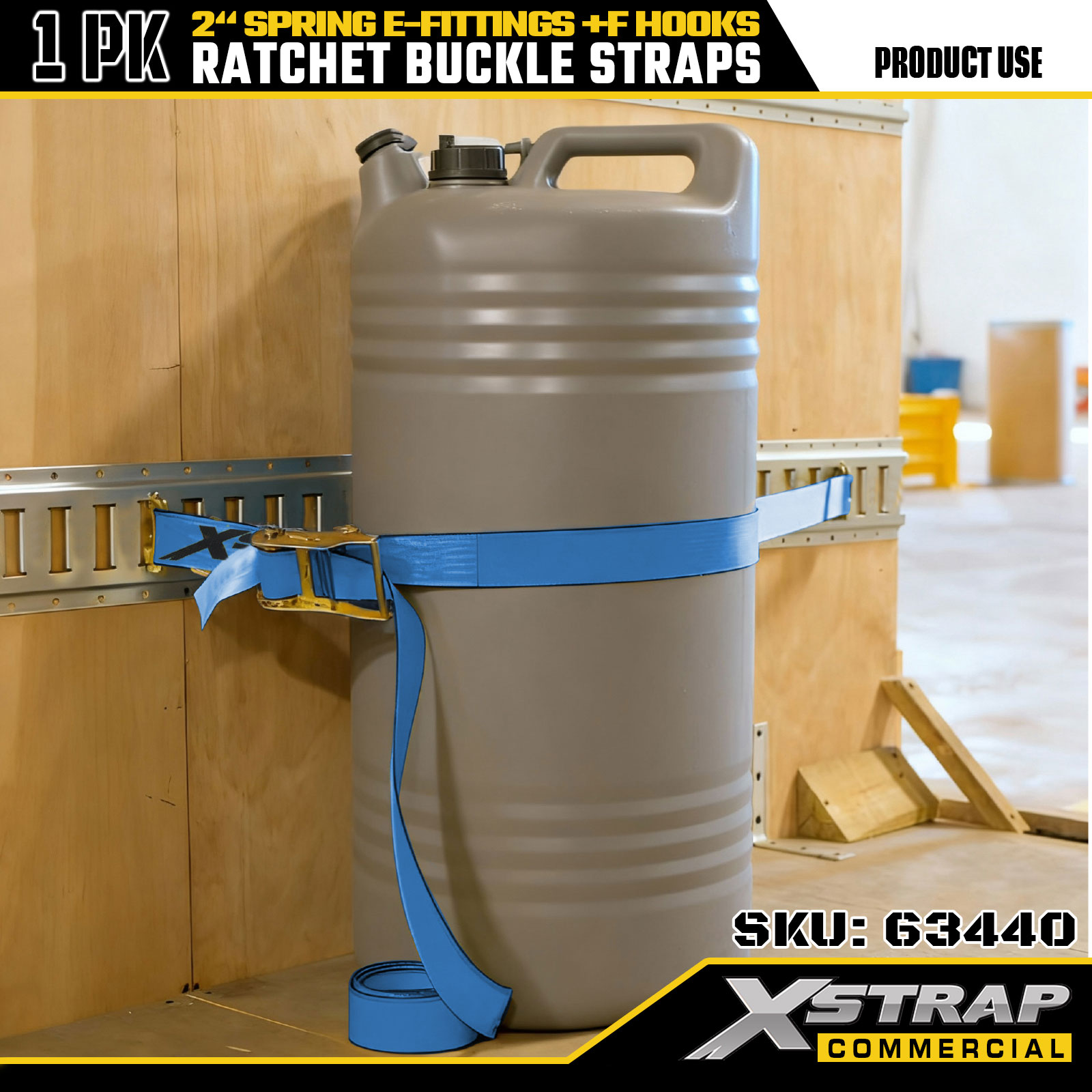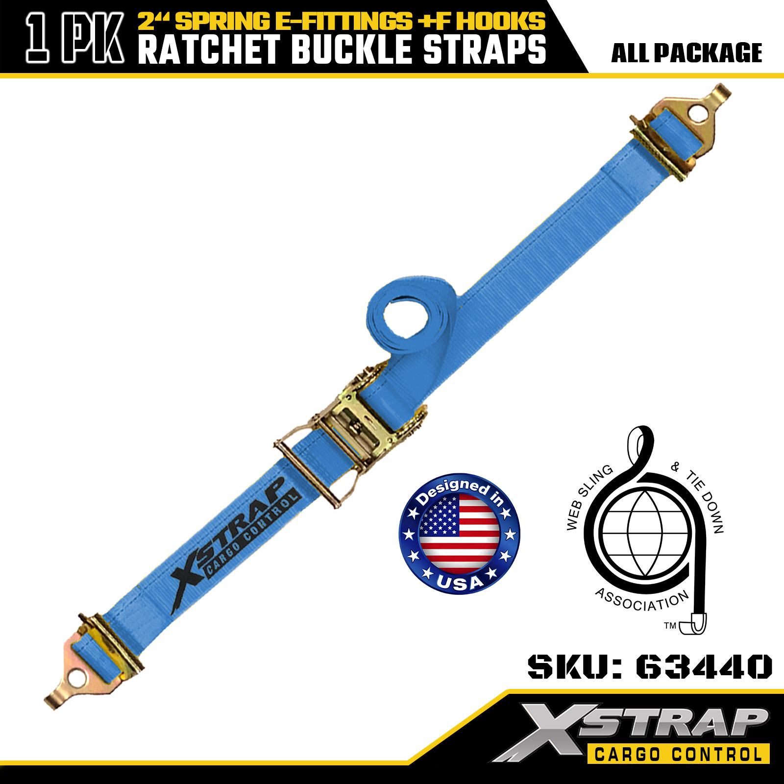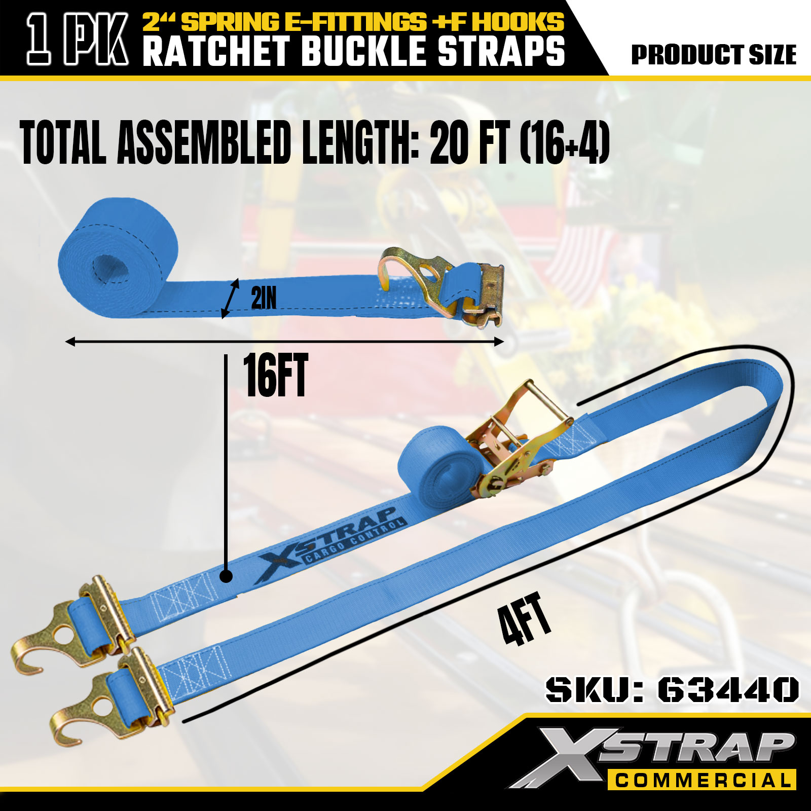 Correia de catraca para serviço pesado Xstrap 63440 2" x 20' (1PK) - Correia azul, acessórios de mola e ganchos F, 733 lbs SWL para movimentação, transporte de carga e uso de caminhão