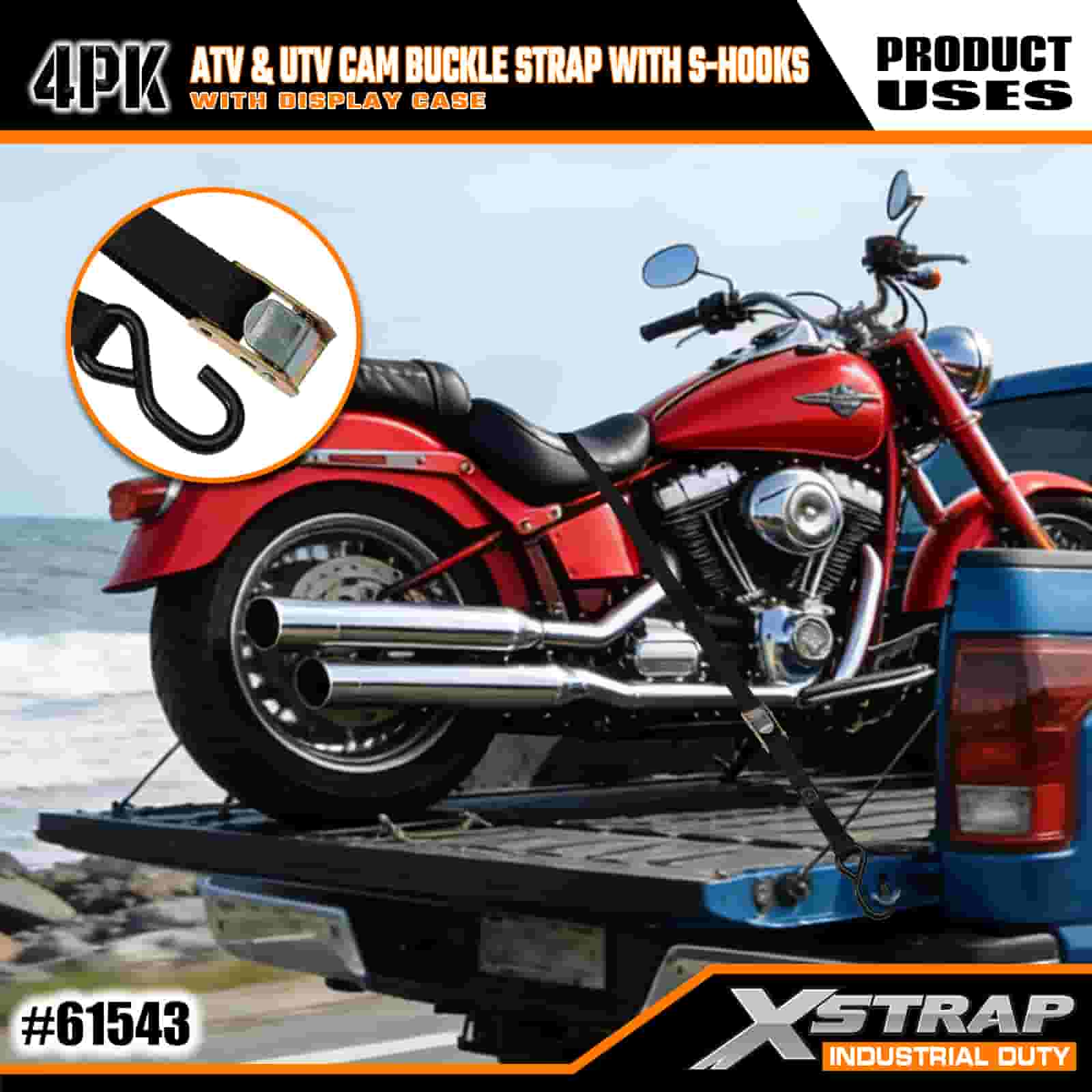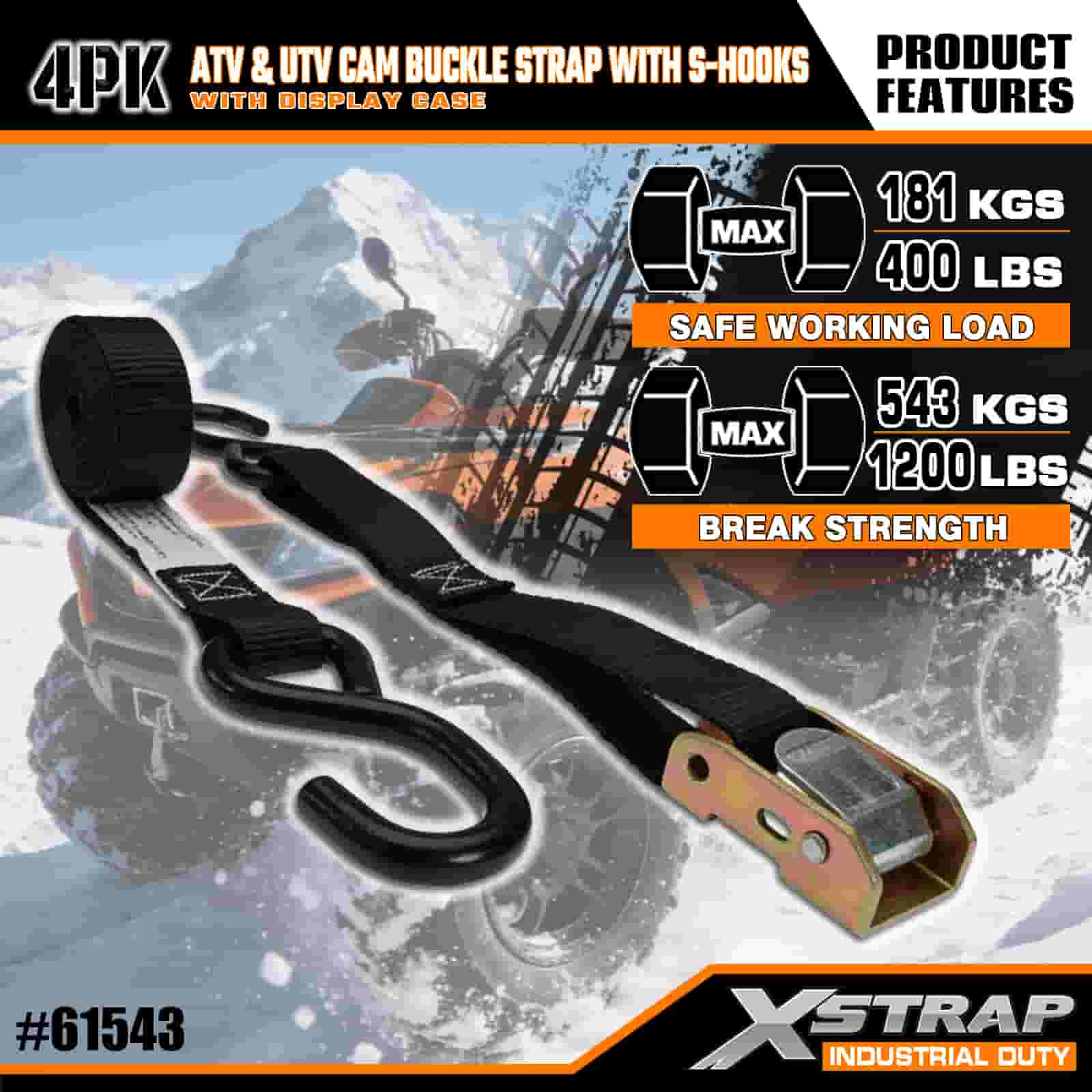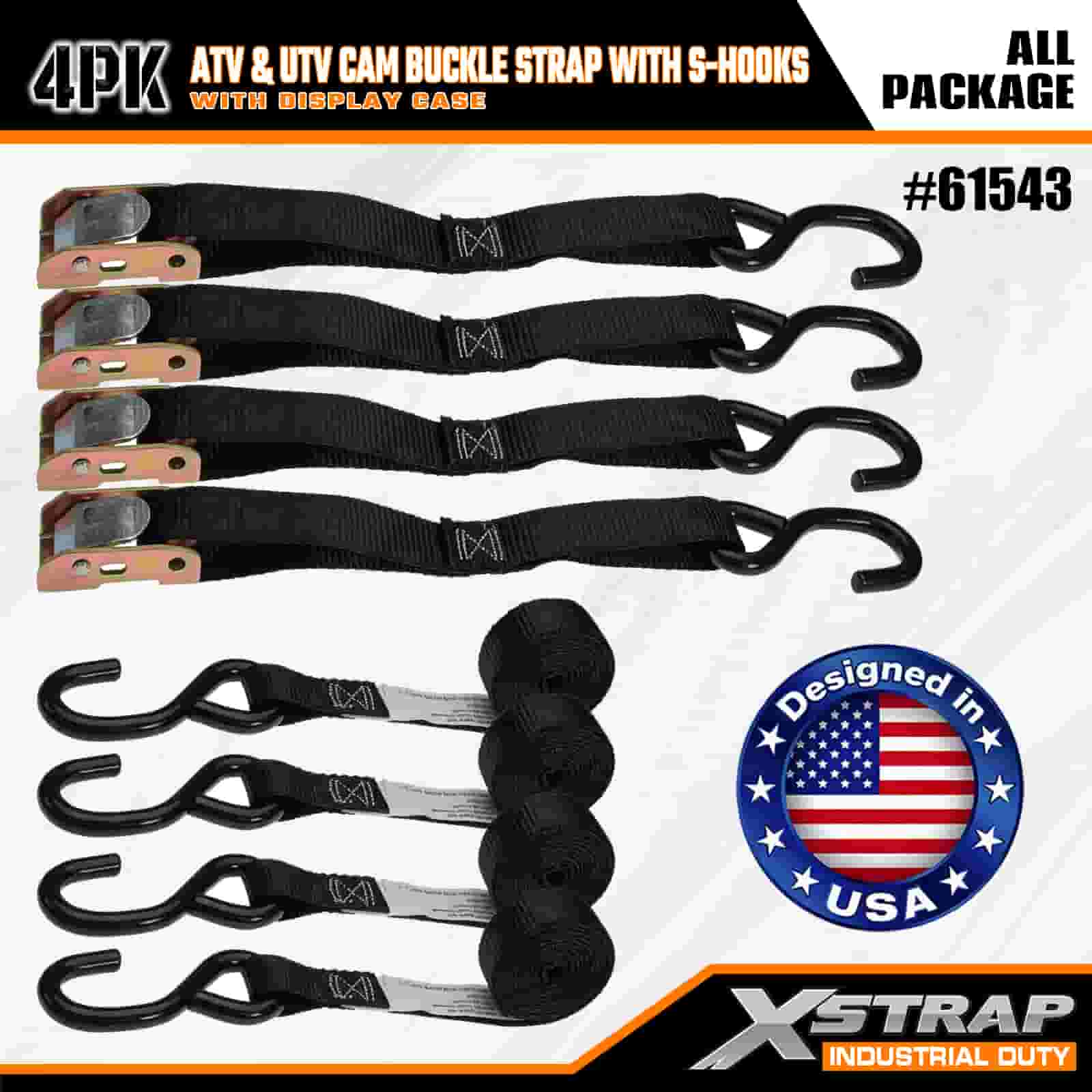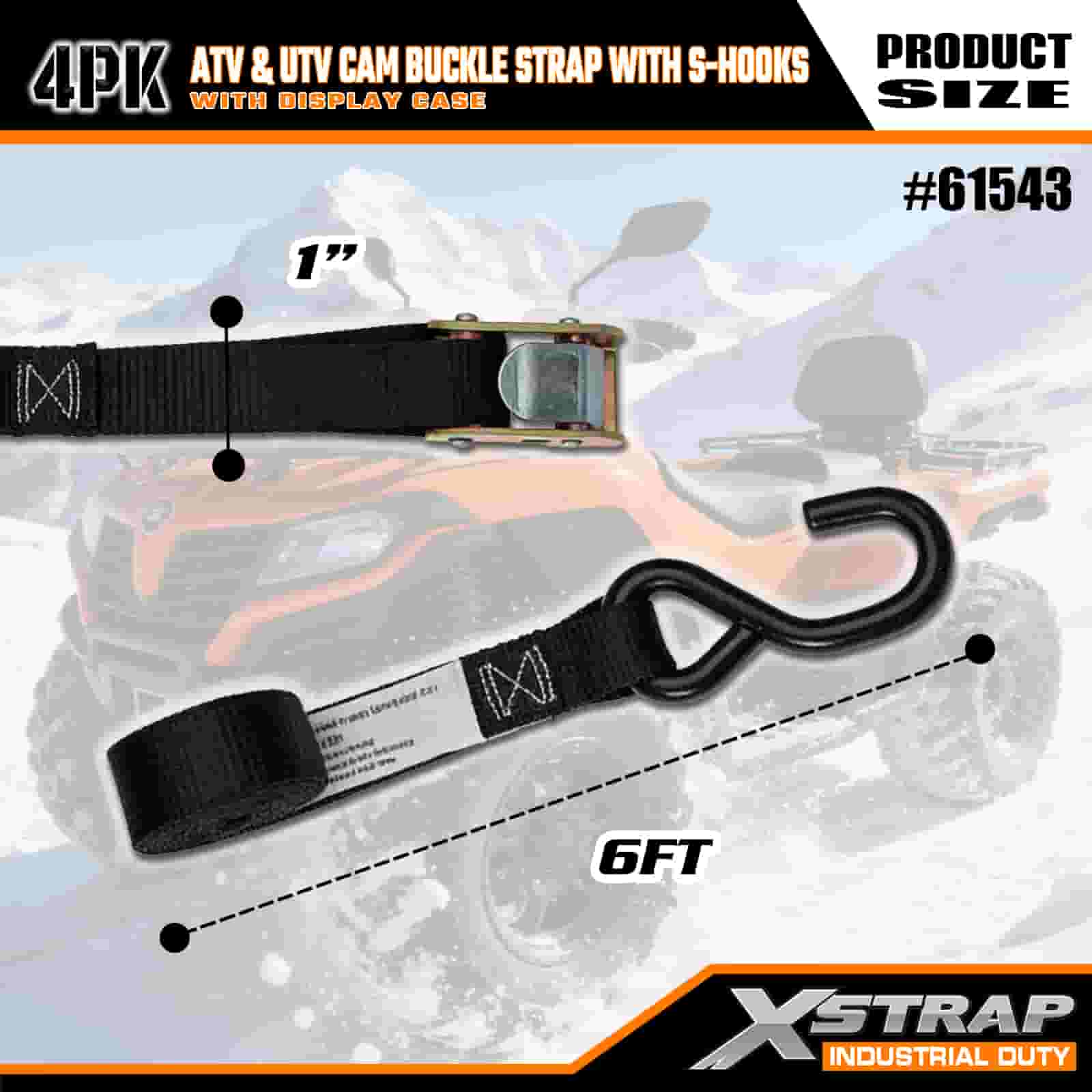 Correia de fivela Xstrap 4PK ATV e AUV com ganchos S, cinta de amarração de poliéster de 1" x 6', cinta de fivela com catraca, capacidade de 400 libras, correias de fixação de amarração de carga com gancho S para profissionais sérios para proteger trailer de carga, trailer de cama plana, barco de esqui, carro pequeno.