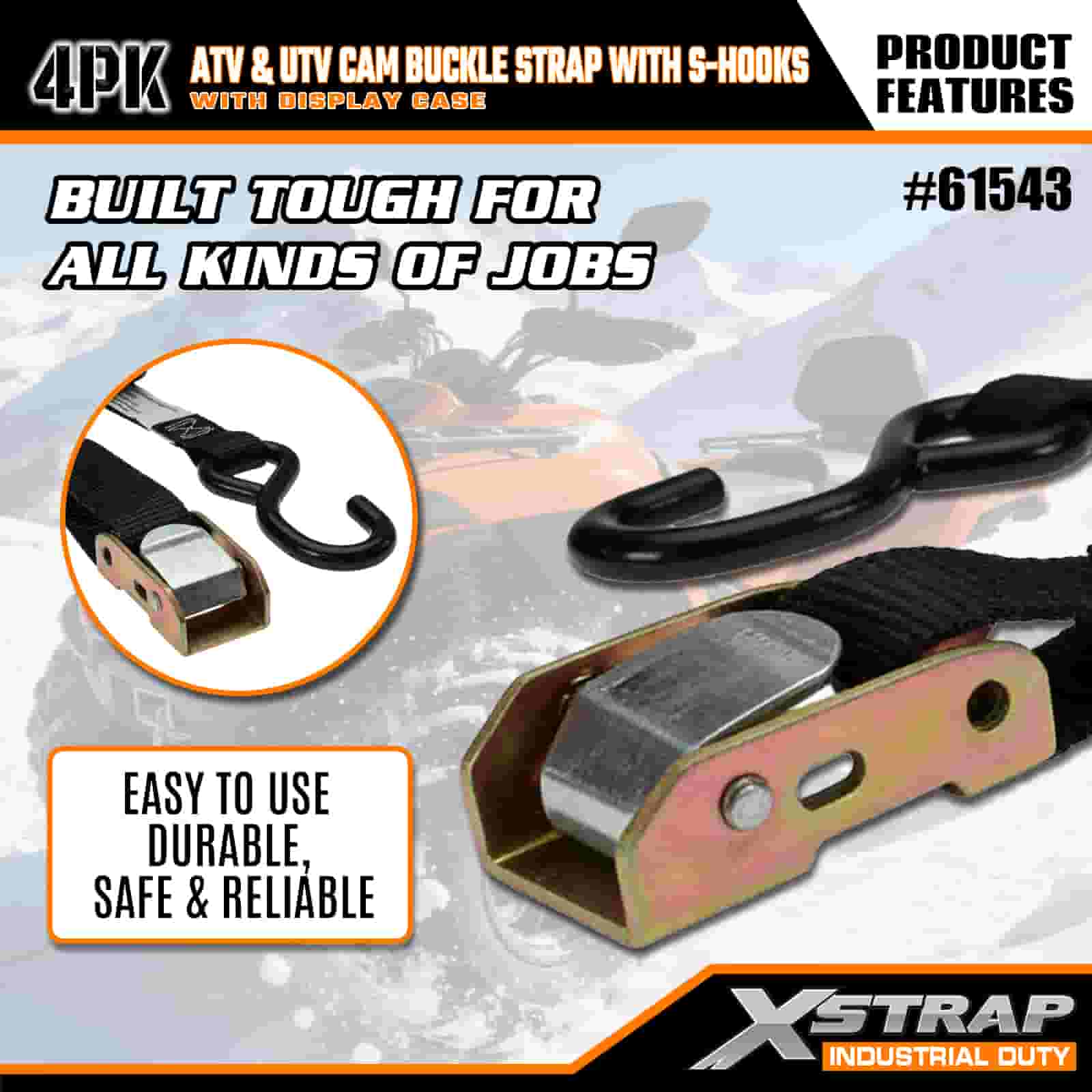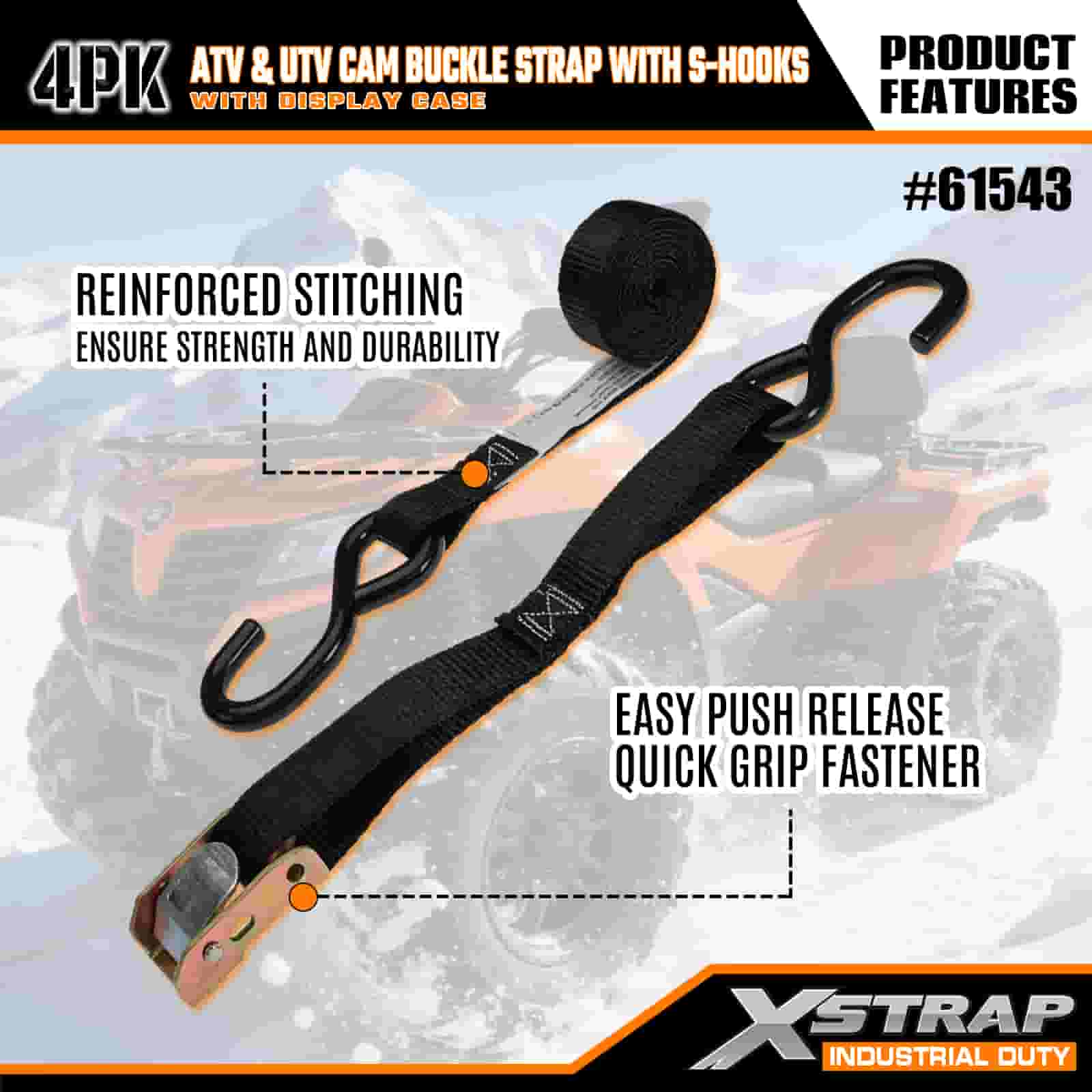 Correia de fivela de câmera ATV e AUV 4PK de 1" x 6' com ganchos S