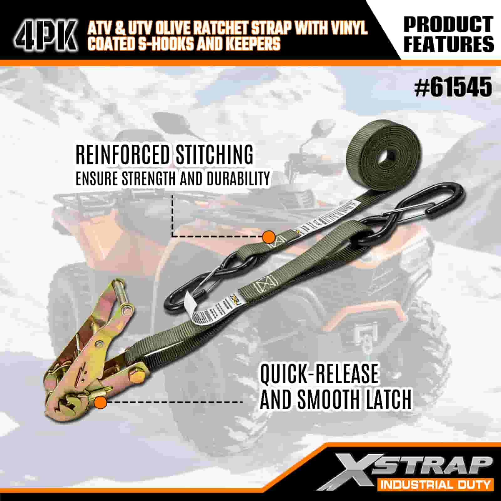 - Bloqueie e esqueça: Projetadas para atender aos rígidos padrões de segurança globais, essas tiras de catraca mantêm seu ATV ou UTV travado no lugar através de lama, sulcos e terrenos acidentados. Chega de verificar sua carga no meio da viagem – seu equipamento permanece seguro do início ao fim.