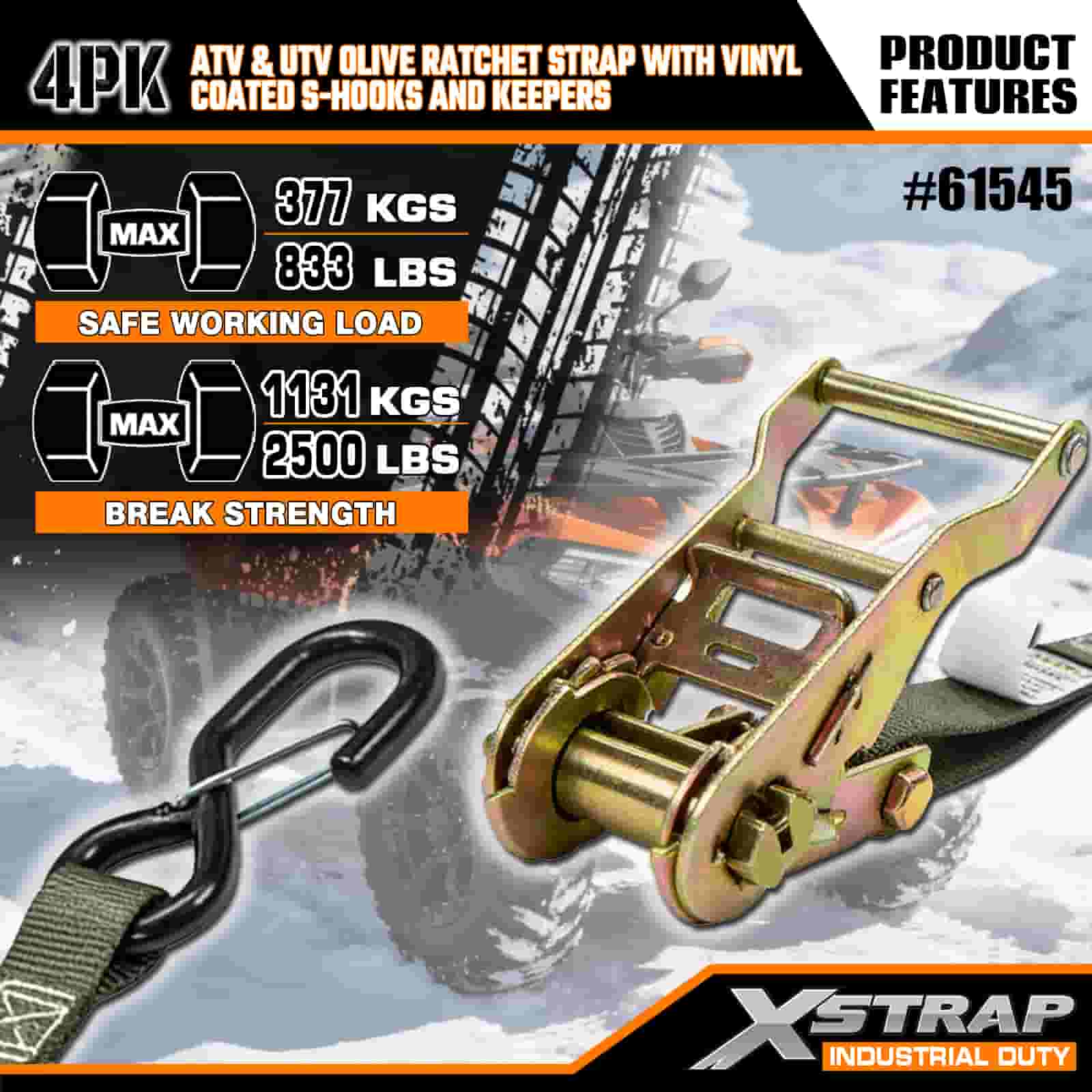 - Pacote de 4 para cobertura total: Este conjunto inclui 4 tiras, oferecendo o suficiente para proteger a frente e a traseira do seu ATV ou UTV. O comprimento de 2,5 metros cabe em caçambas de caminhões, reboques ou pontos de amarração, para que você possa obter um apoio estável sempre.
