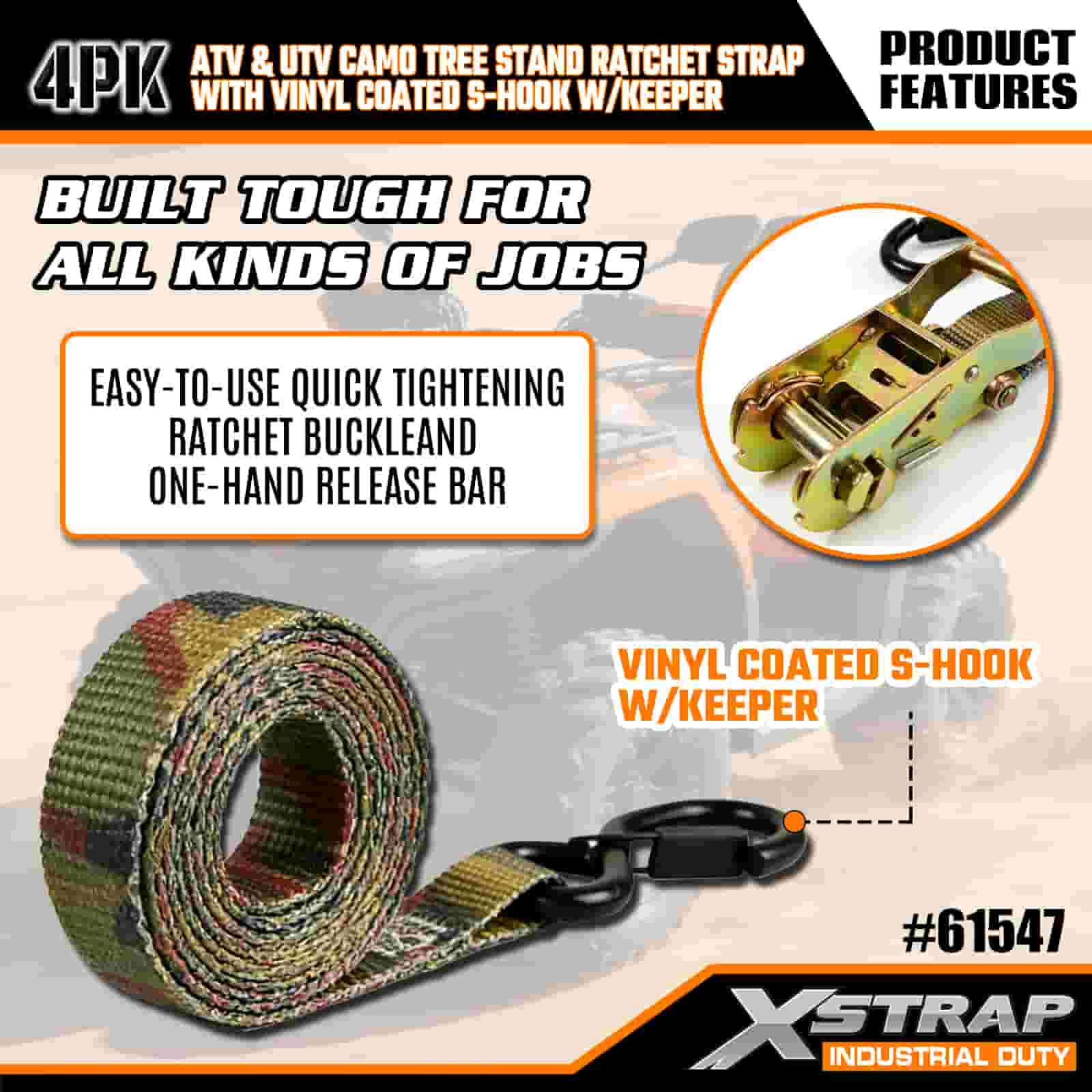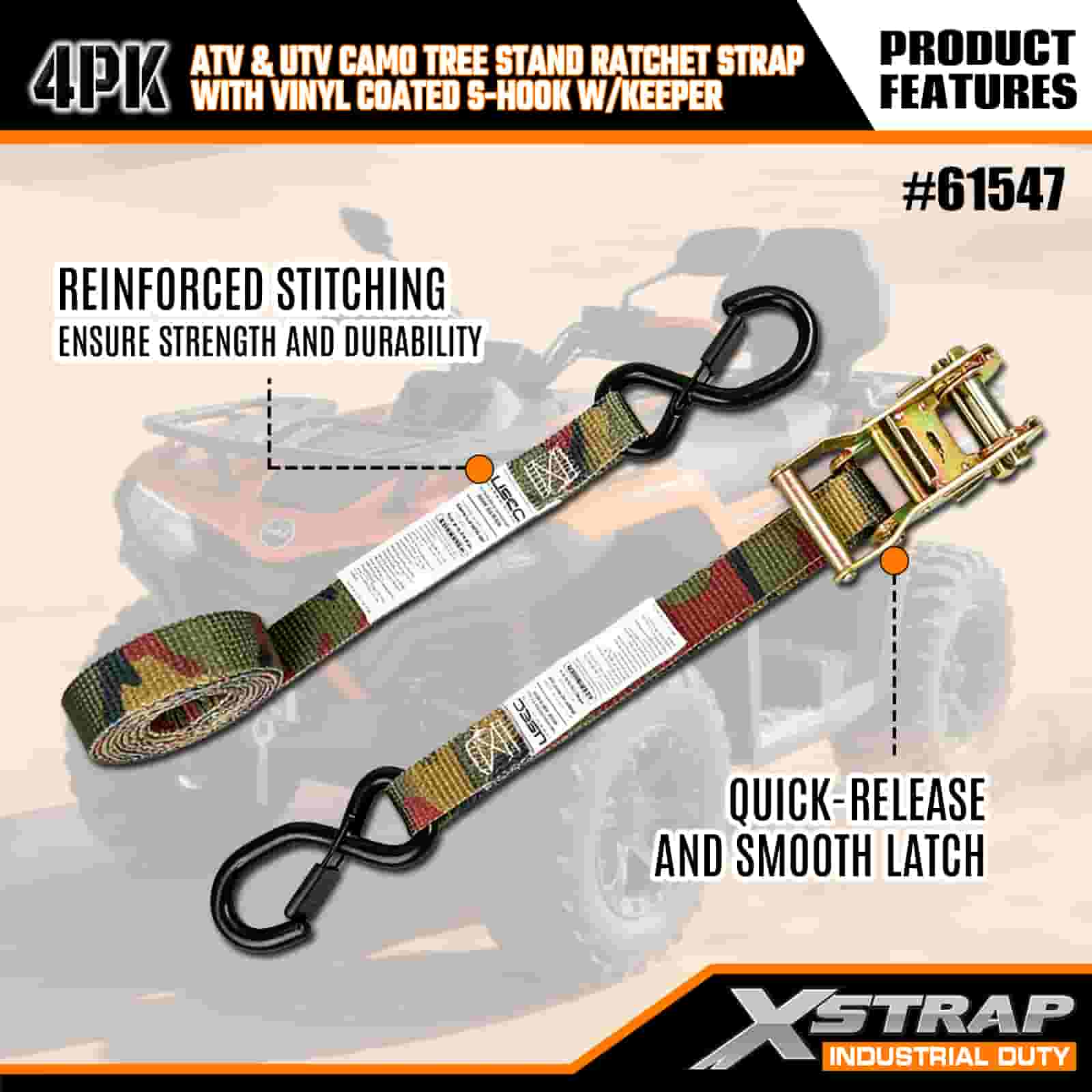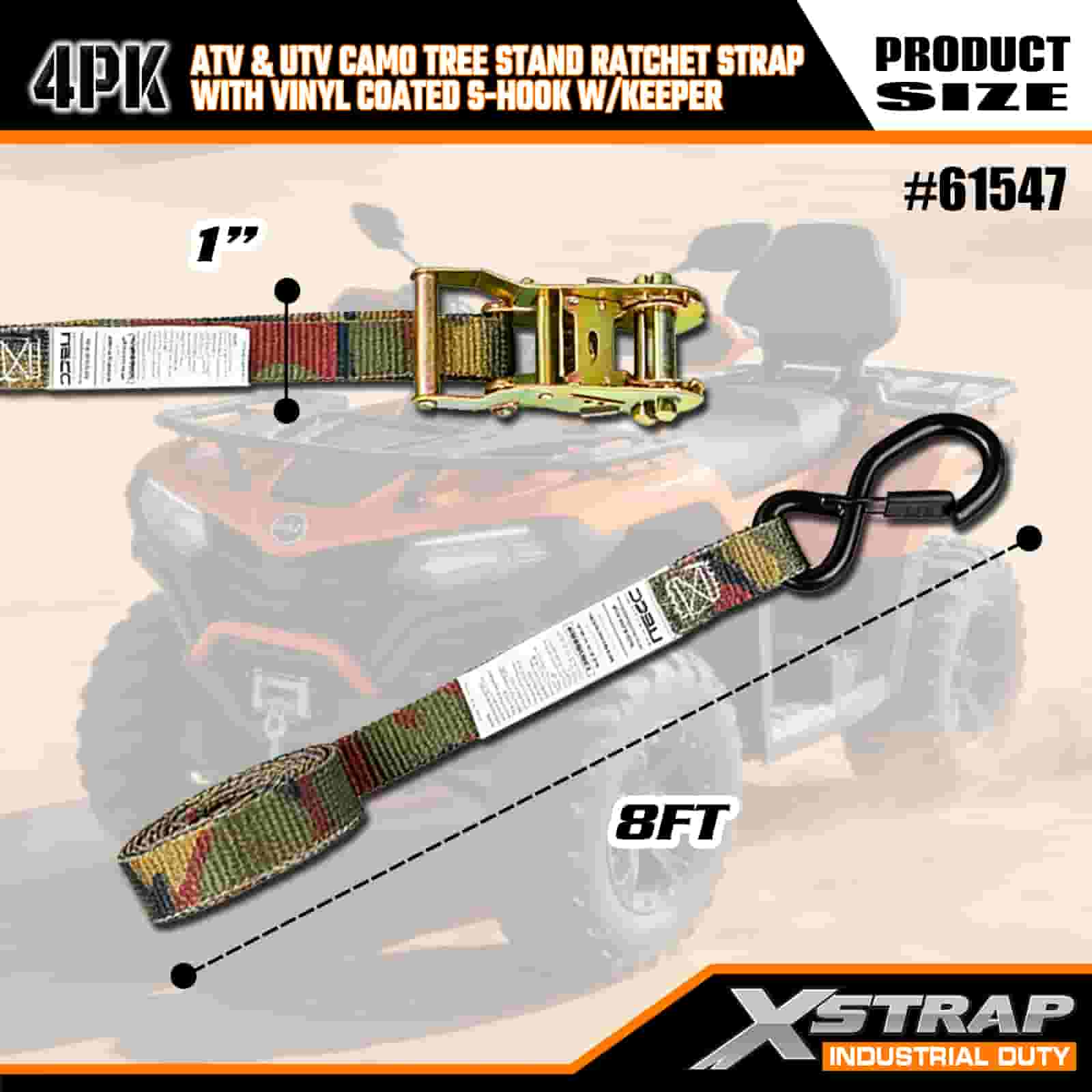 Correia de catraca Xstrap 4PK com ganchos de segurança S revestidos de vinil, cinta de amarração de poliéster de 1" x 8', cinta de catraca, capacidade de 400 libras, correias de fixação de amarração de carga com ganchos de segurança S para reboque, barco de esqui de reboque de cama plana, carro pequeno, equipamento pesado.
