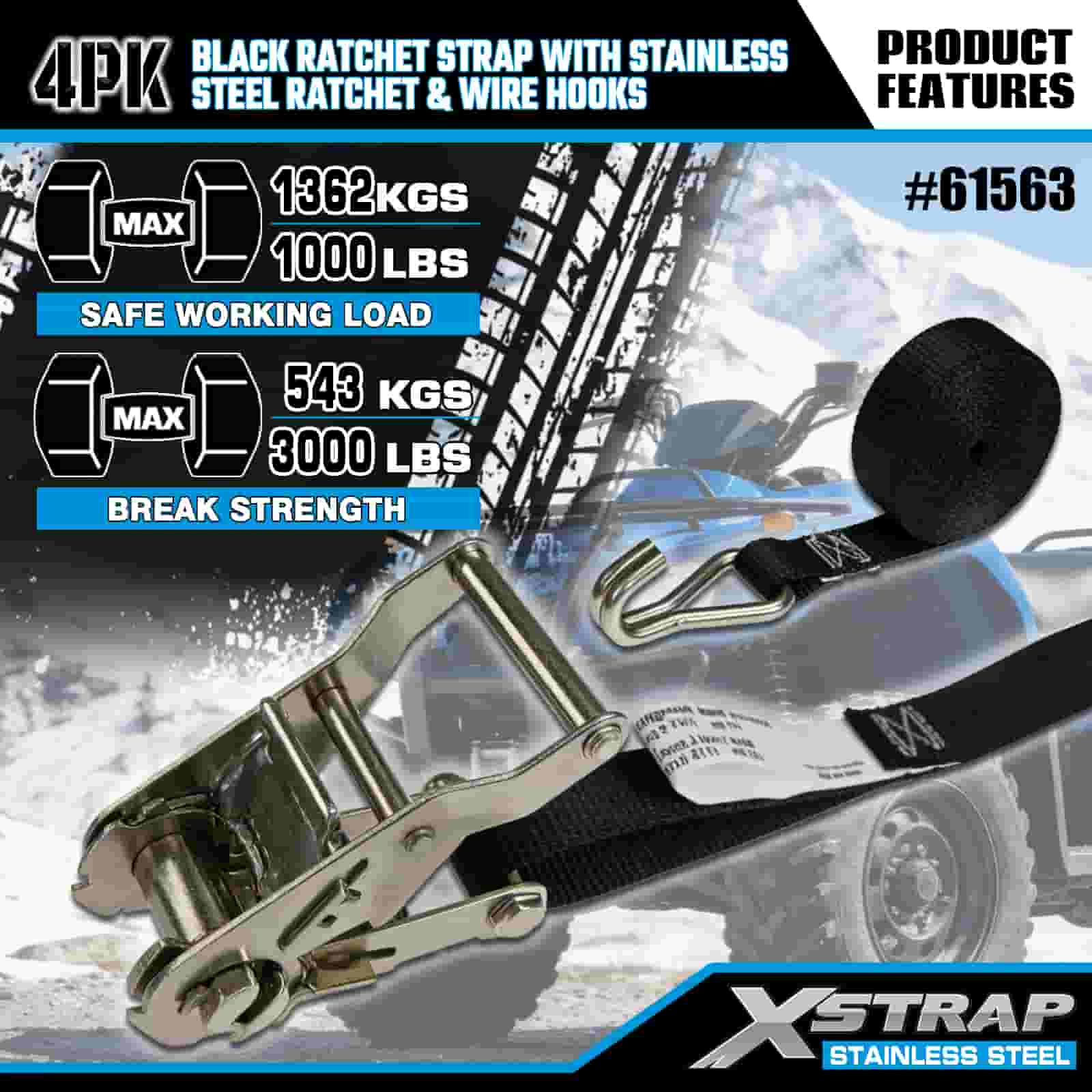 - Essencial para transporte pesado, construído para uso off-road e urbanoProjetado para proteger motocicletas, ATVs e carga em ambientes off-road robustos e urbanos movimentados, este pacote de 4 tiras de catraca oferece resistência intransigente. Apoiado pelos 20 anos de experiência em controle de carga da XStrap, você pode confiar que sua carga permanecerá travada, não importa o terreno.