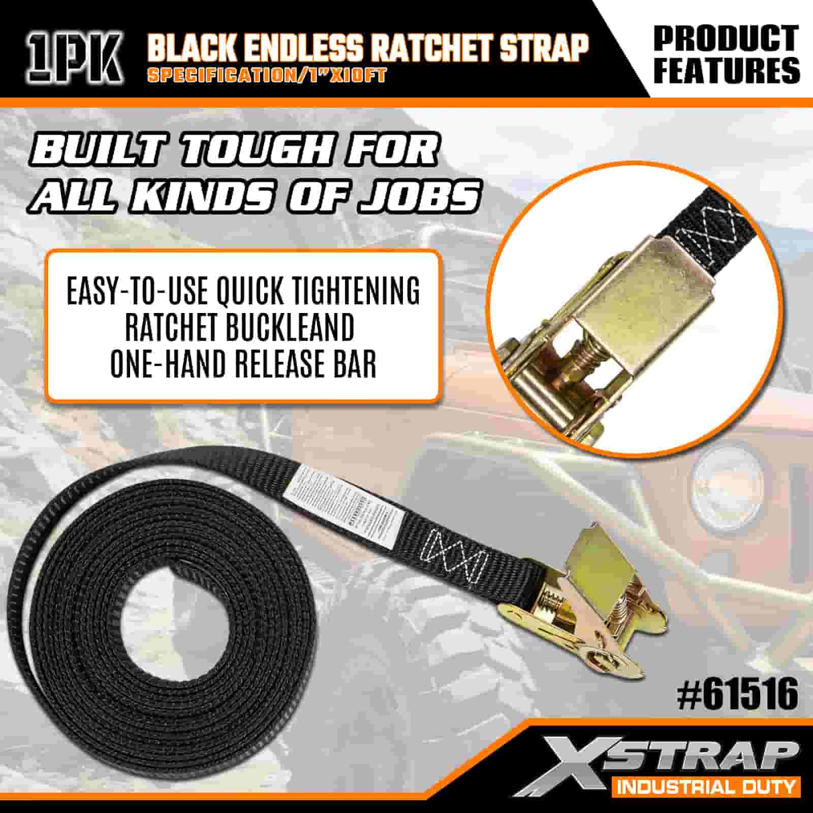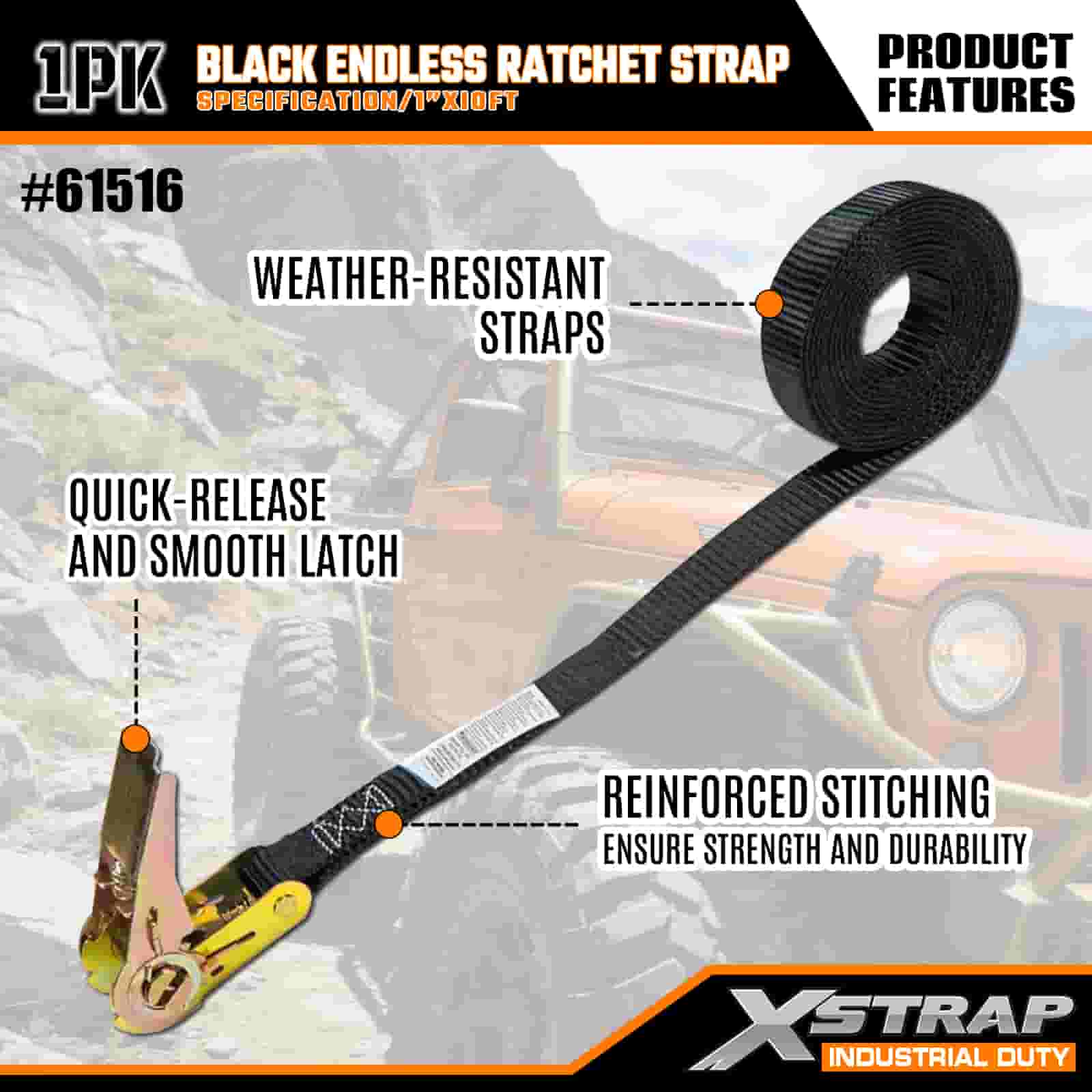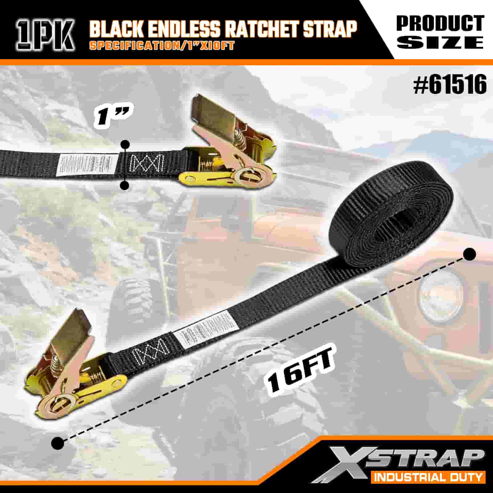 - Comprimento de 16 pés para uso versátil: vendido como uma alça única (1 polegada de largura x 16 pés de comprimento) com armazenamento de bobina, ideal para proteger caixas de teto, equipamentos industriais e cargas de tamanhos estranhos em ambientes off-road ou de local de trabalho.