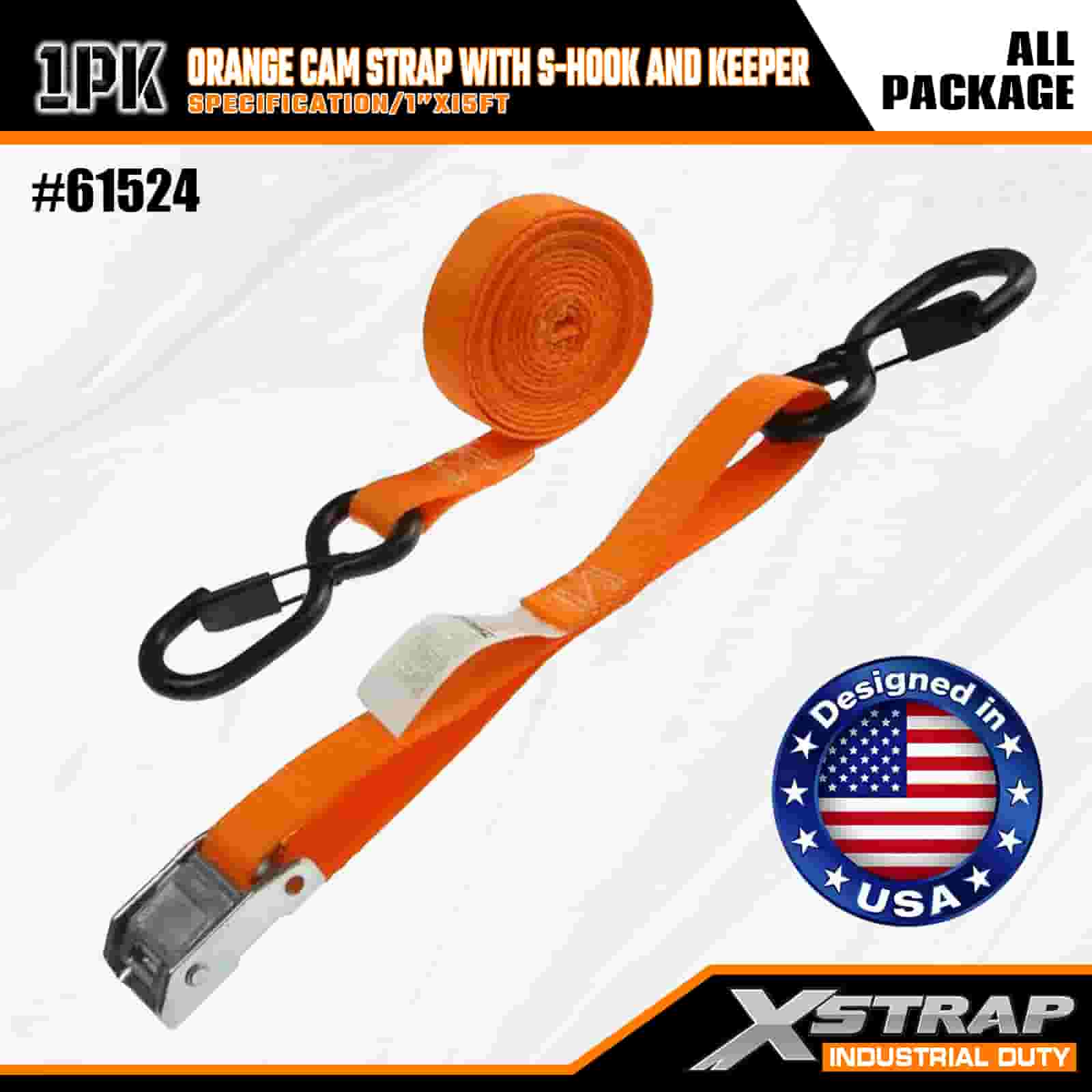 Correia de câmera Xstrap Qrange com gancho em S e protetor, alça de amarração de poliéster de 1" x 15', alça de catraca, cintas de fixação de amarração de carga com capacidade de 400 libras com ganchos de segurança S para profissionais sérios para proteger trailer de carga, trailer de cama plana, barco de esqui, carro pequeno.