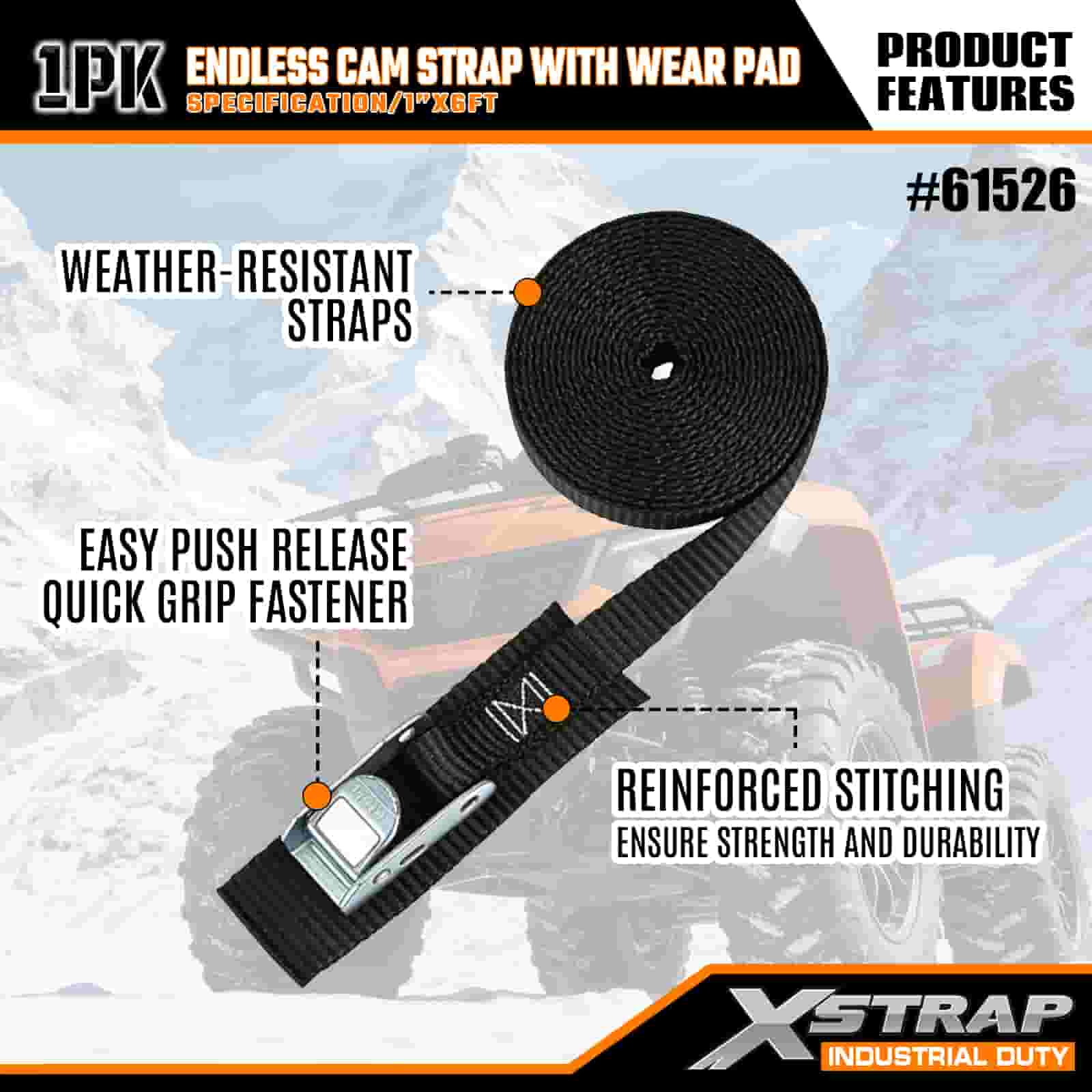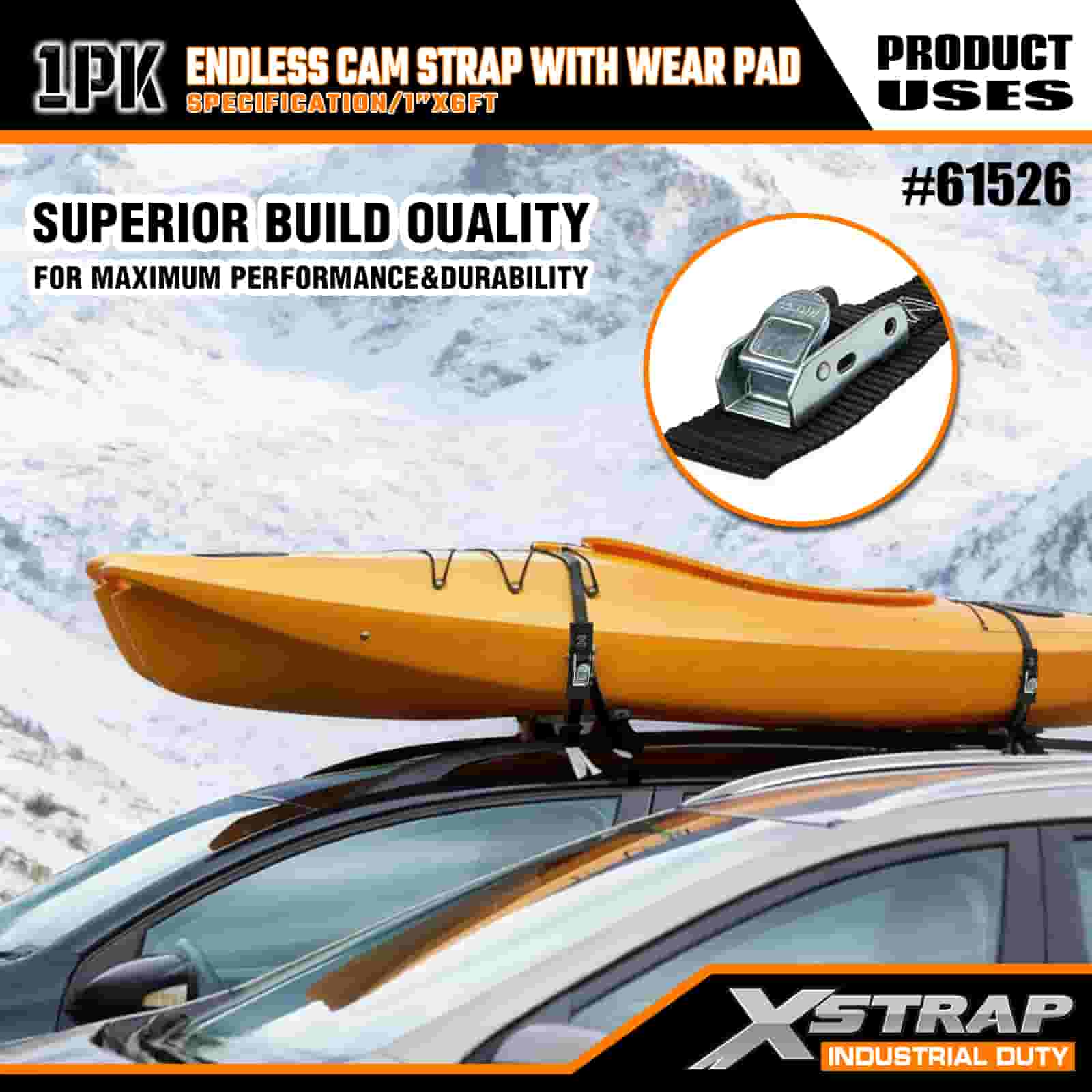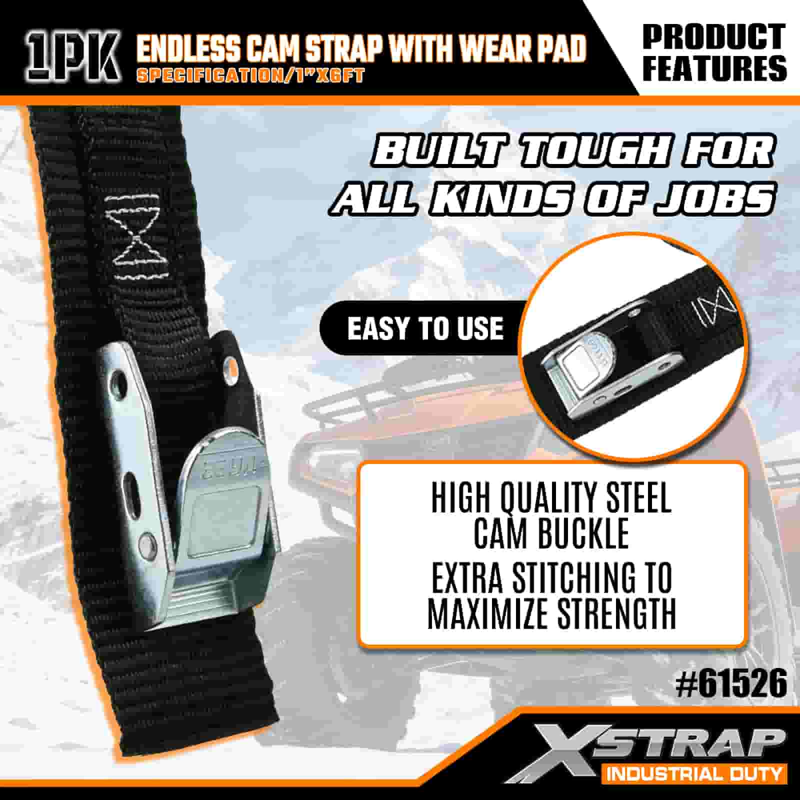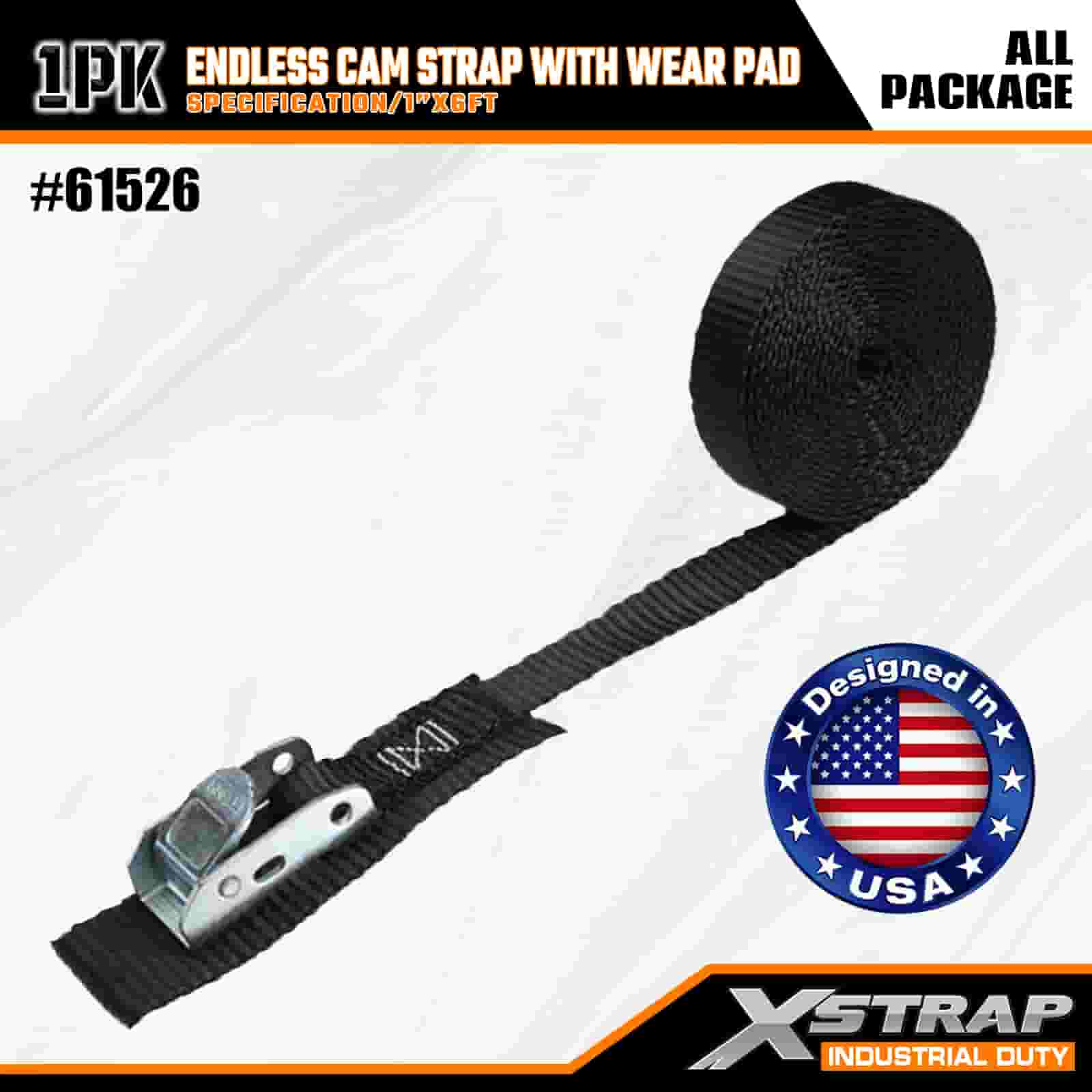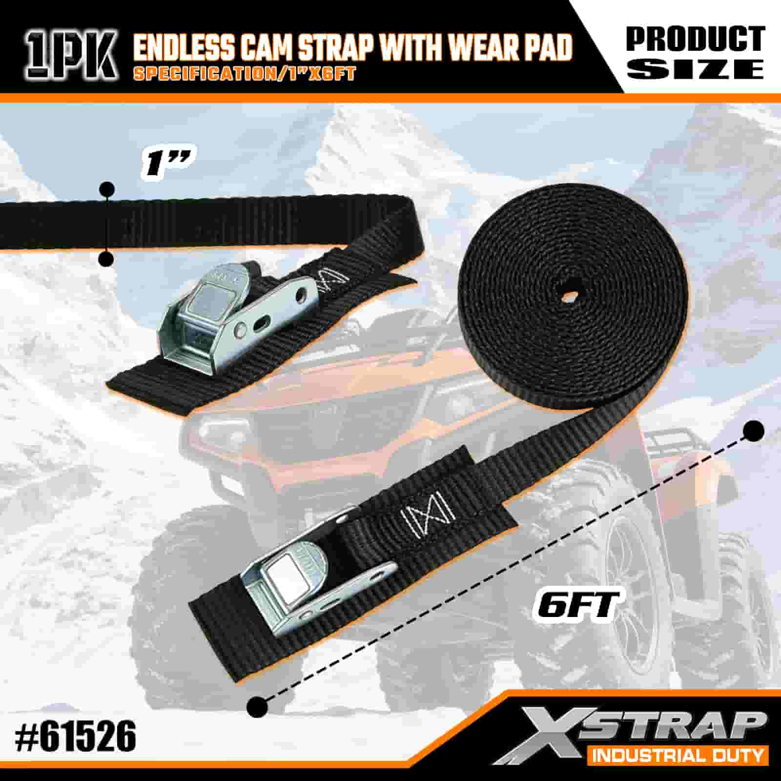 Correia de câmera sem fim Xstrap com almofada de desgaste, alça de amarração de poliéster de 1" x 6', alça de fivela de câmera, tiras de fixação de amarração de carga com capacidade de 400 libras para profissionais sérios para proteger trailer de carga, trailer de cama plana, barco de esqui, carro pequeno.