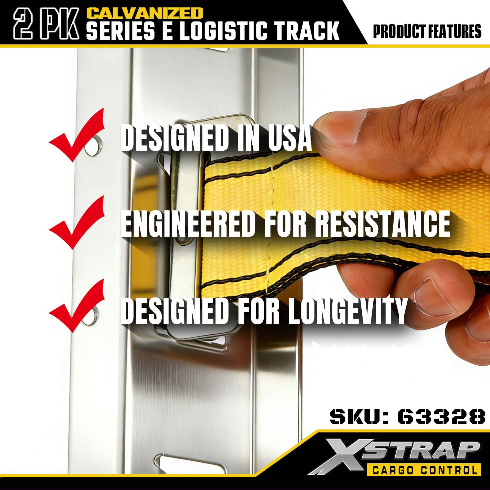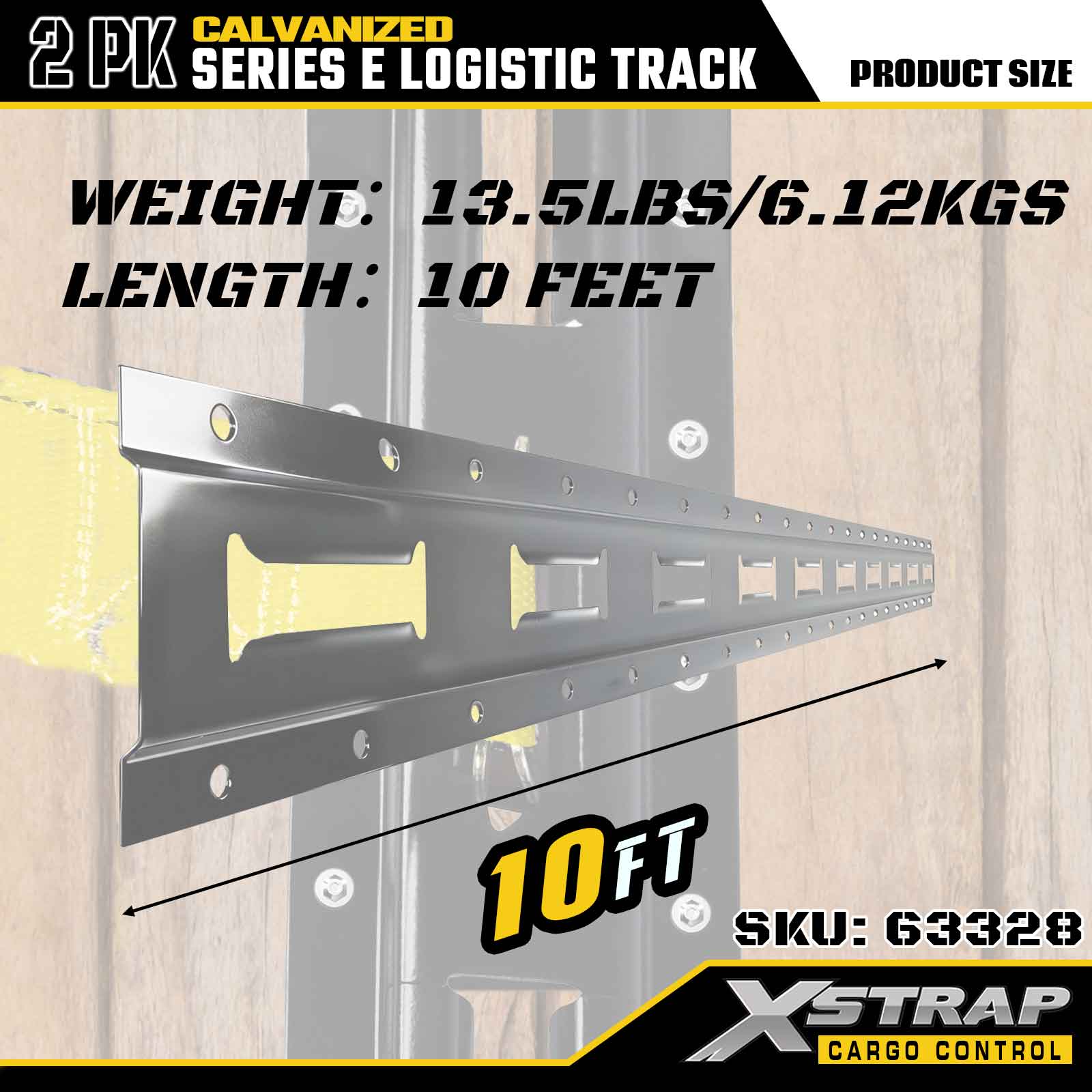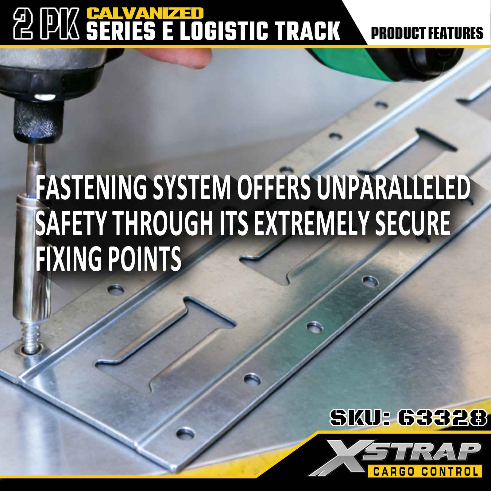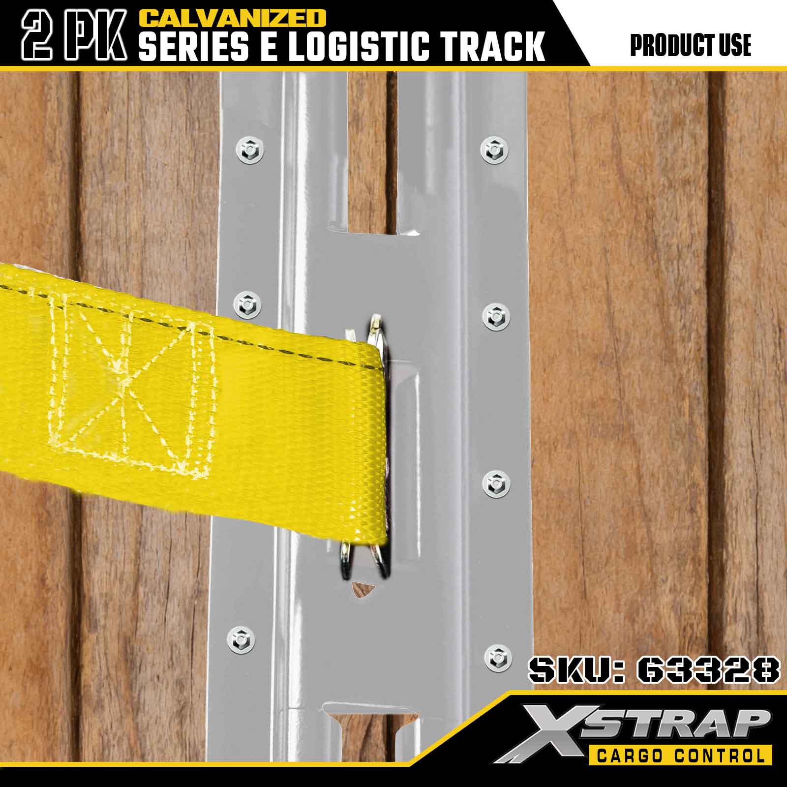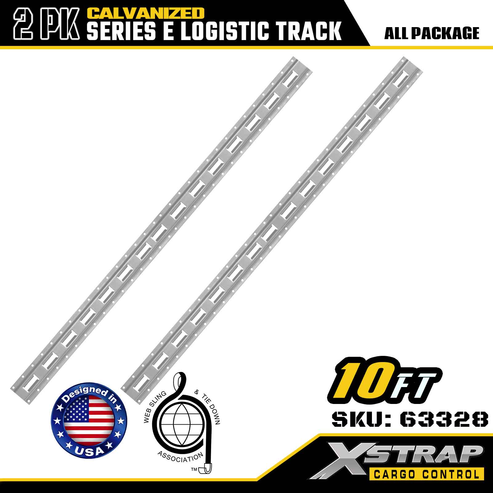 Xstrap 63328 Trilho de amarração E-Track prateado galvanizado de 10 pés - aço calibre 12 com acabamento galvanizado, capacidade de carga de 6.000 libras, pacote de 2 para fixação de carga