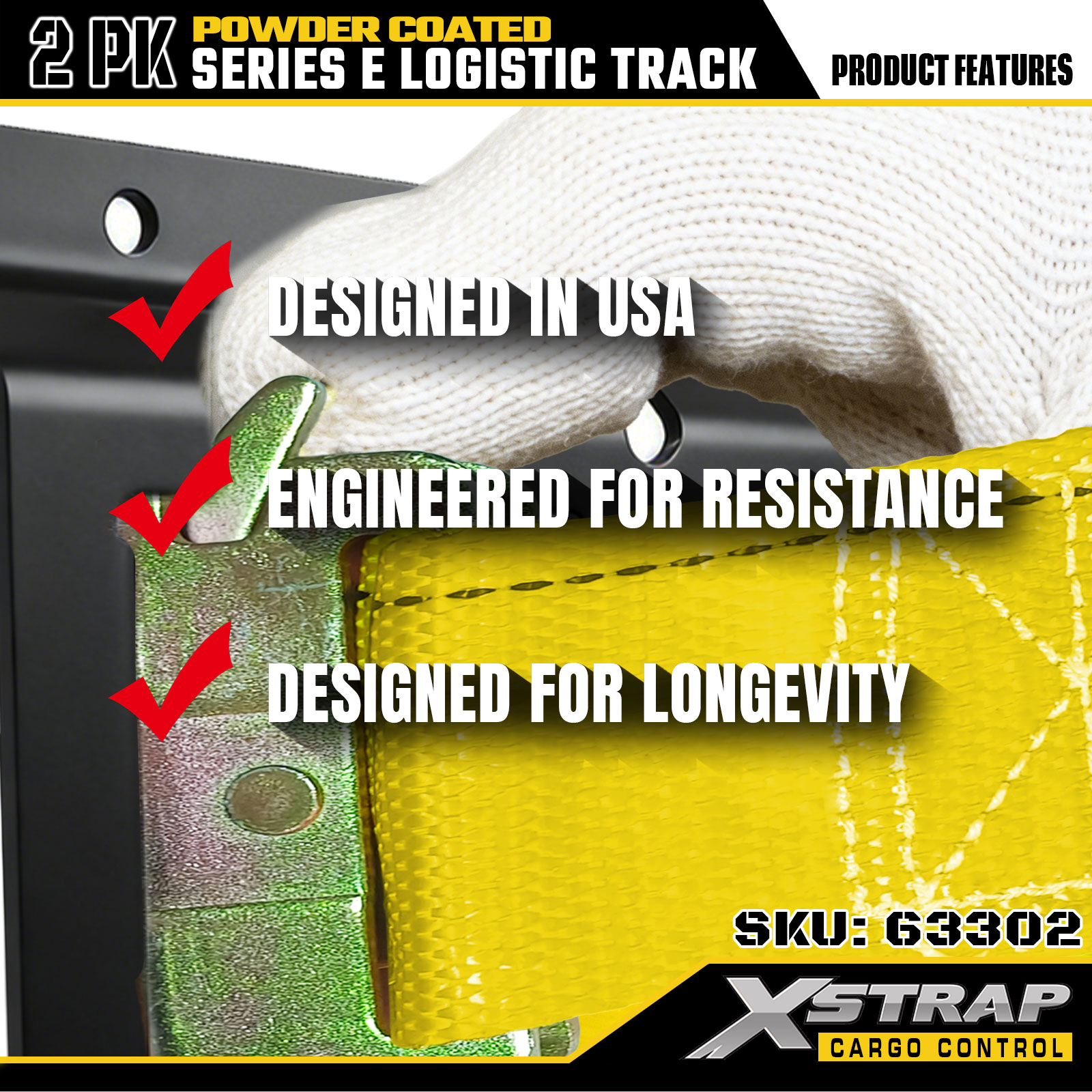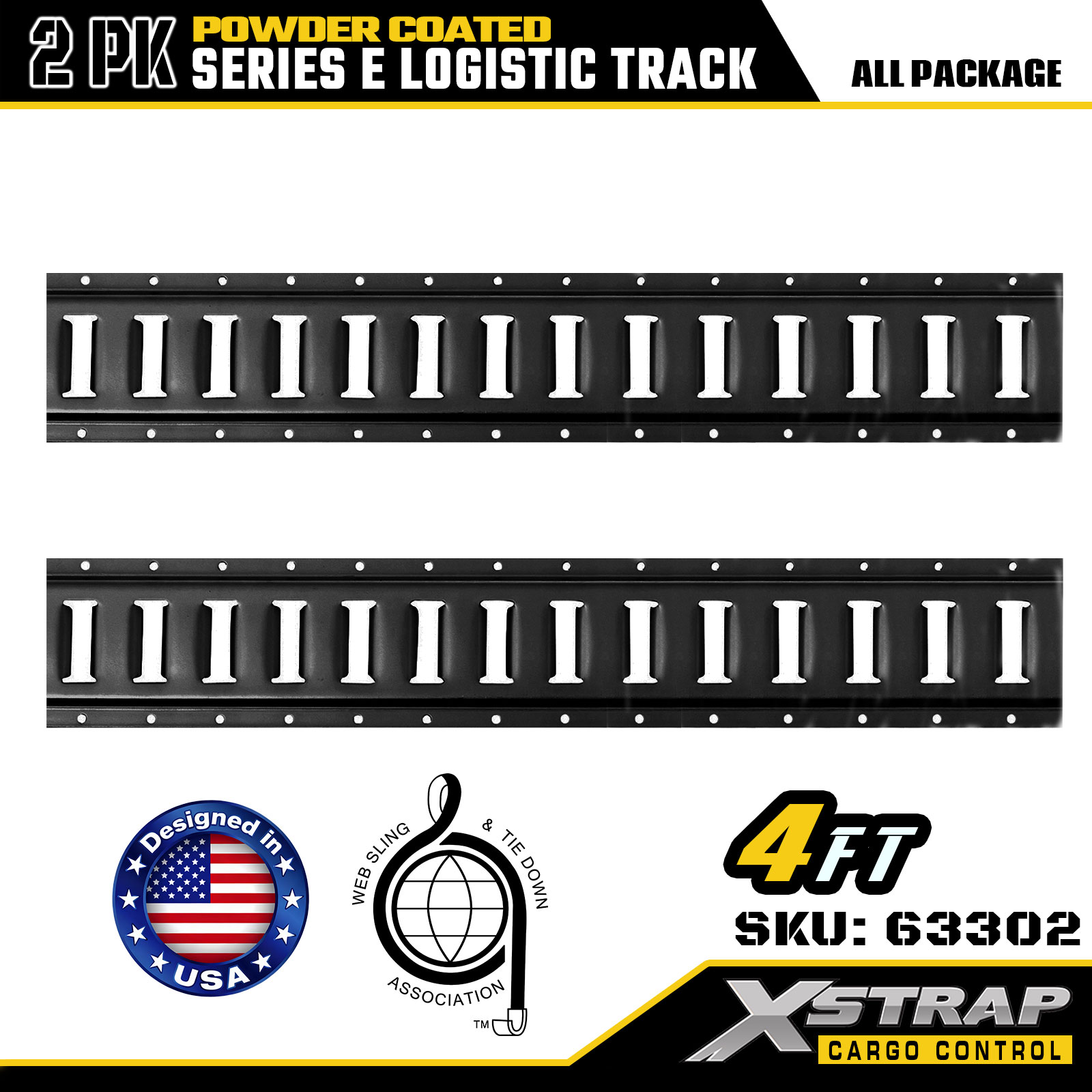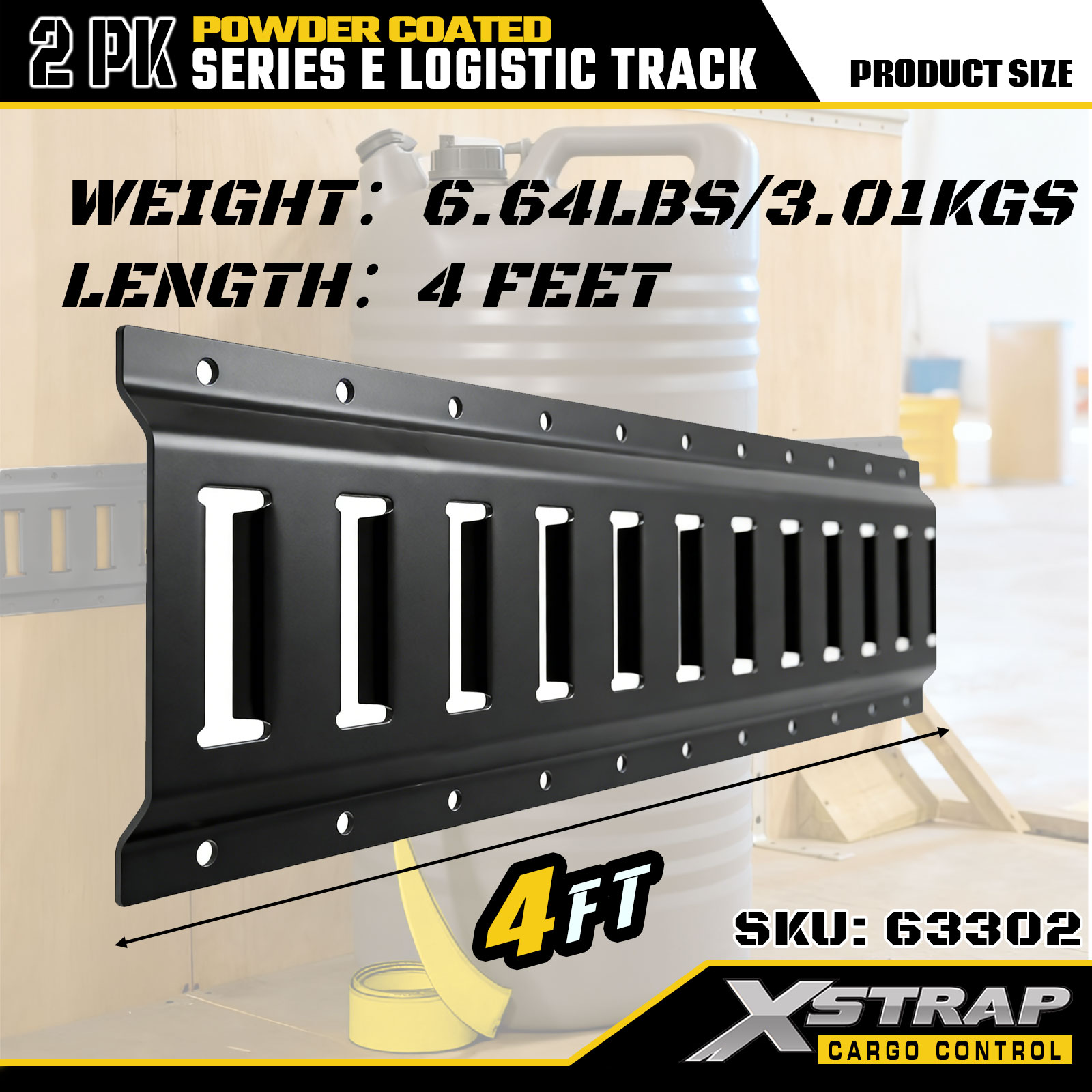Trilho logístico Xstrap 63302 cinza E de 4 pés - aço calibre 12 com revestimento em pó, capacidade de 6.000 libras, 2PK para controle de carga