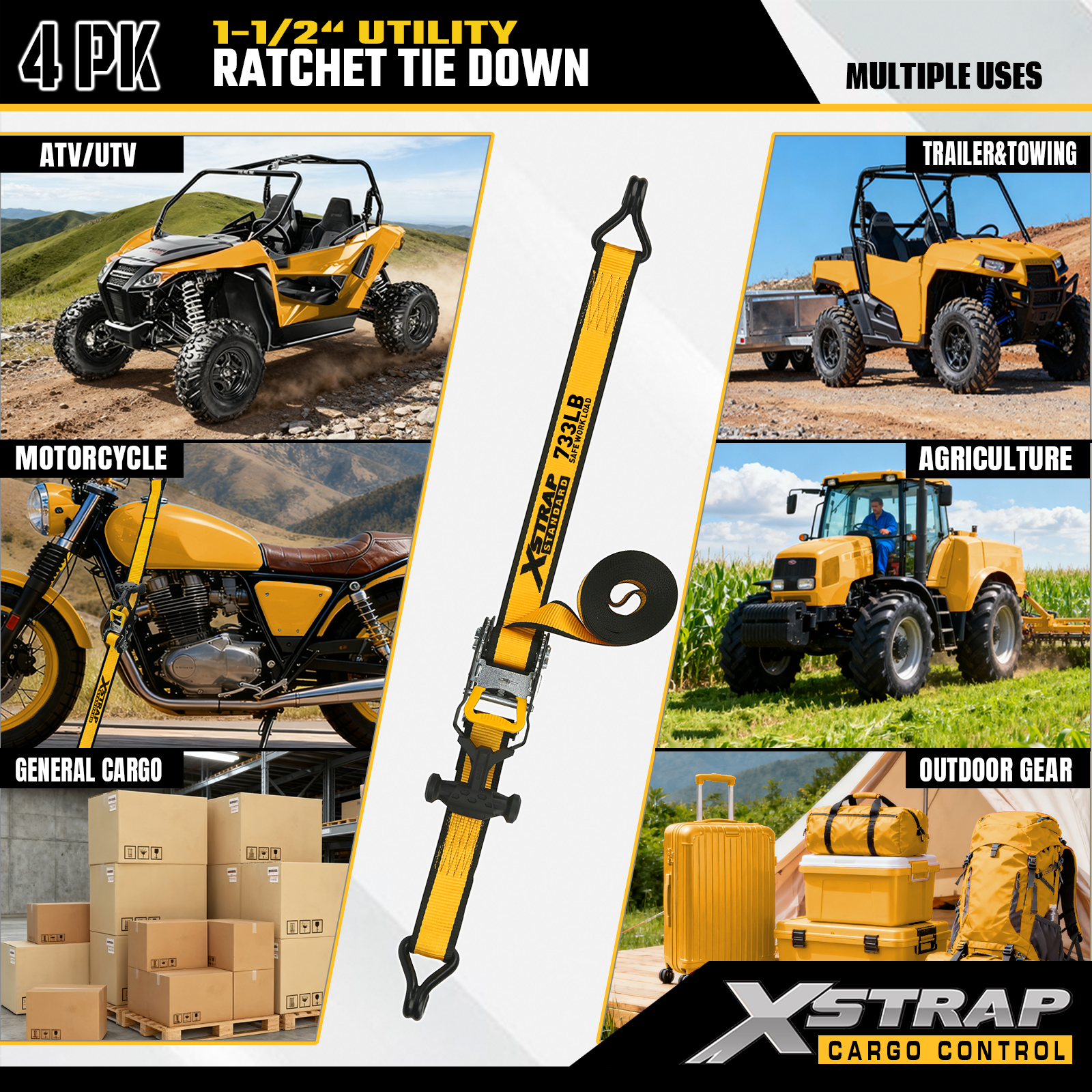 Xstrap Correias de amarração com catraca com alça em T de 1,5" x 16 pés 1.100 lb SWL