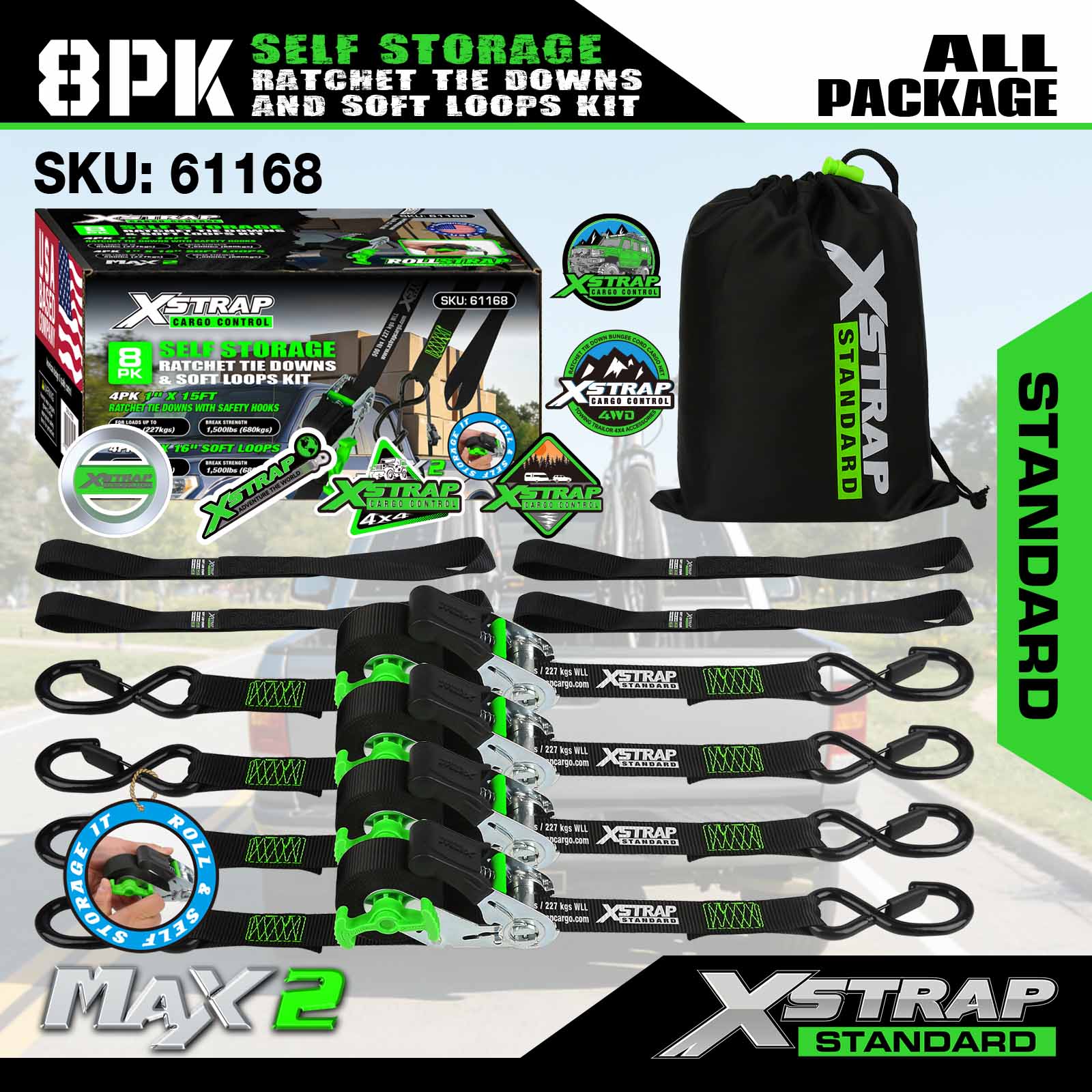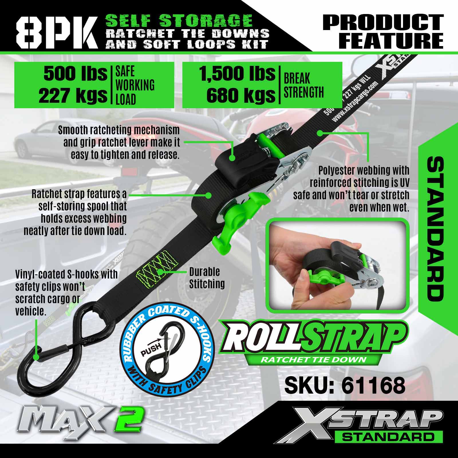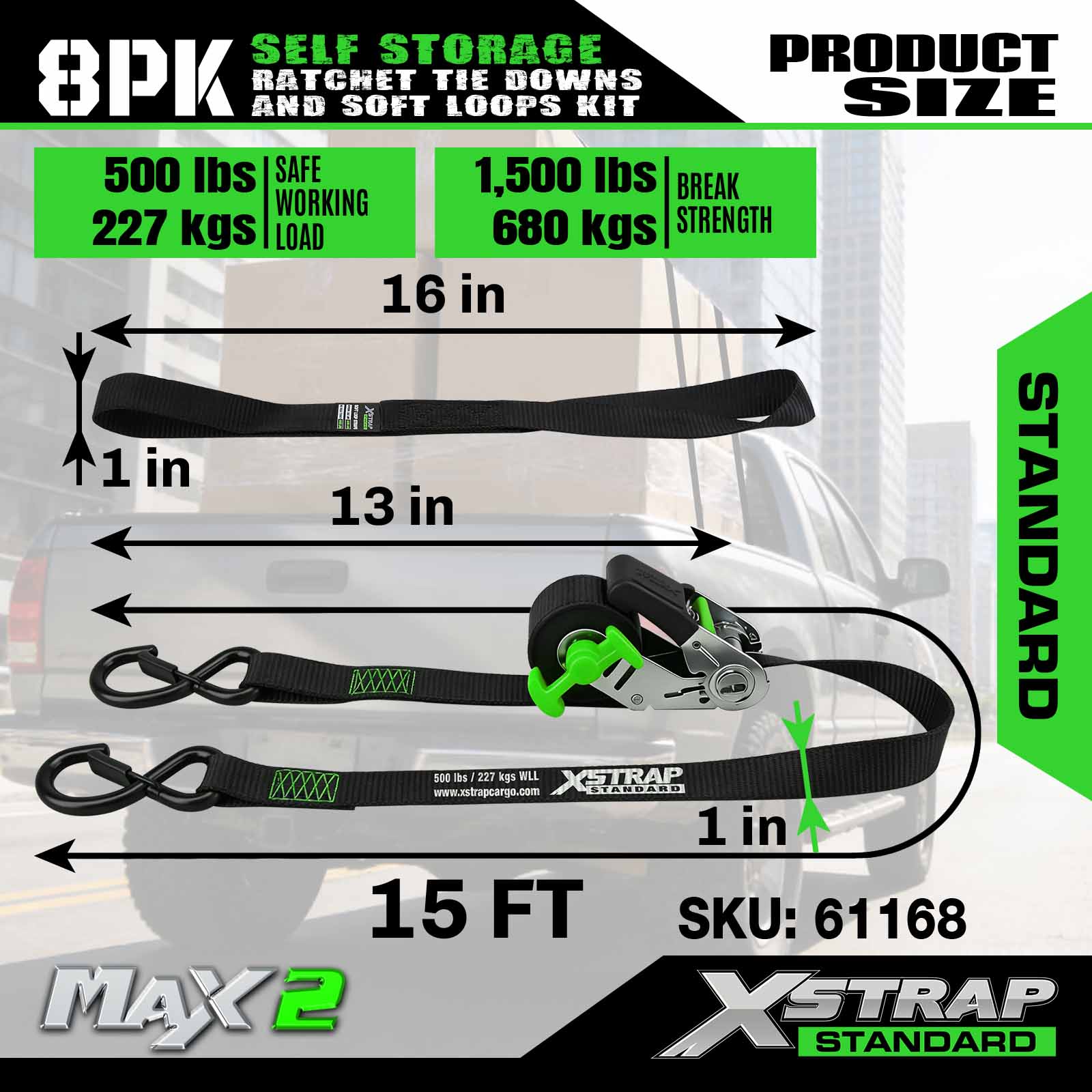 Xstrap 61168 1 polegada 15 pés de catraca de autoarmazenamento amarra 500LB SWL