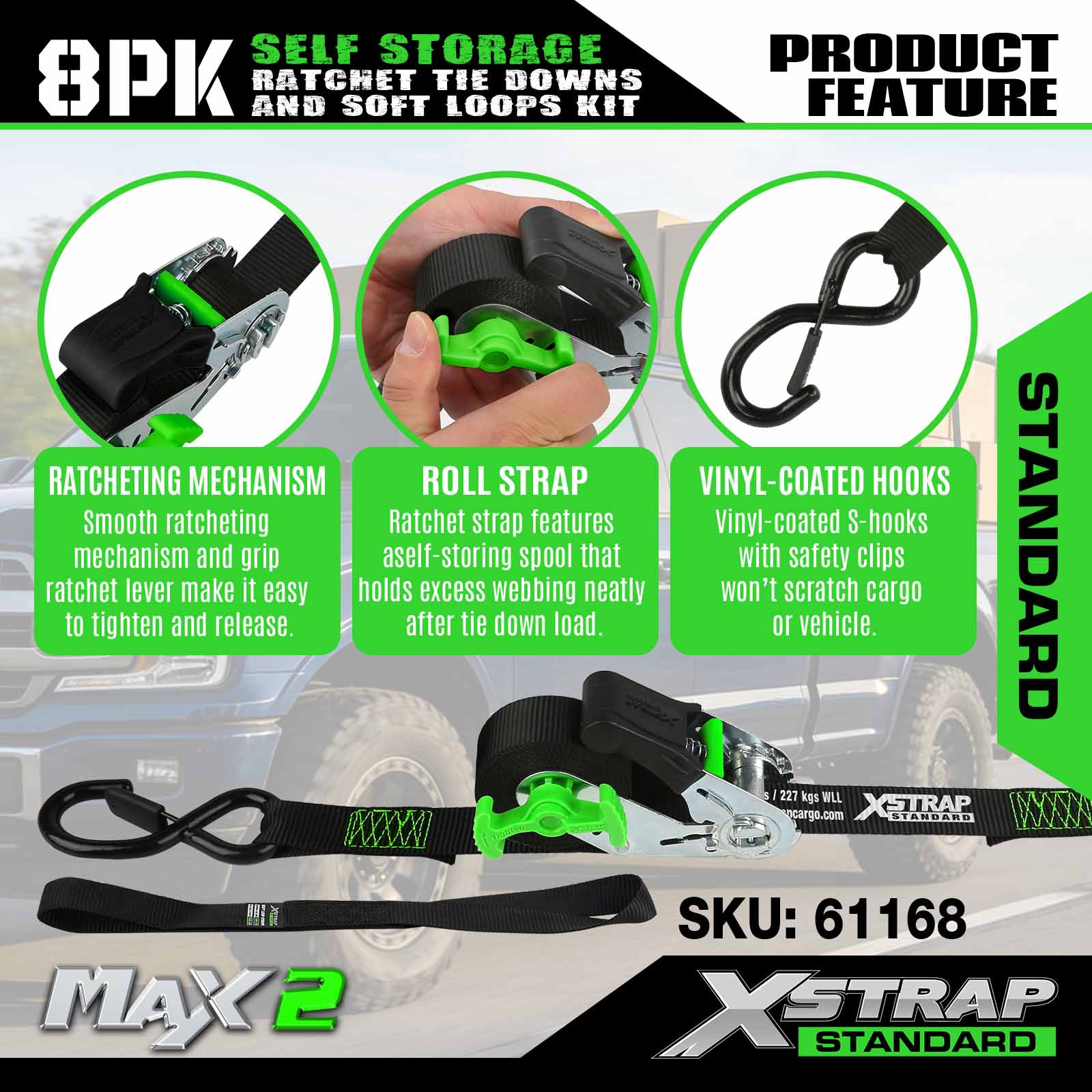 - Chega de bagunças emaranhadas - Em comparação com outras tiras de catraca comuns, as tiras de catraca de autoarmazenamento Xstrap podem ajudar a enrolar a correia no carretel e então não haverá bagunça.