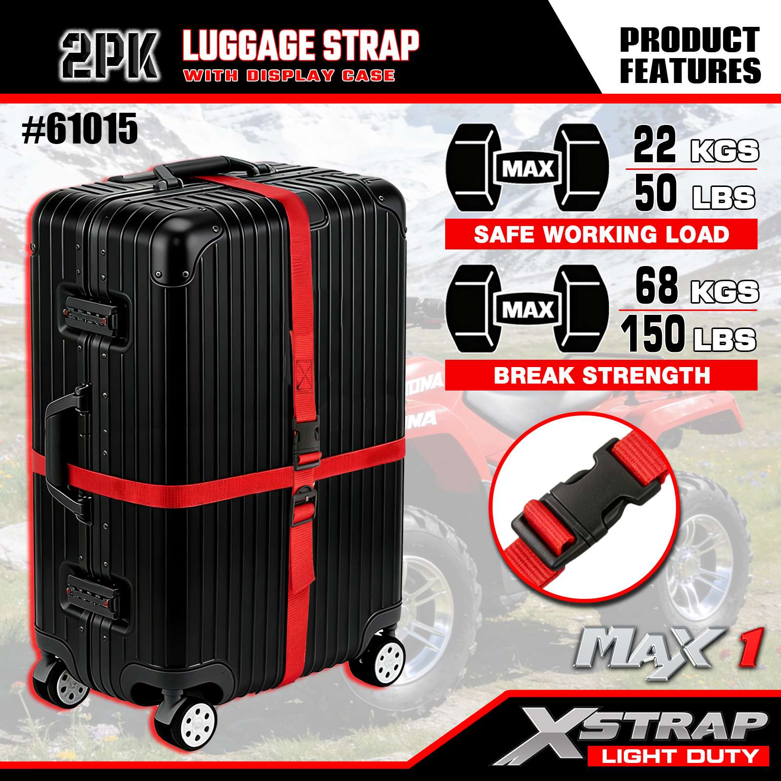 - Fivela de liberação rápida ajustável: a fivela de plástico de liberação lateral é fácil de abrir/fechar com uma mão, enquanto o design ajustável permite personalizar o comprimento da alça para caber em bagagens de diferentes tamanhos (de bolsas pequenas a malas grandes).