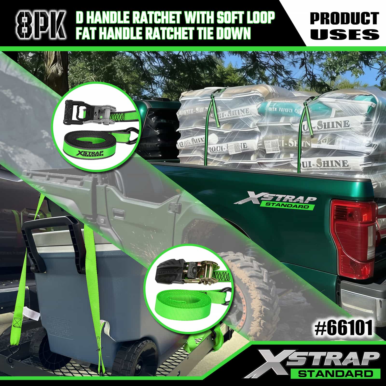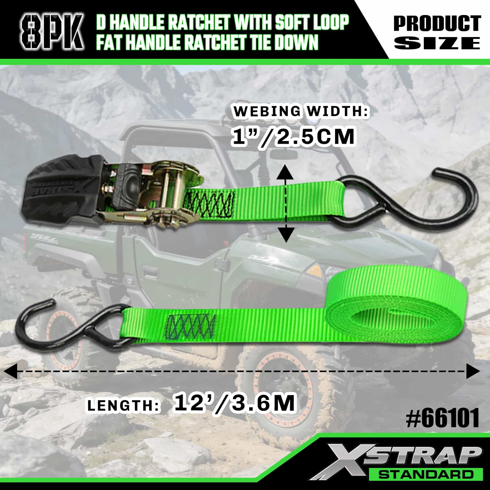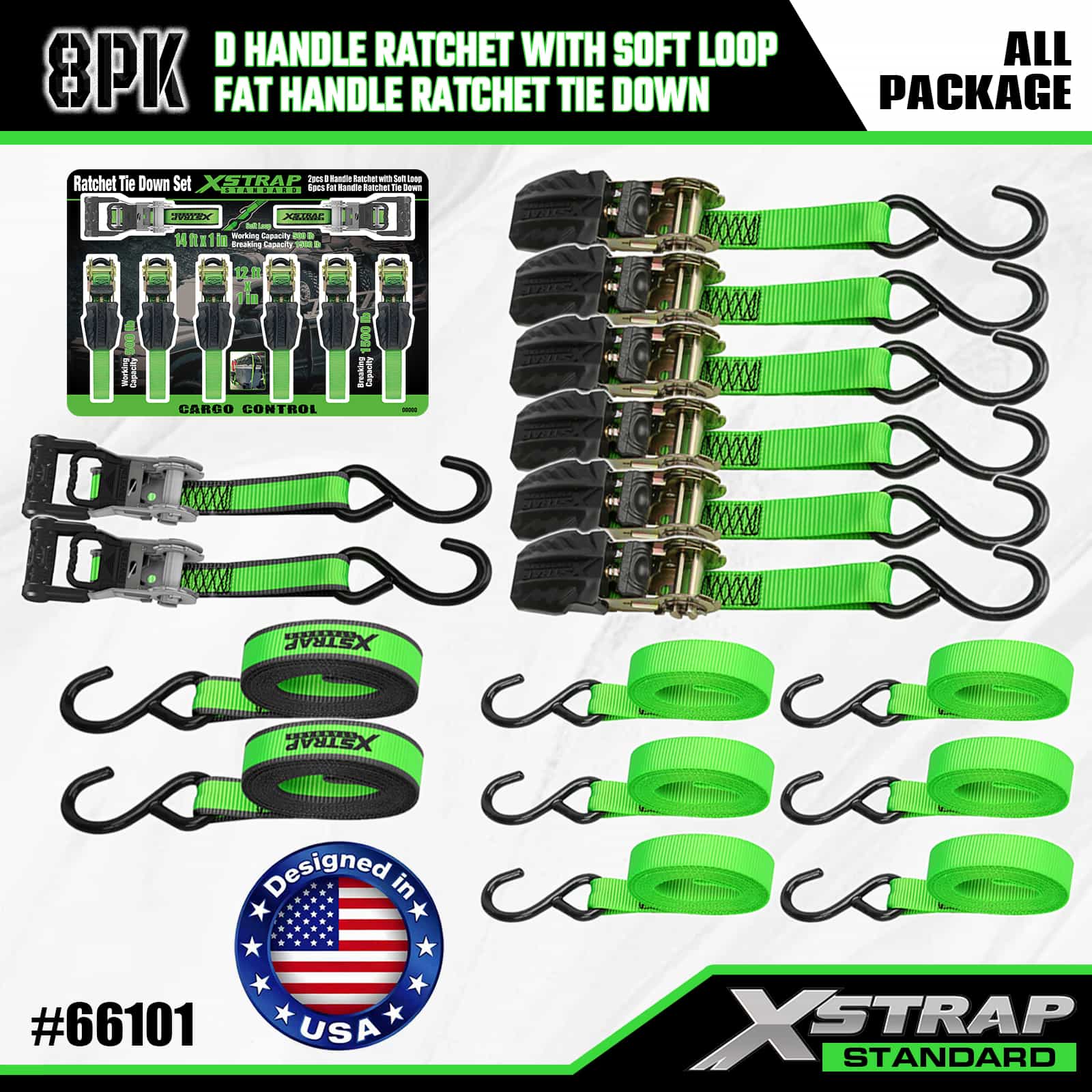 Xstrap 8 Pack Amarração de catraca de alumínio, 1" x 14' e 1" x 12' Correia de amarração de poliéster Correia de catraca de tração, tiras de fixação de amarração de carga com capacidade de 500 libras com ganchos S para caminhonete de controle de carga, SUV, racks superiores de carro para motocicleta.