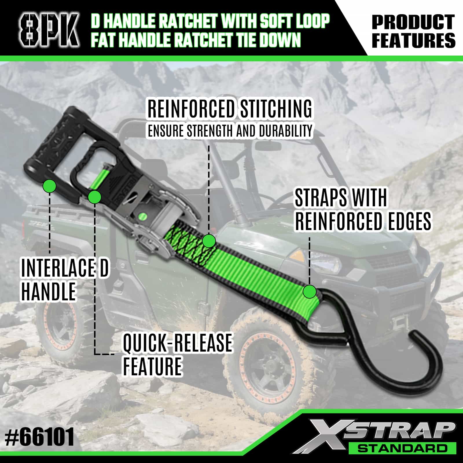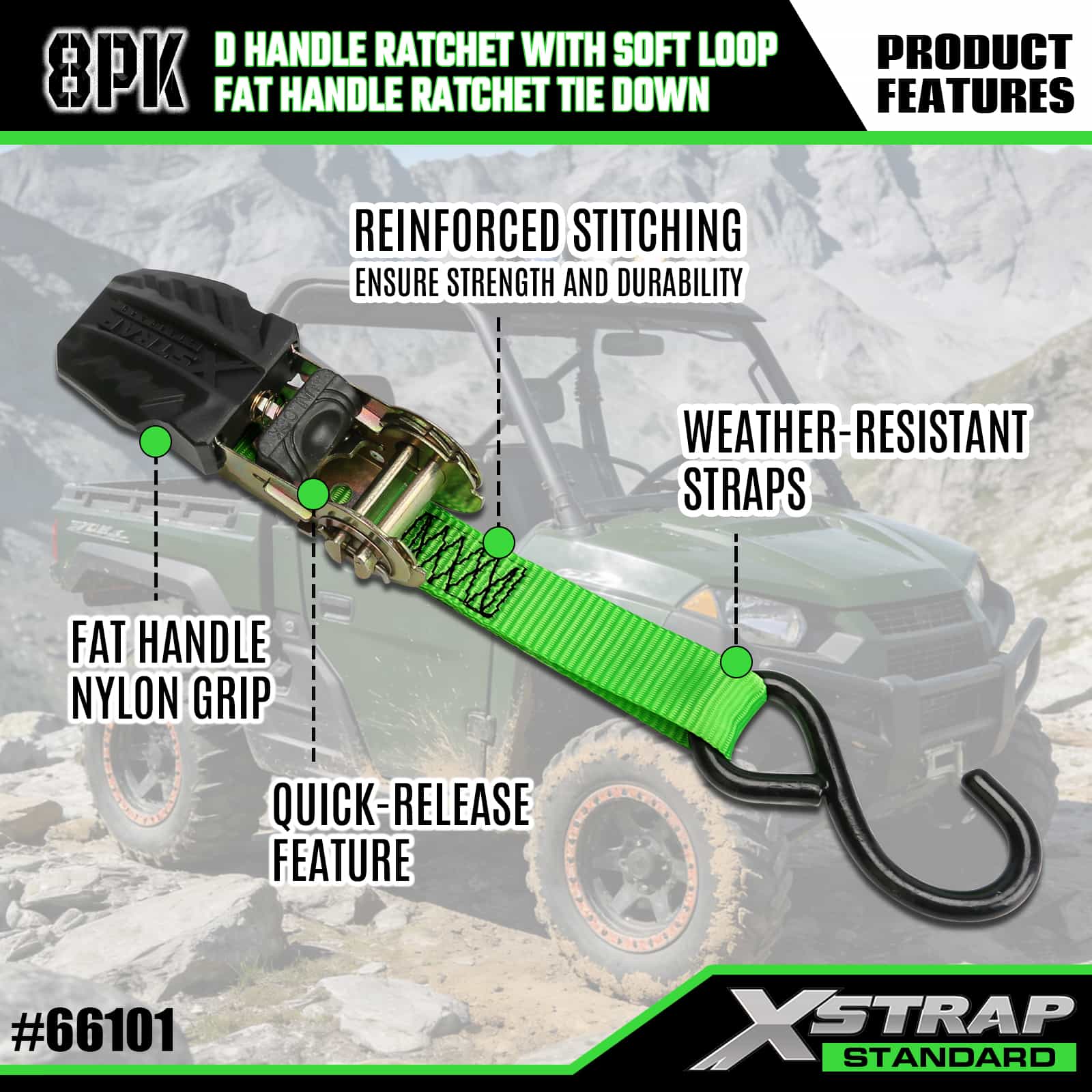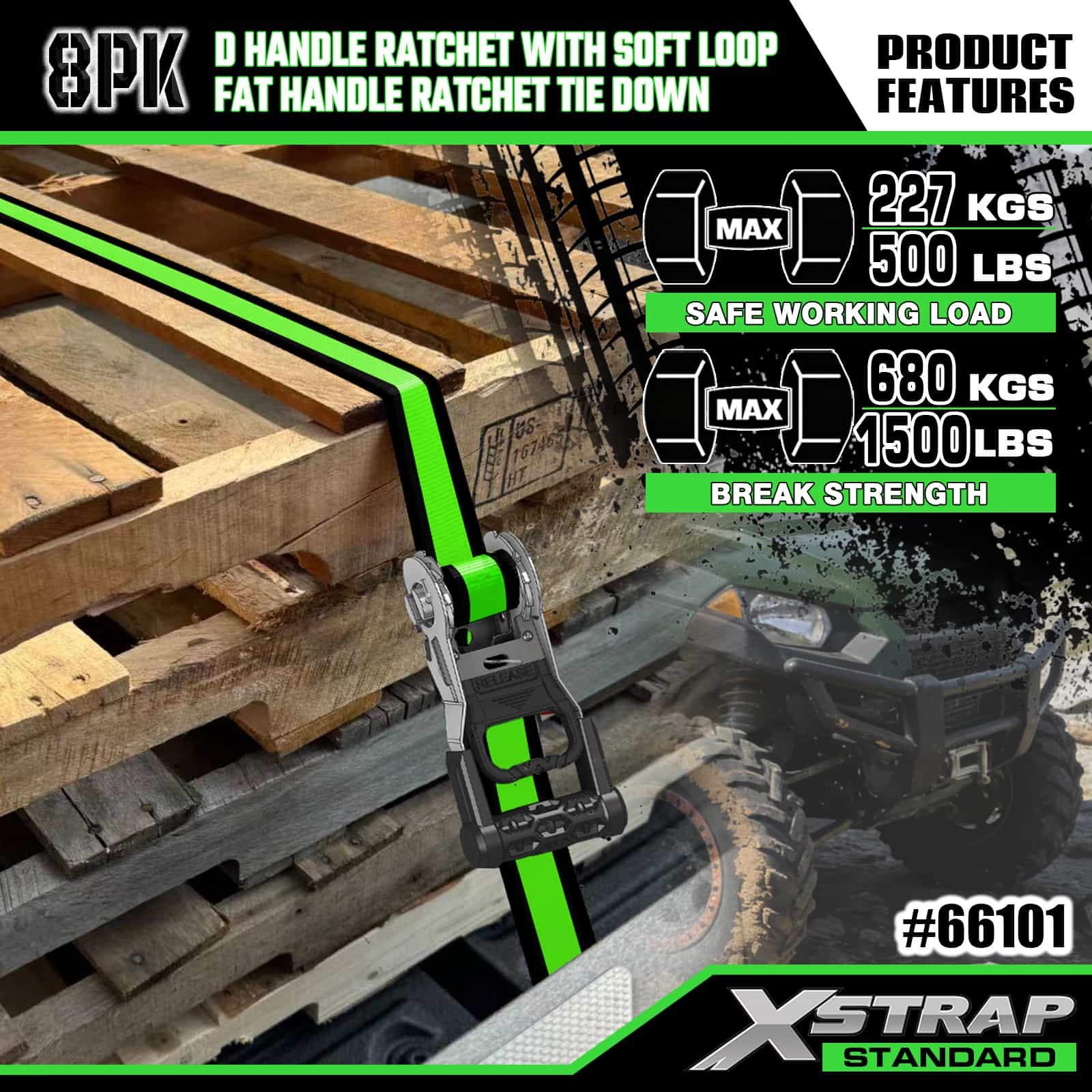 Xstrap 8 Pack Amarração de catraca de alumínio, 1" x 14' e 1" x 12' Correia de amarração de poliéster Correia de catraca de tração, tiras de fixação de amarração de carga com capacidade de 500 libras com ganchos S para caminhonete de controle de carga, SUV, racks superiores de carro para motocicleta.