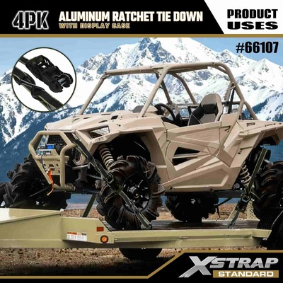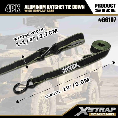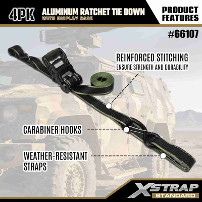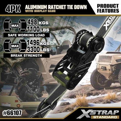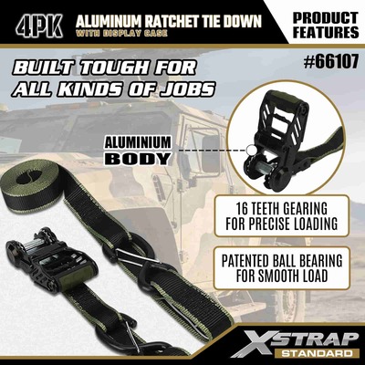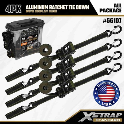 Xstrap 4 pacotes de amarração de catraca de alumínio, alça de amarração de poliéster de 1-1/4” x 14’ com alça de catraca de tração de laço macio, tiras de fixação de amarração de carga com capacidade de 1000 libras com ganchos de segurança S para caminhonete de controle de carga, SUV, racks superiores de carro para motocicleta.