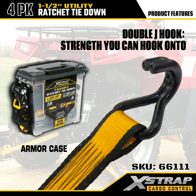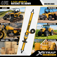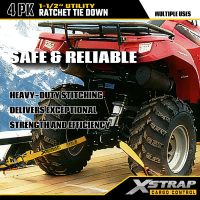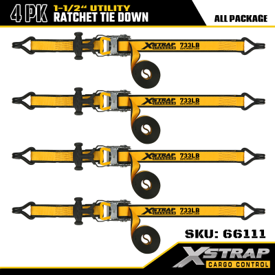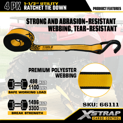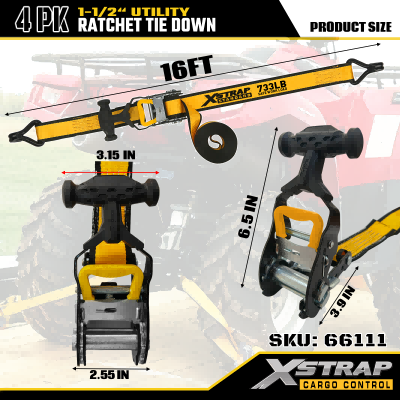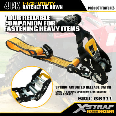 Xstrap 4 Pack T alça catraca amarração, 1-1/2" x 16' poliéster cinta de amarração puxar catraca, capacidade de 1100lbs correias de fixação de amarração de carga com ganchos J duplos para caminhonete de controle de carga, SUV, racks superiores de carro para motocicleta.