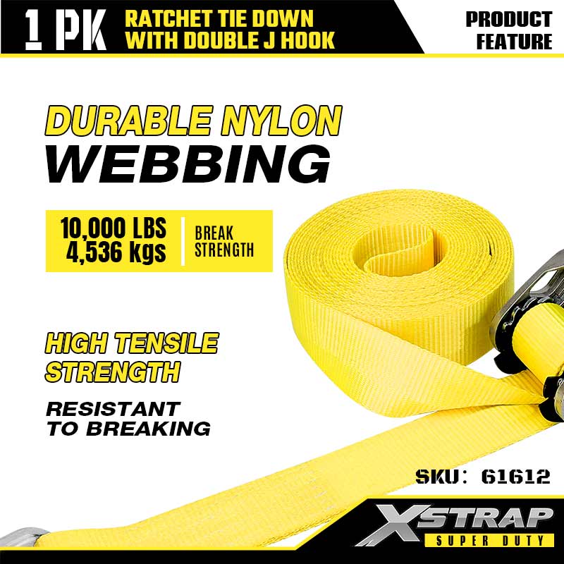 - Correia de nylon de alta resistência: A cinta de náilon de 2 polegadas de largura usa costura reforçada para resistir ao desgaste e ao estiramento. Tem uma resistência à ruptura de 10.000 LBS, por isso pode lidar com equipamentos pesados e cargas de grandes dimensões.