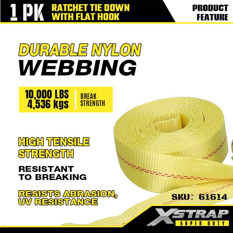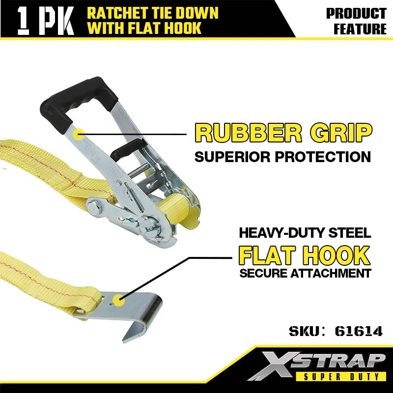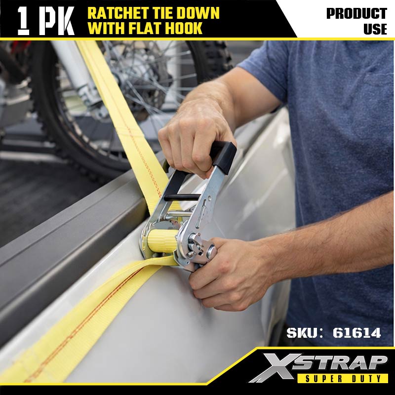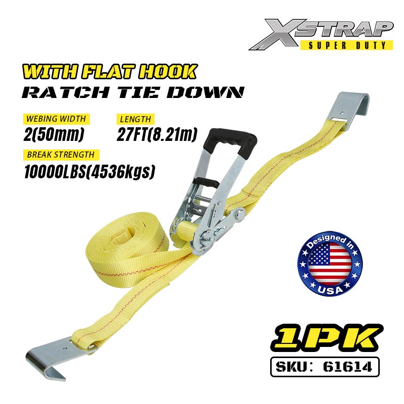 Amarração de catraca Xstrap com ganchos planos, cinta de amarração de poliéster de 2" x 27', cinta de amarração de carga com capacidade de 3.333 libras com ganchos planos para trailer de serviço pesado, barco de esqui para trailer de cama plana, carro pequeno, equipamento pesado.